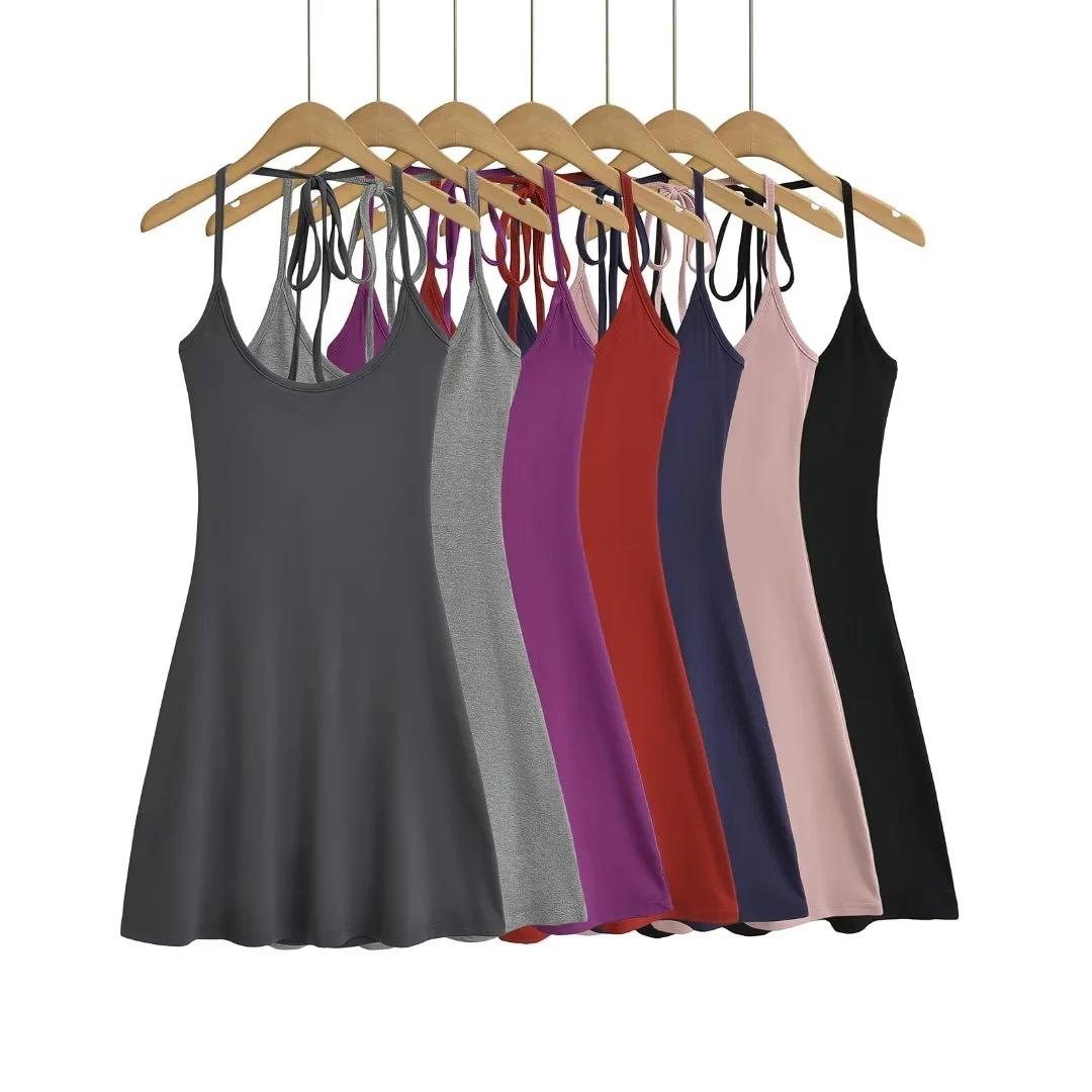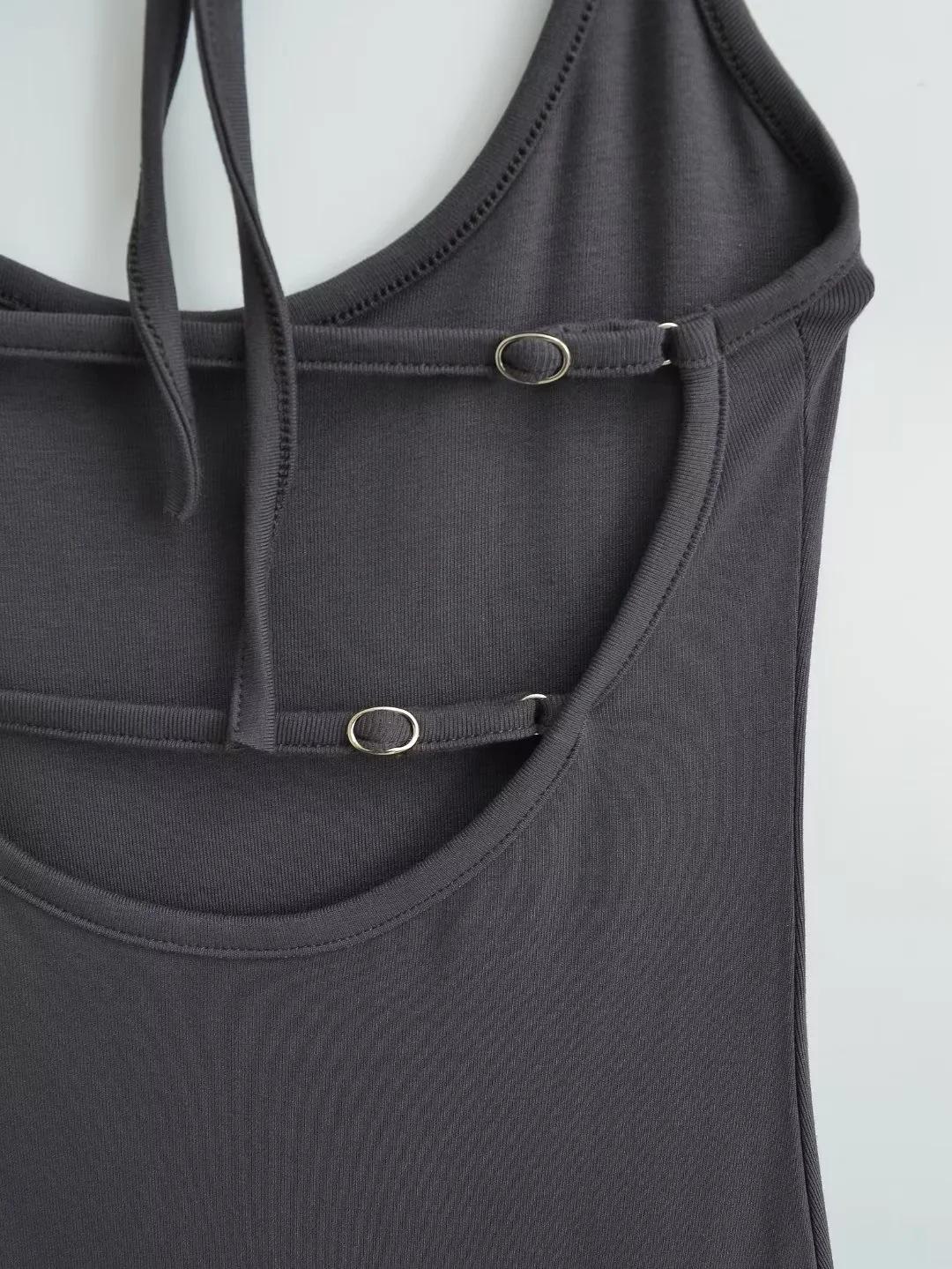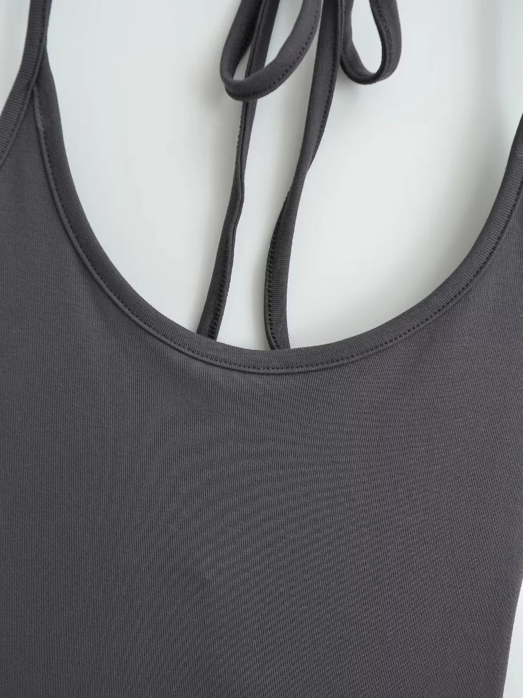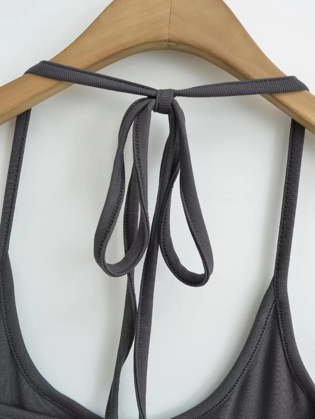 Vestido sin mangas con cuello halter, espalda descubierta y cintura marcada, ropa Gongyi
