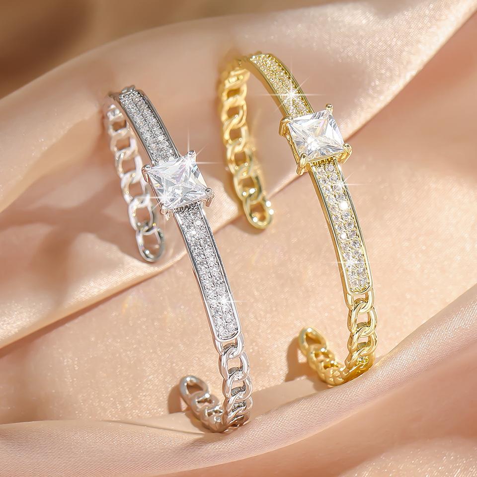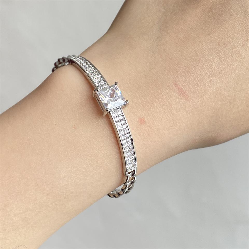 UILZ Pulsera de Moda Transfronteriza Simple Geométrica Cuadrada de Zirconia para Mujer Diseño Nicho Ins Personalizado Combinable Pulsera Trendy