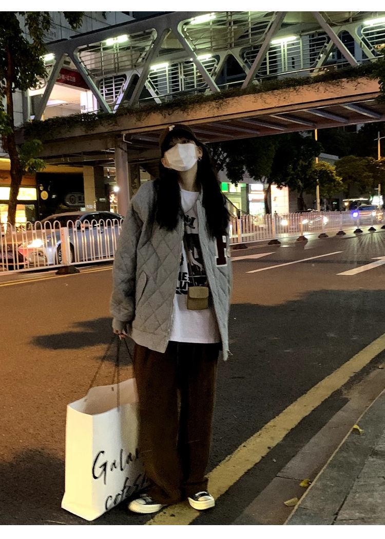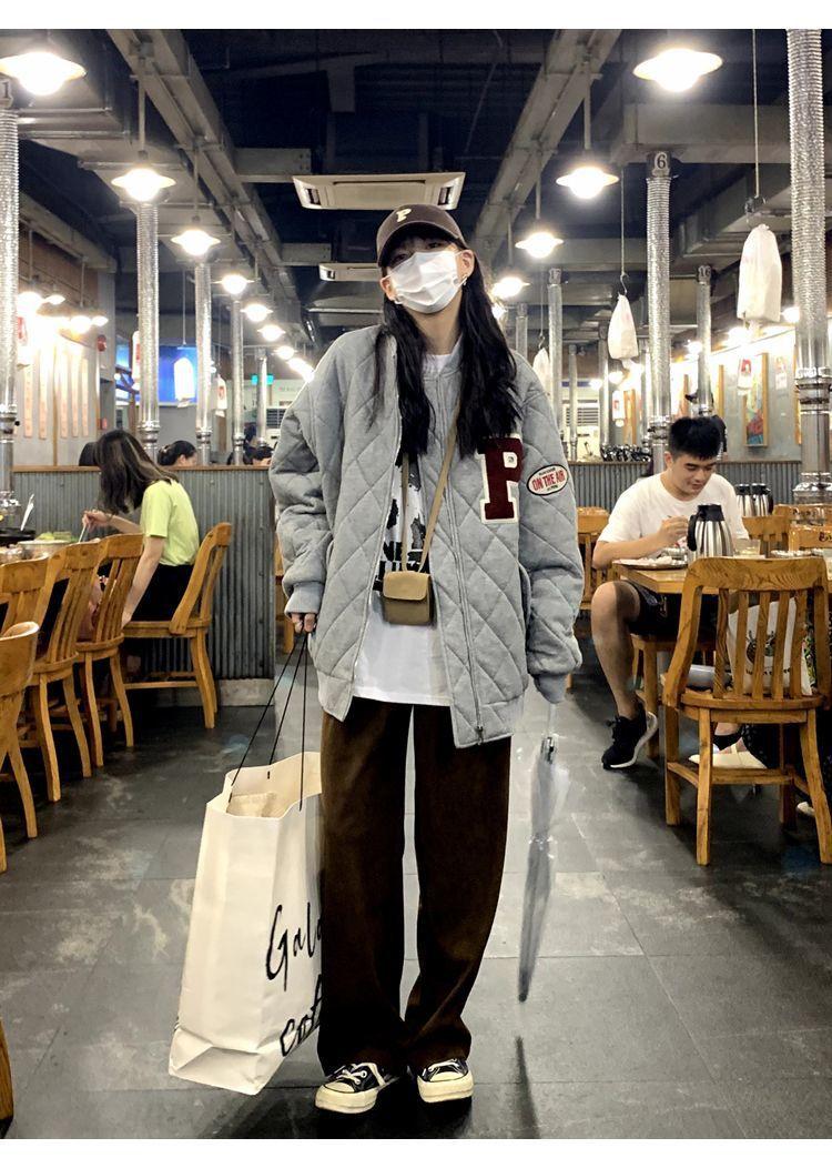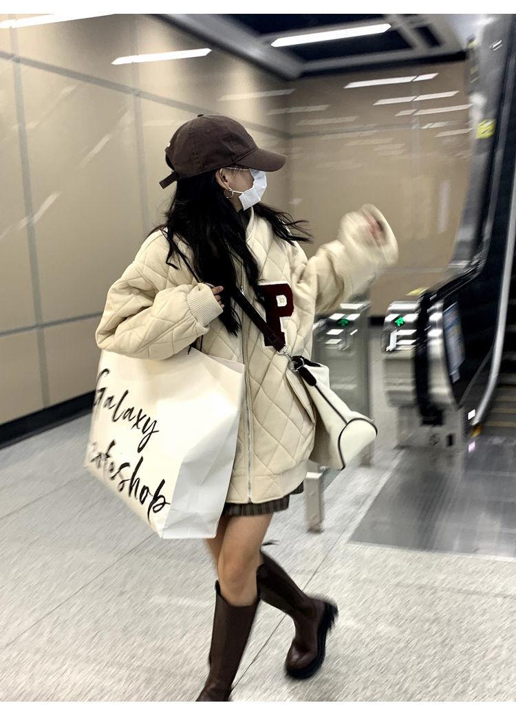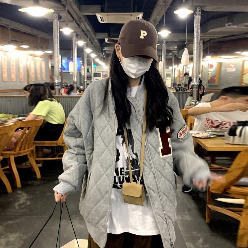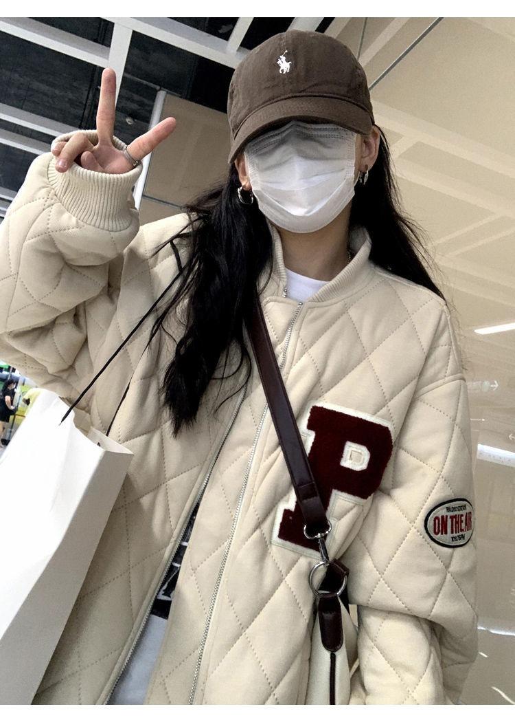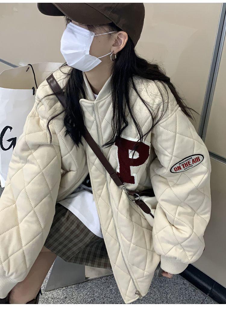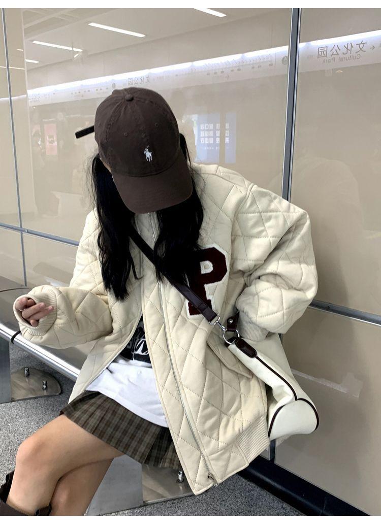 2023 otoño e invierno nueva chaqueta acolchada de algodón chaqueta de béisbol diseño nicho sentido rombo suelta chaqueta acolchada