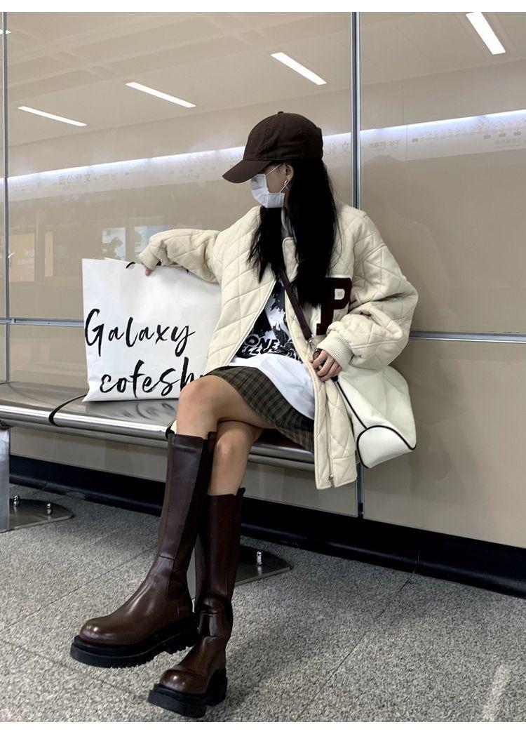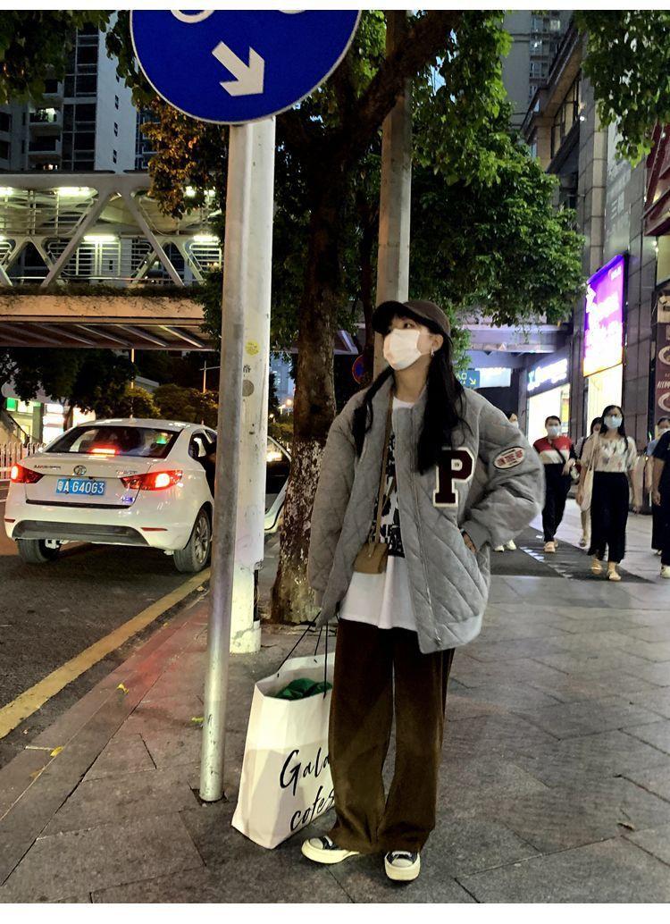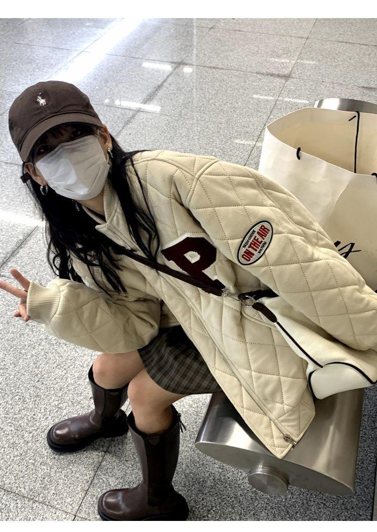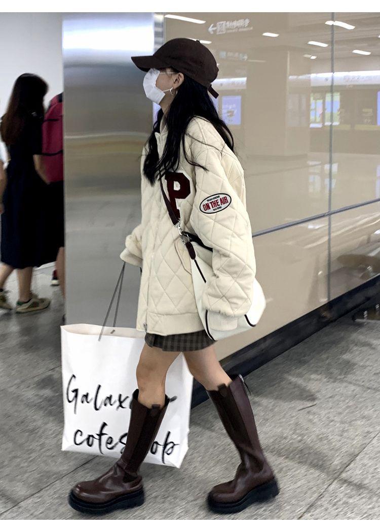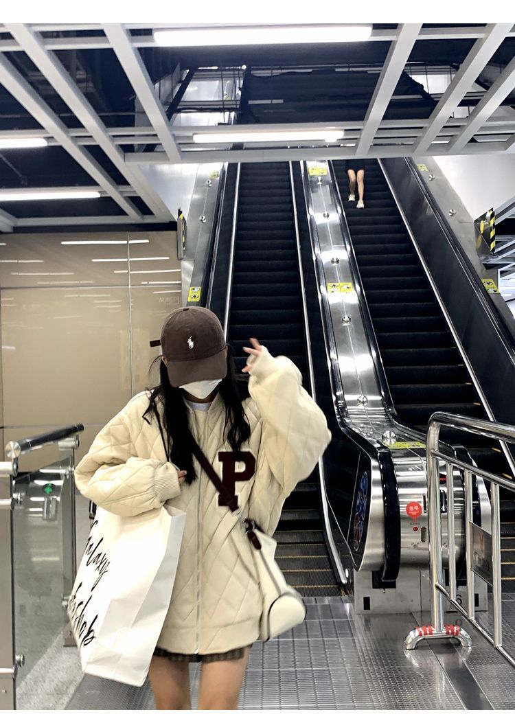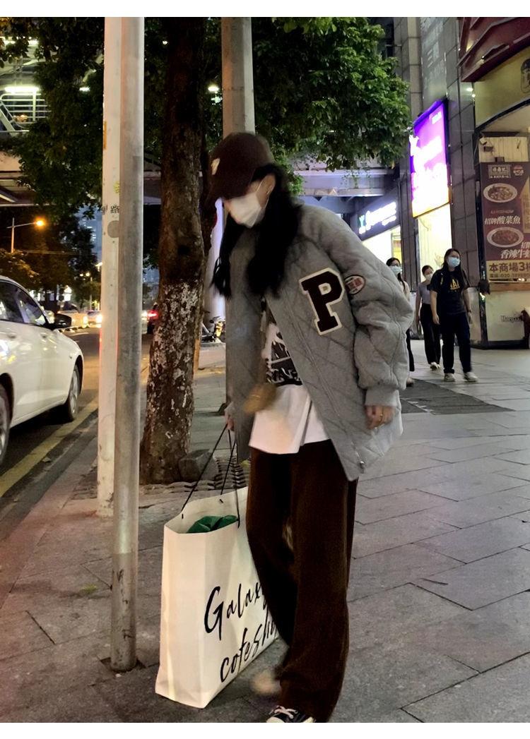 2023 otoño e invierno nueva chaqueta acolchada de algodón chaqueta de béisbol diseño nicho sentido rombo suelta chaqueta acolchada