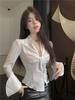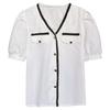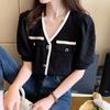 Blusa de Gasa Francesa de Verano 2025 Moda Versátil para Mujer Top de Manga Corta Cuello en V Top de Manga Abullonada Mujeres a la Moda