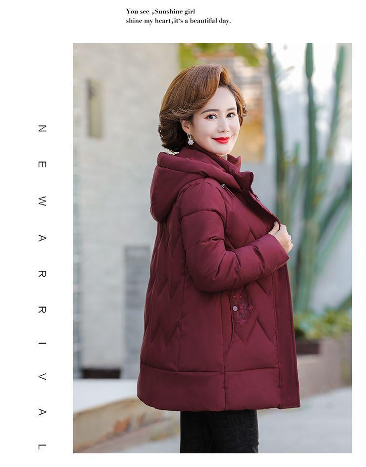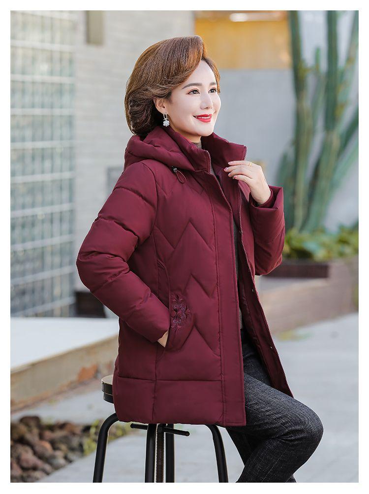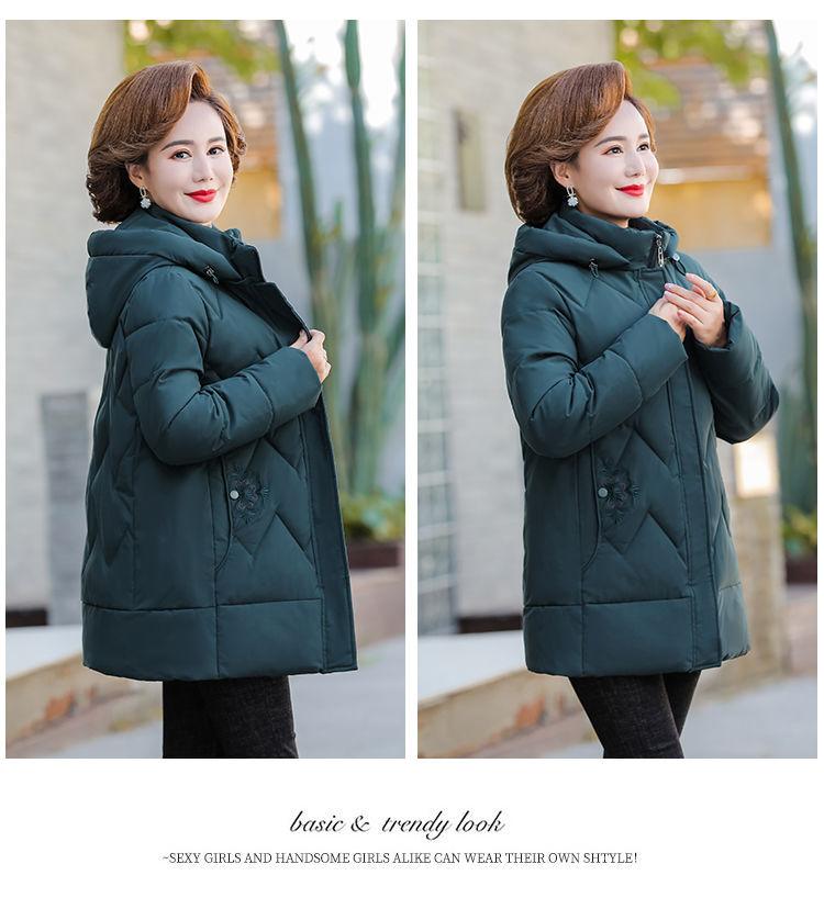 Abrigo acolchado de algodón de otoño e invierno para mamá, abrigo acolchado de algodón de longitud media para mujeres de mediana edad y mayores, chaqueta acolchada de algodón de estilo occidental de mediana edad de 40 y 50 años