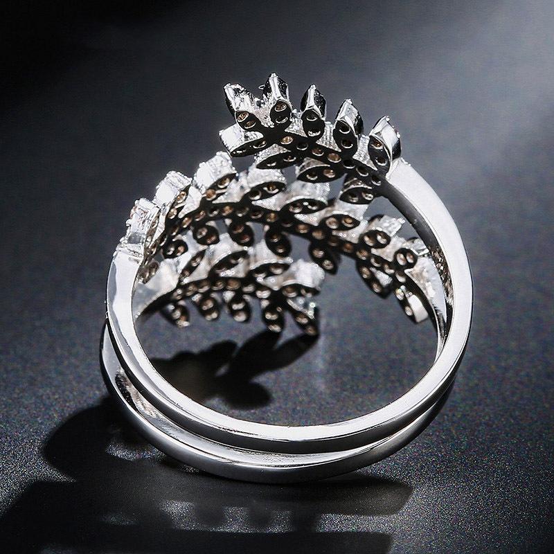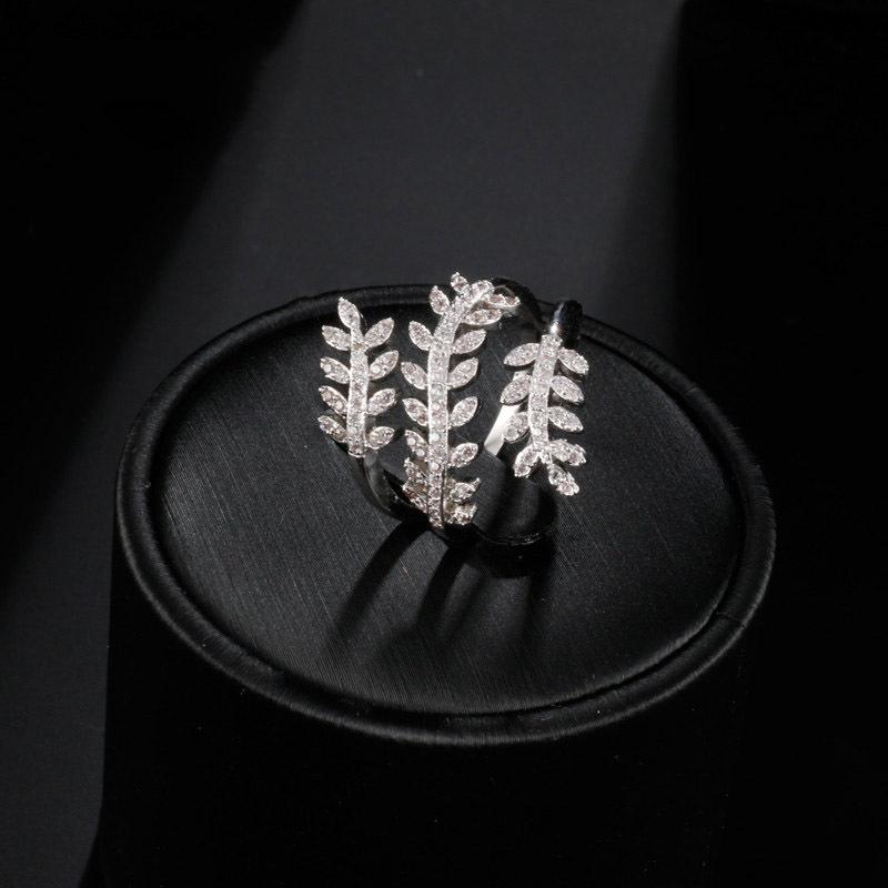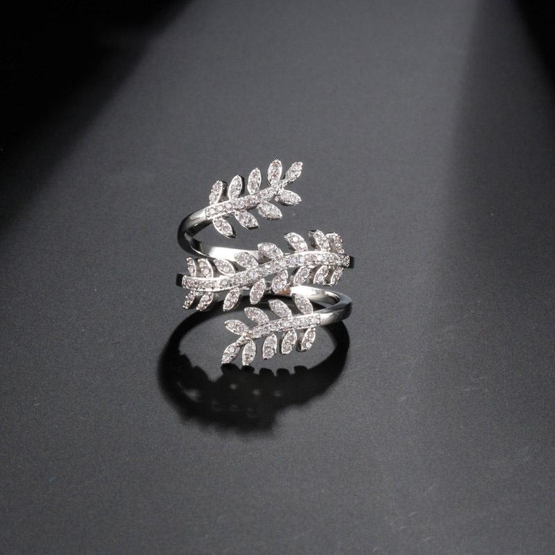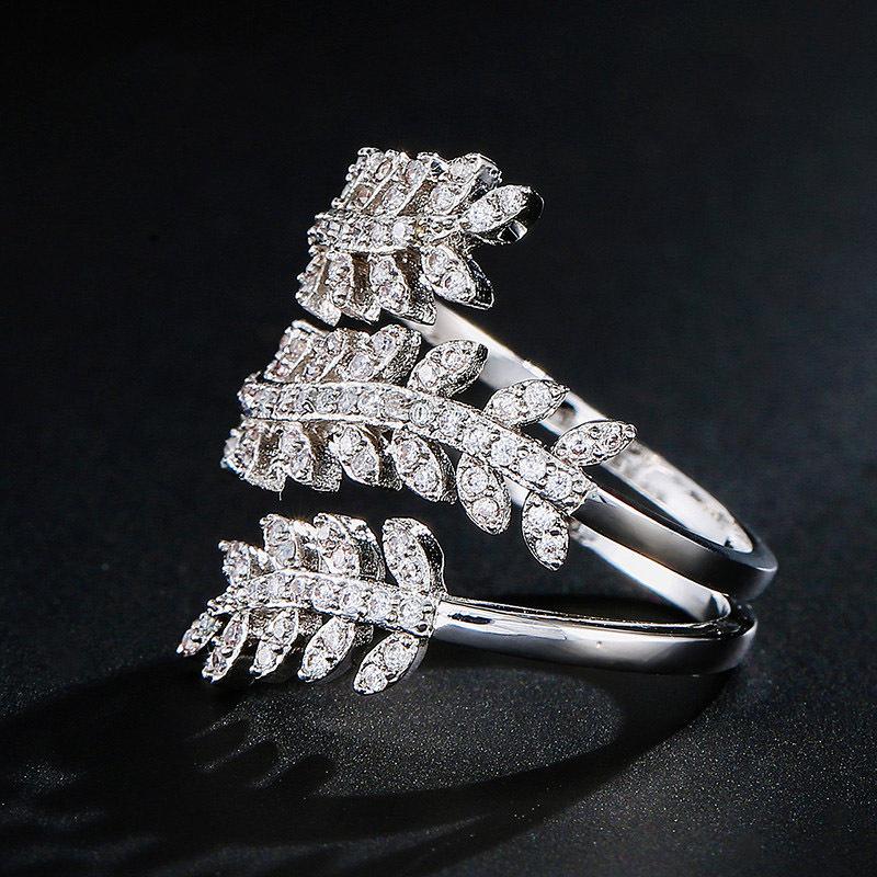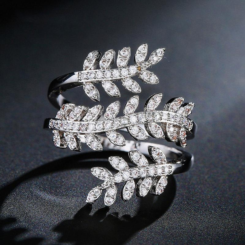 Nuevo anillo abierto creativo de hojas de venta caliente transfronterizo para damas, viento frío exquisito anillo de dedo de circón, temperamento de nicho