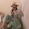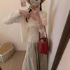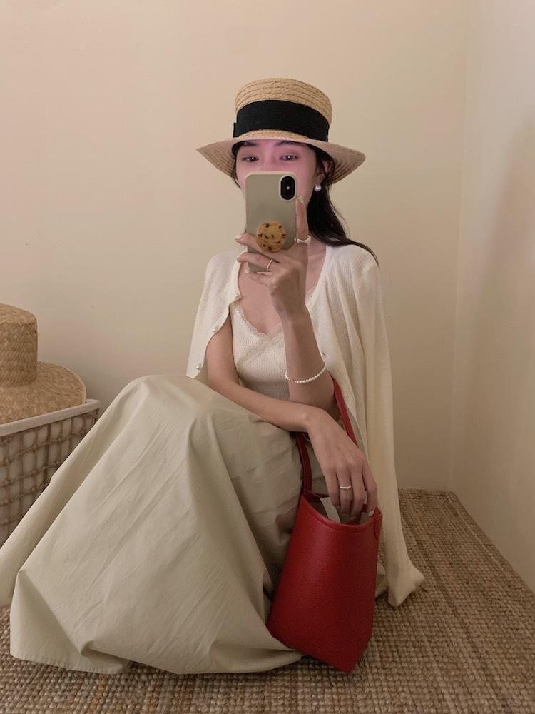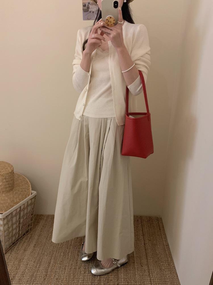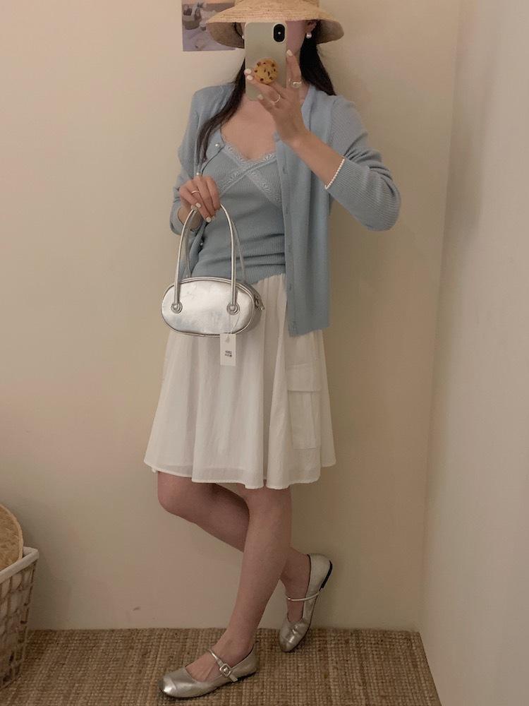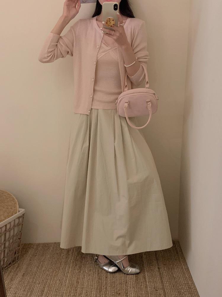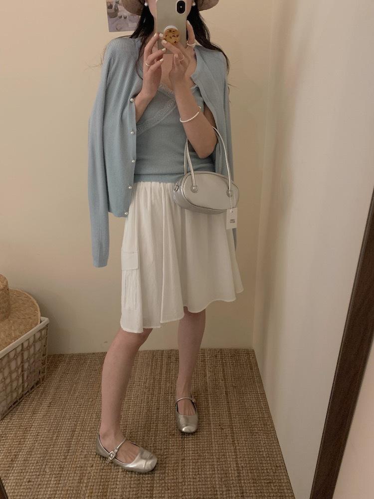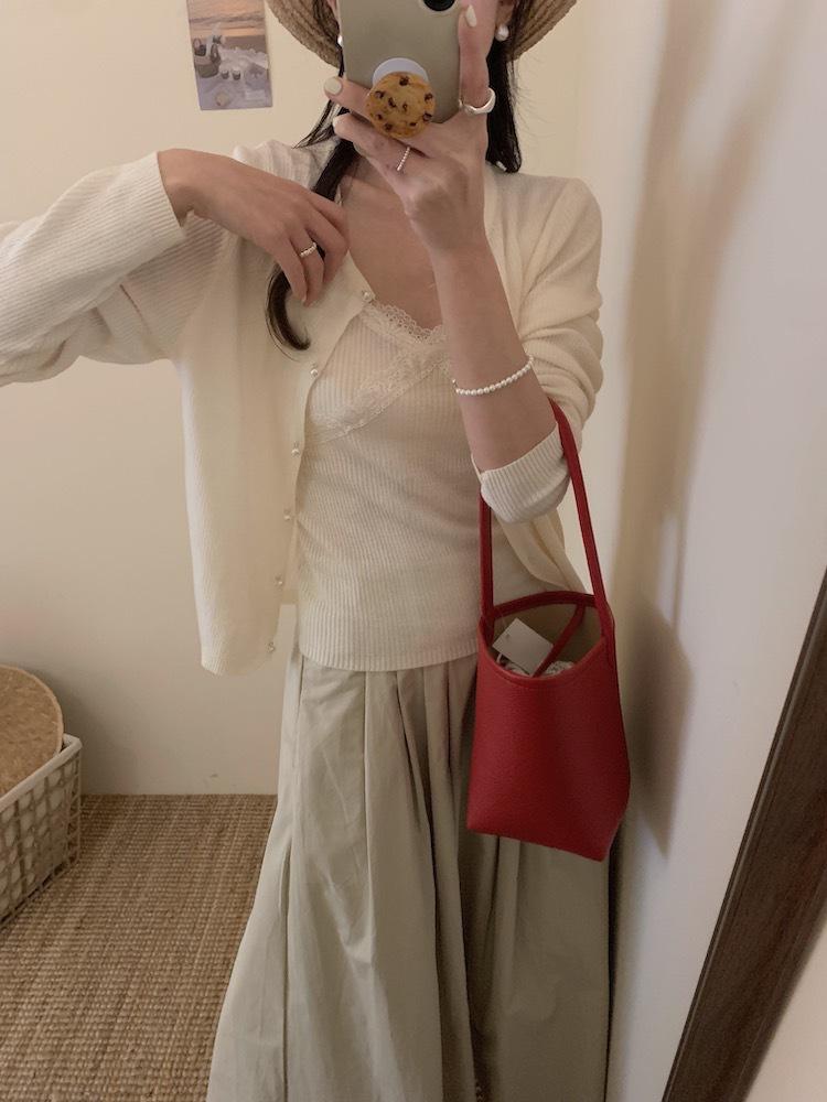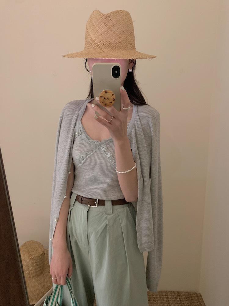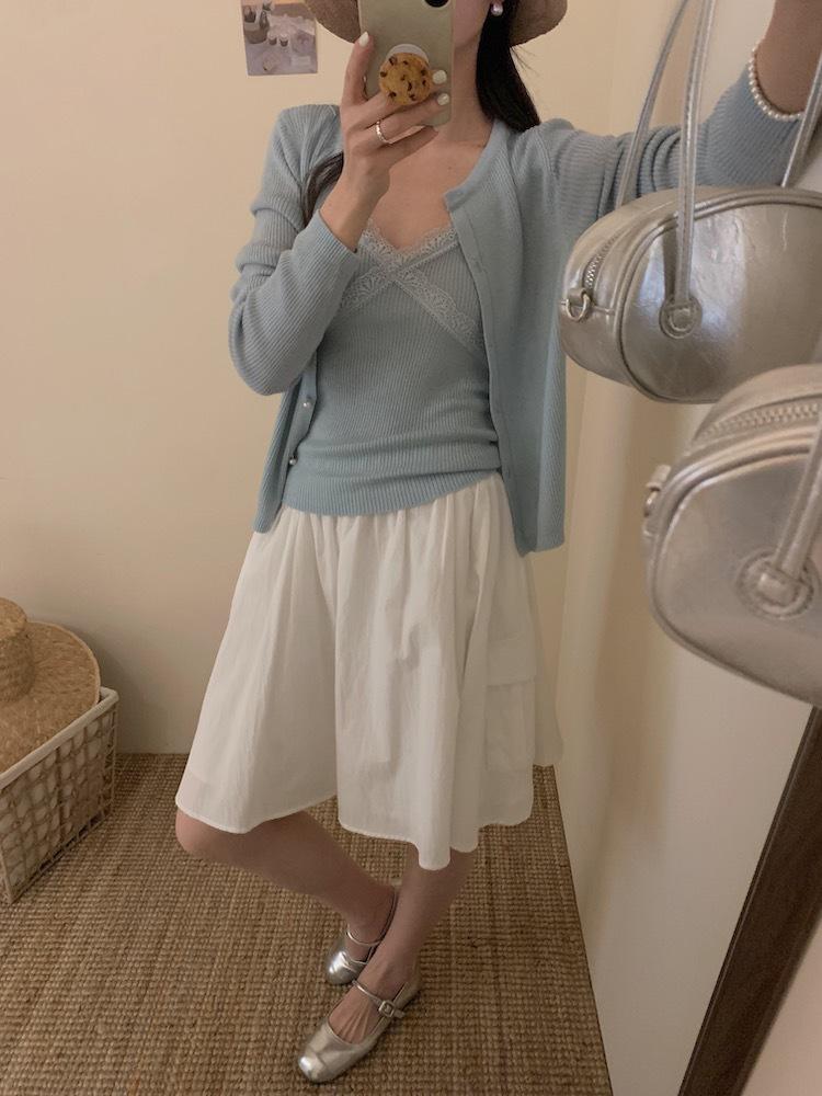 6003 # Traje Dulce y Picante Chaleco de Encaje con Tirantes para Mujer Cárdigan de Punto con Botones de Perla Chaqueta Corta Conjunto de Dos Piezas