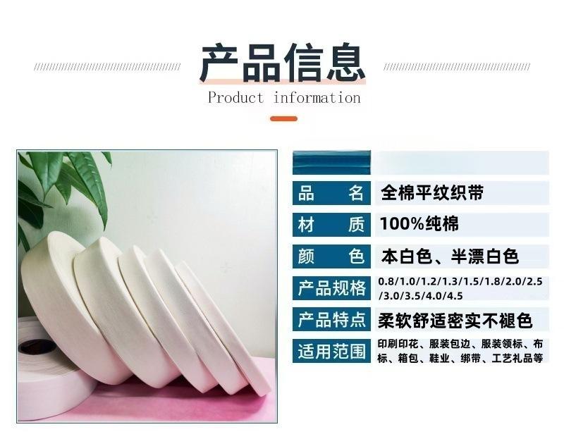 Cinta lisa de algodón puro de 10 m, cinturón de tela de algodón, tira de tela, cinturón de envoltura, cinturón de impresión, etiqueta de cuello, cinturón de marca registrada, cinturón, cinturón con borde enrollable
