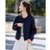 Chaqueta tipo blazer de alta gama con botones metálicos y letras a rayas retro redondas, botón decorativo, suéter tipo cárdigan.