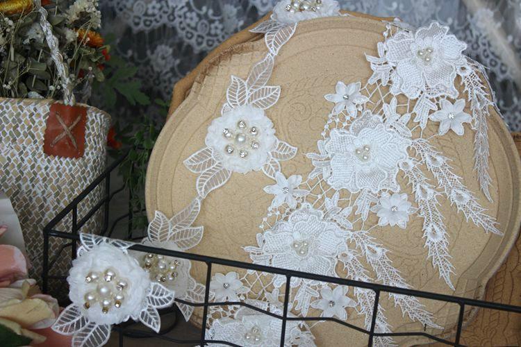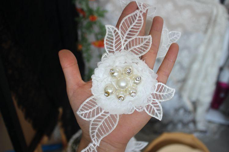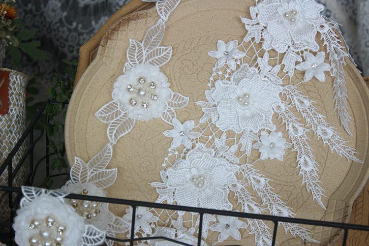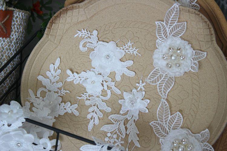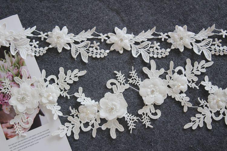 Encaje de ropa de flores de cuentas tridimensionales solubles en agua de poliéster grueso de alta calidad DIY vestido de novia accesorios de ropa para el hogar