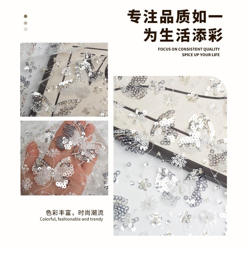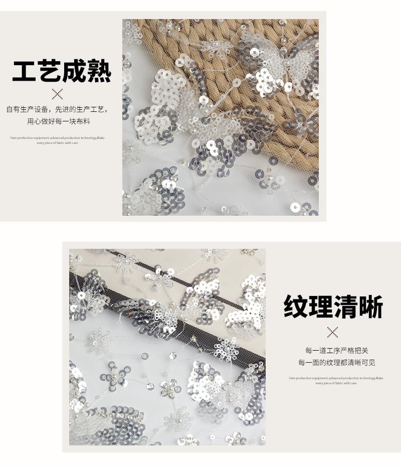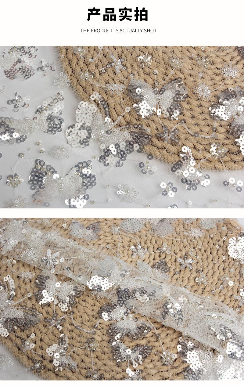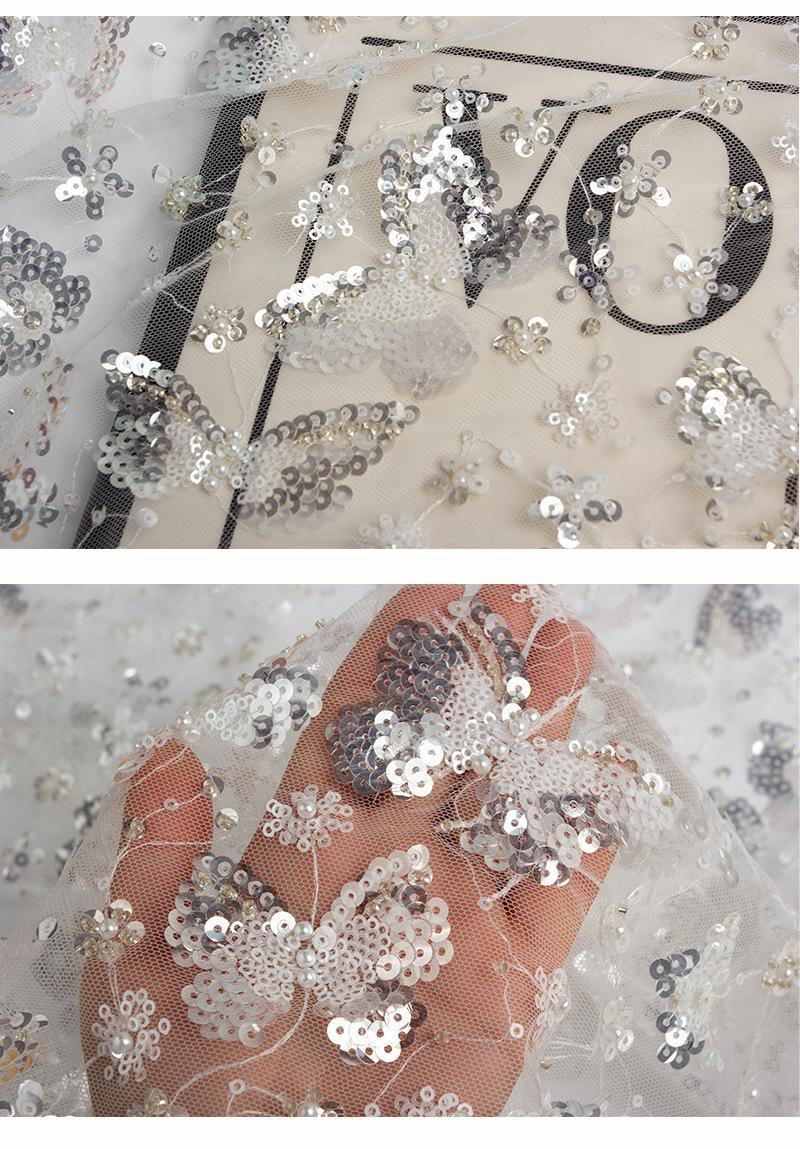 Malla Cuentas Tubo Bordado Lentejuela Encaje Ancho Completo Vestido de Novia Material Fabricante en Stock