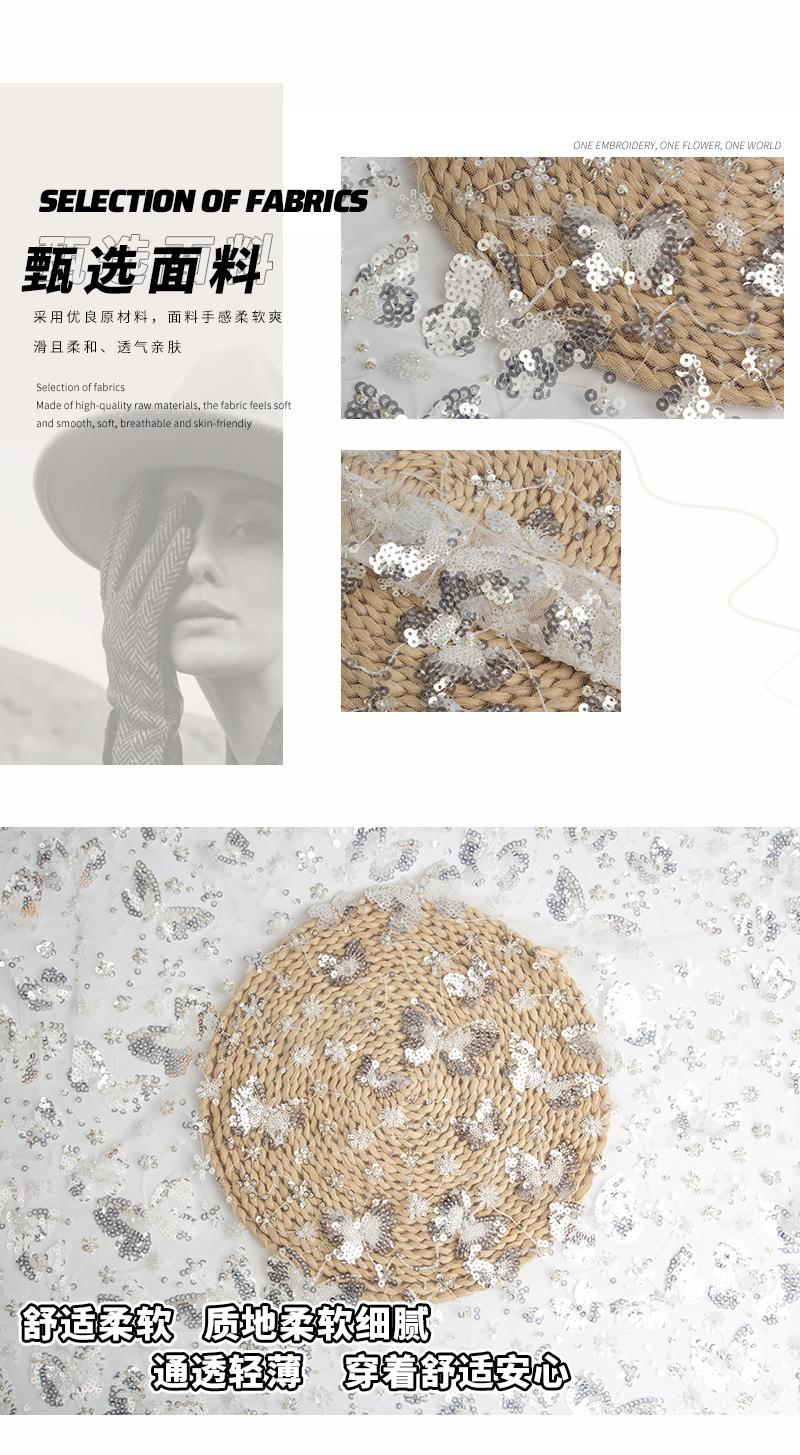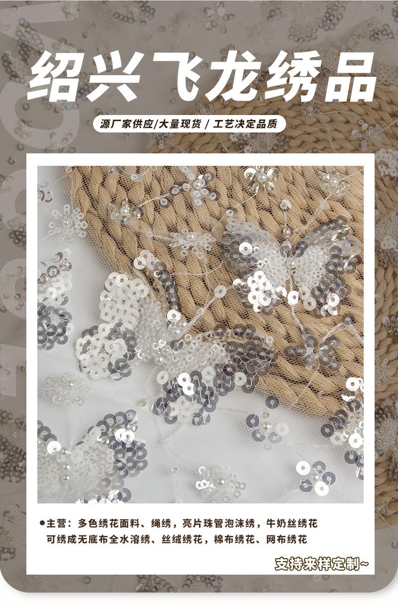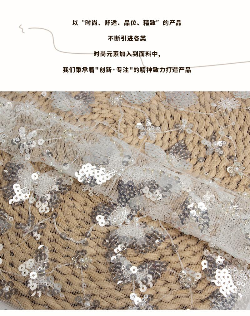 Malla Cuentas Tubo Bordado Lentejuela Encaje Ancho Completo Vestido de Novia Material Fabricante en Stock