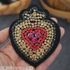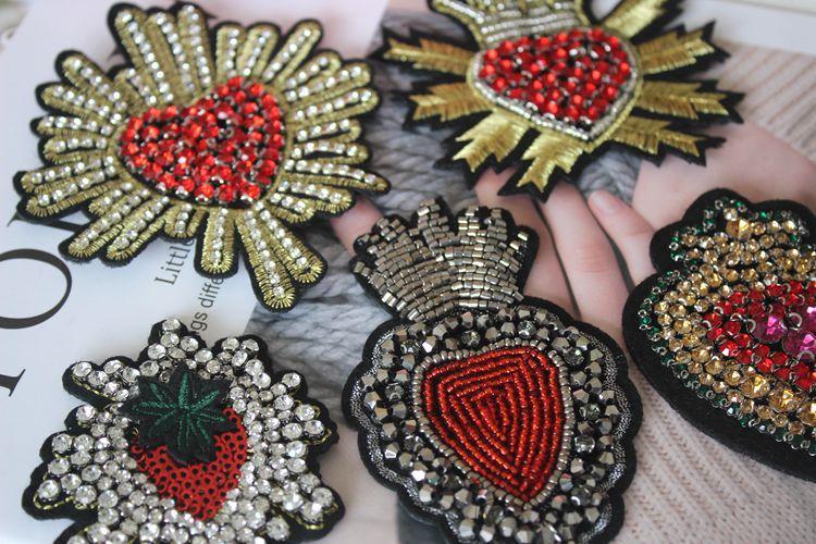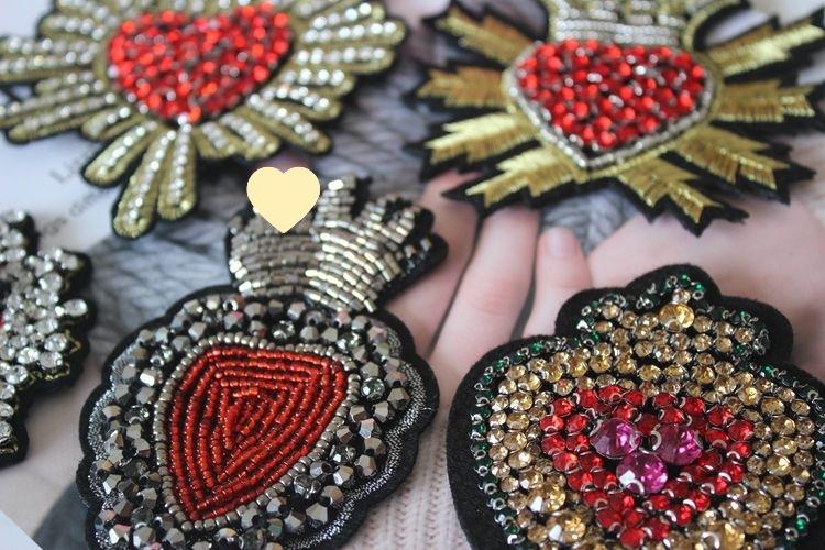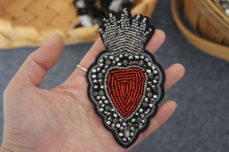 Parche de tela con forma de corazón de lentejuelas rojas con cuentas pesadas, hecho a mano, para ropa, bolsos, suéteres, accesorios de decoración