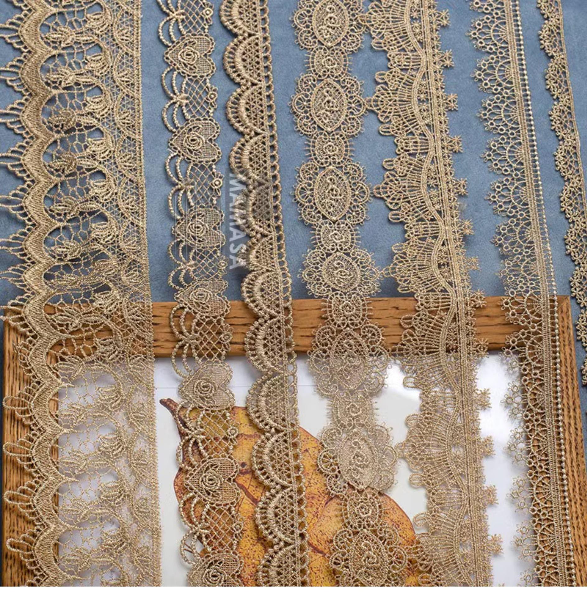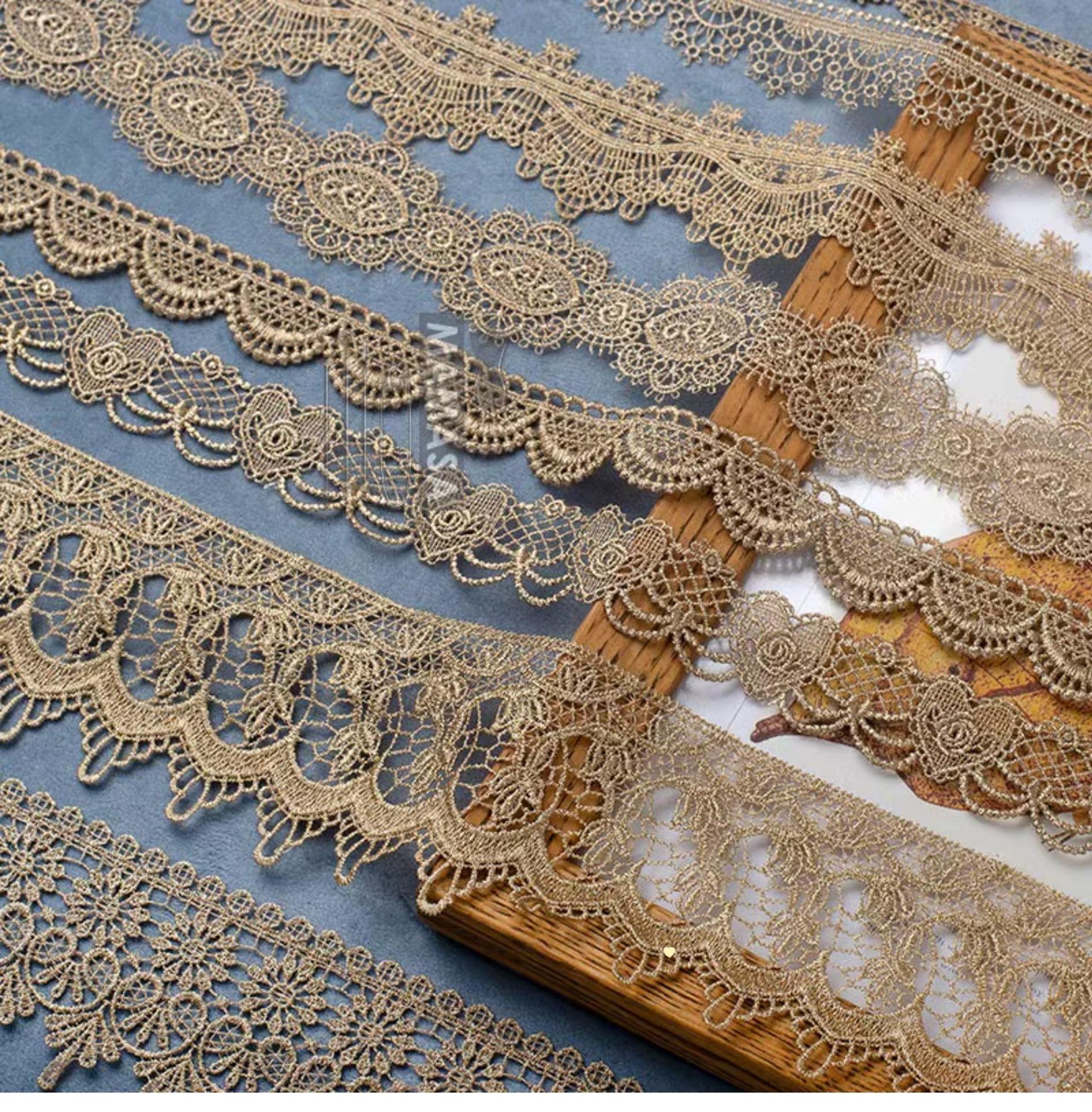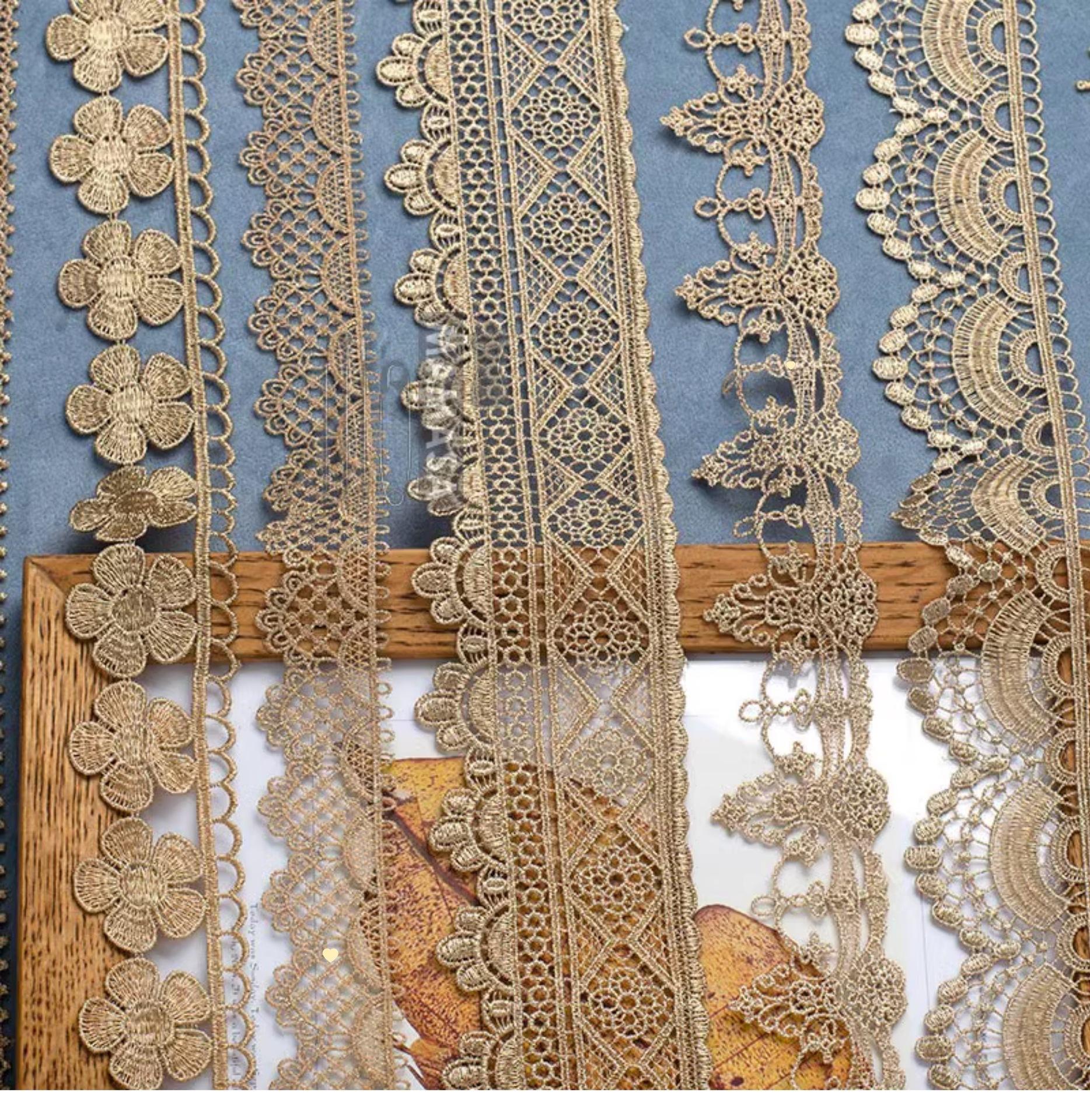Hilo dorado, encaje bordado soluble en agua, encaje de oro rosa, accesorios de lolita hechos a mano para bricolaje