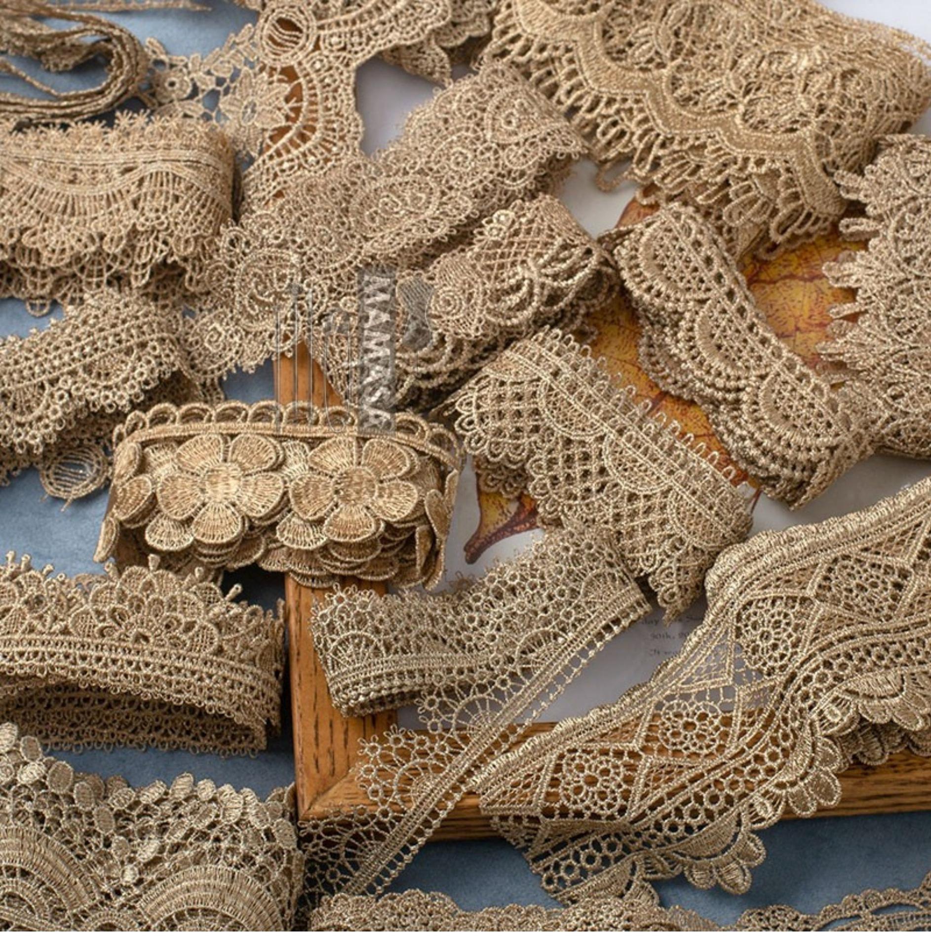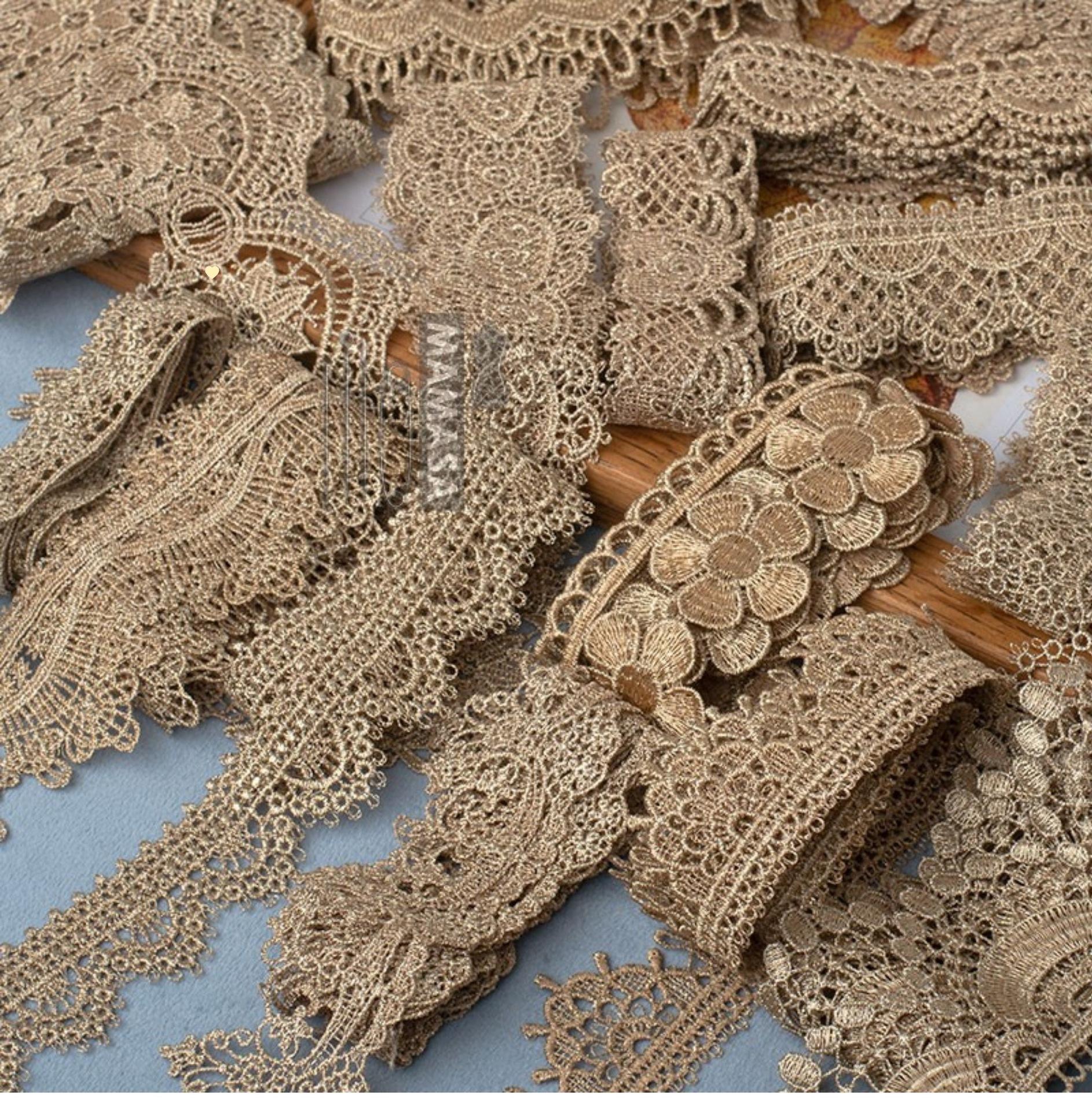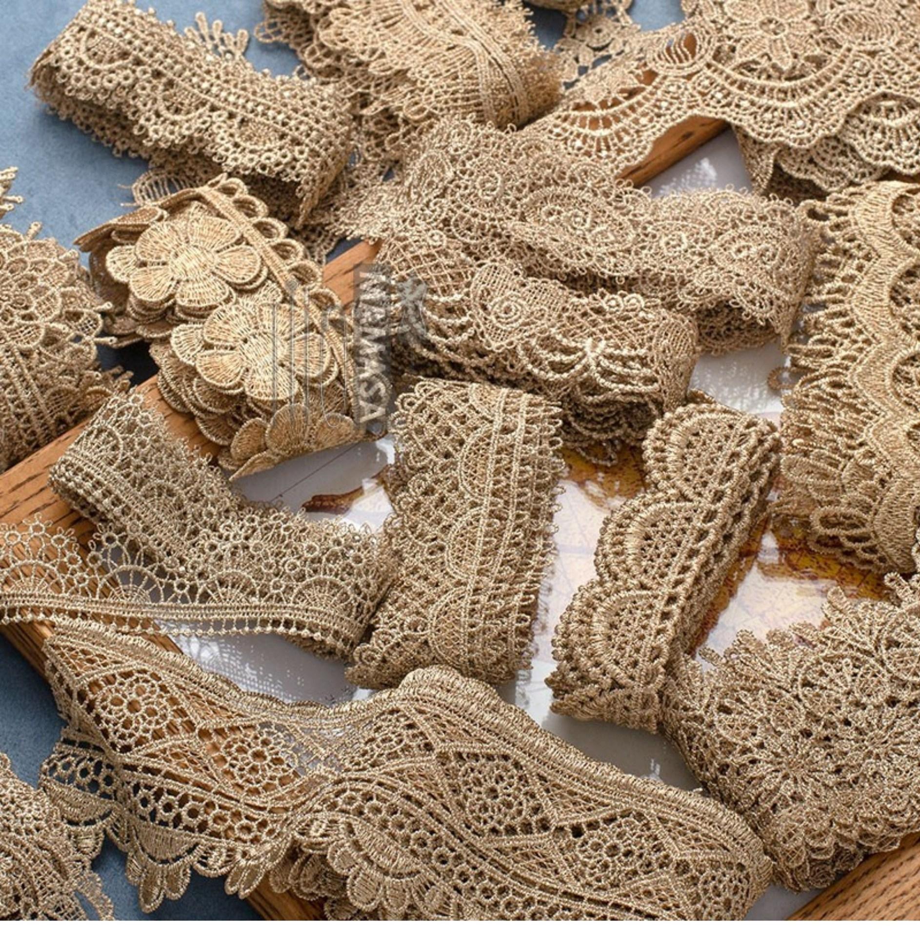 Hilo dorado, encaje bordado soluble en agua, encaje de oro rosa, accesorios de lolita hechos a mano para bricolaje