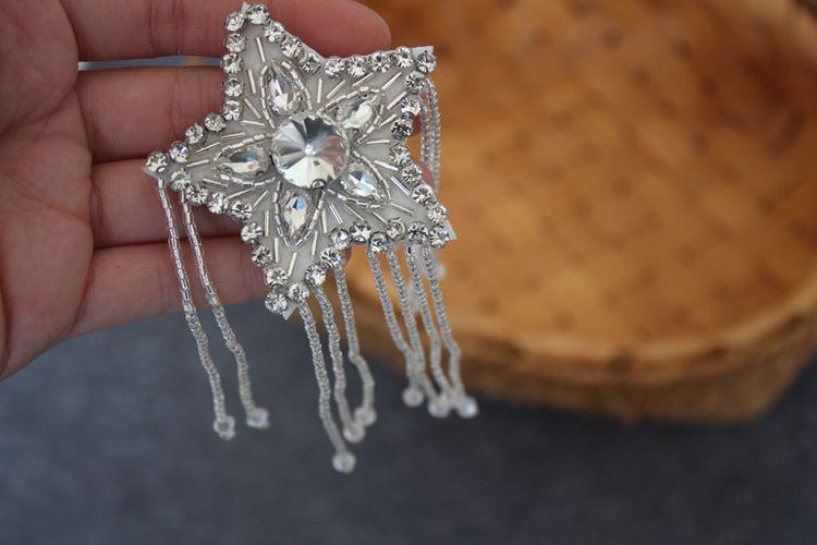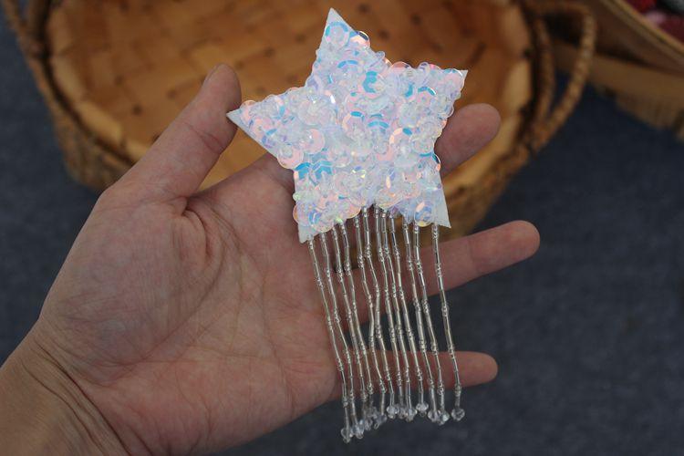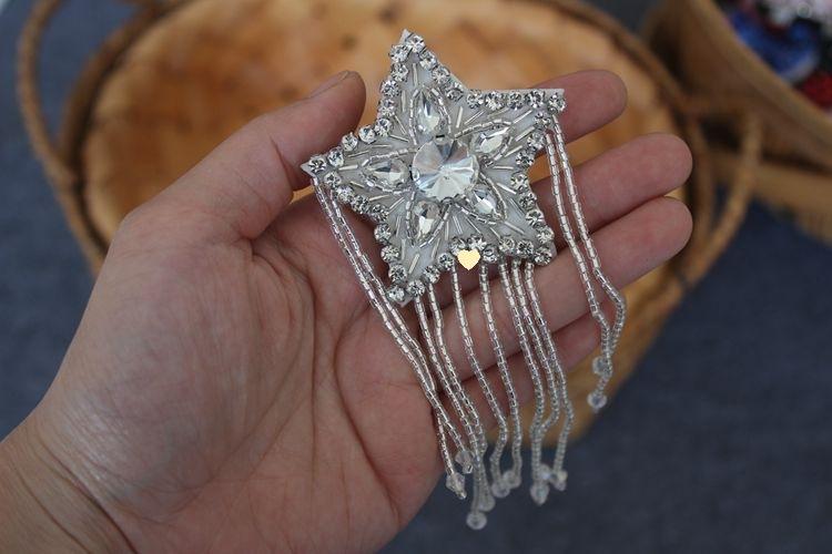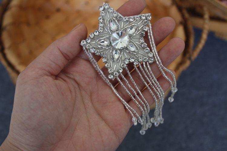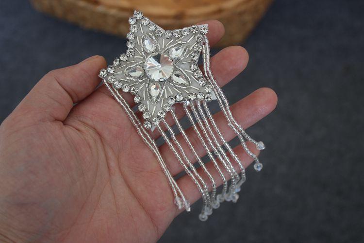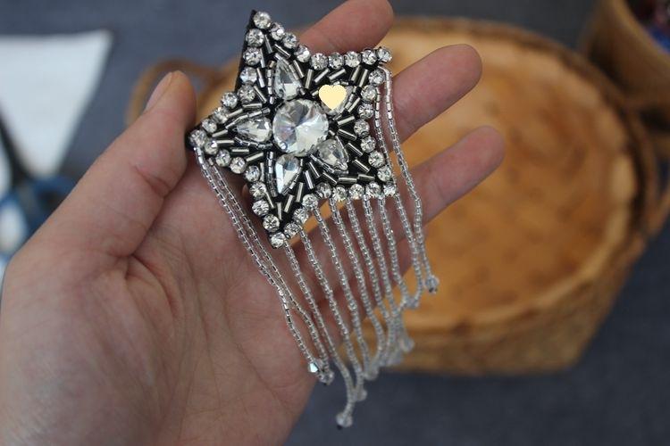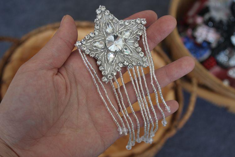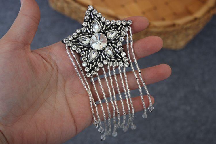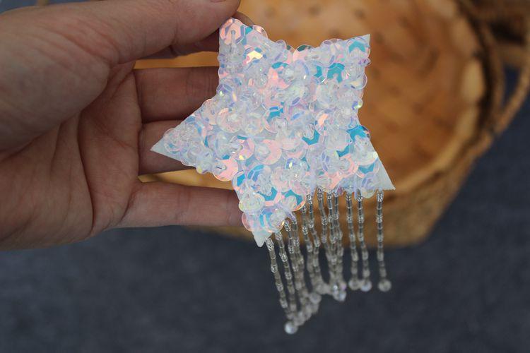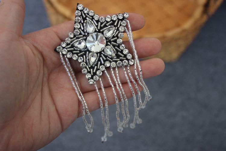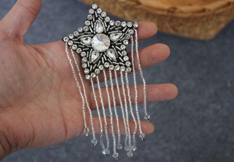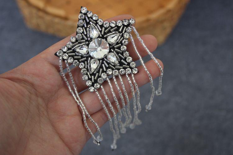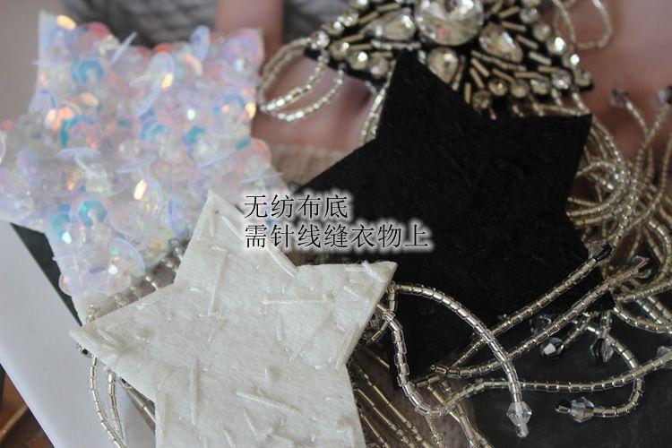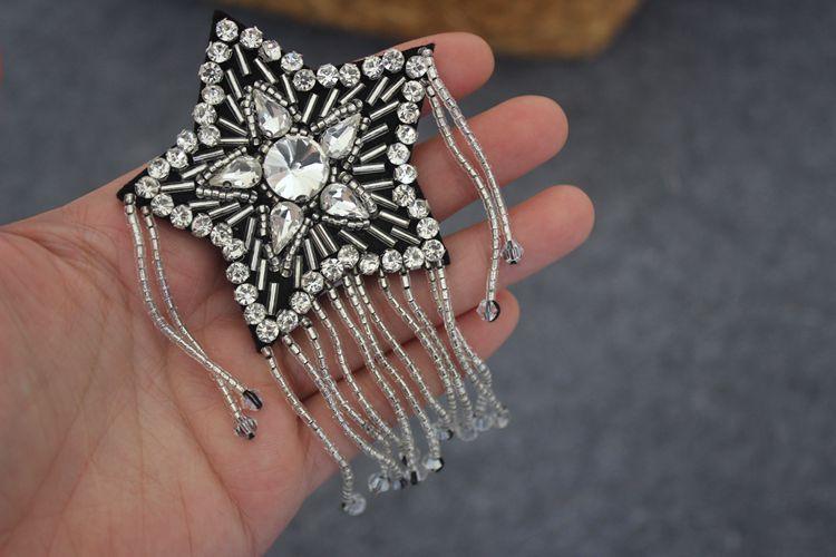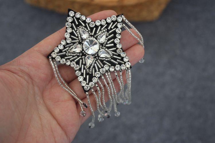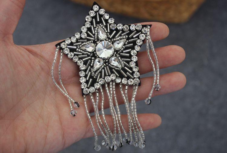 Pegatinas decorativas para ropa, ropa, abrigo, suéter, broche, joyería, cosidas a mano, con borlas y cuentas de estrellas en blanco y negro.