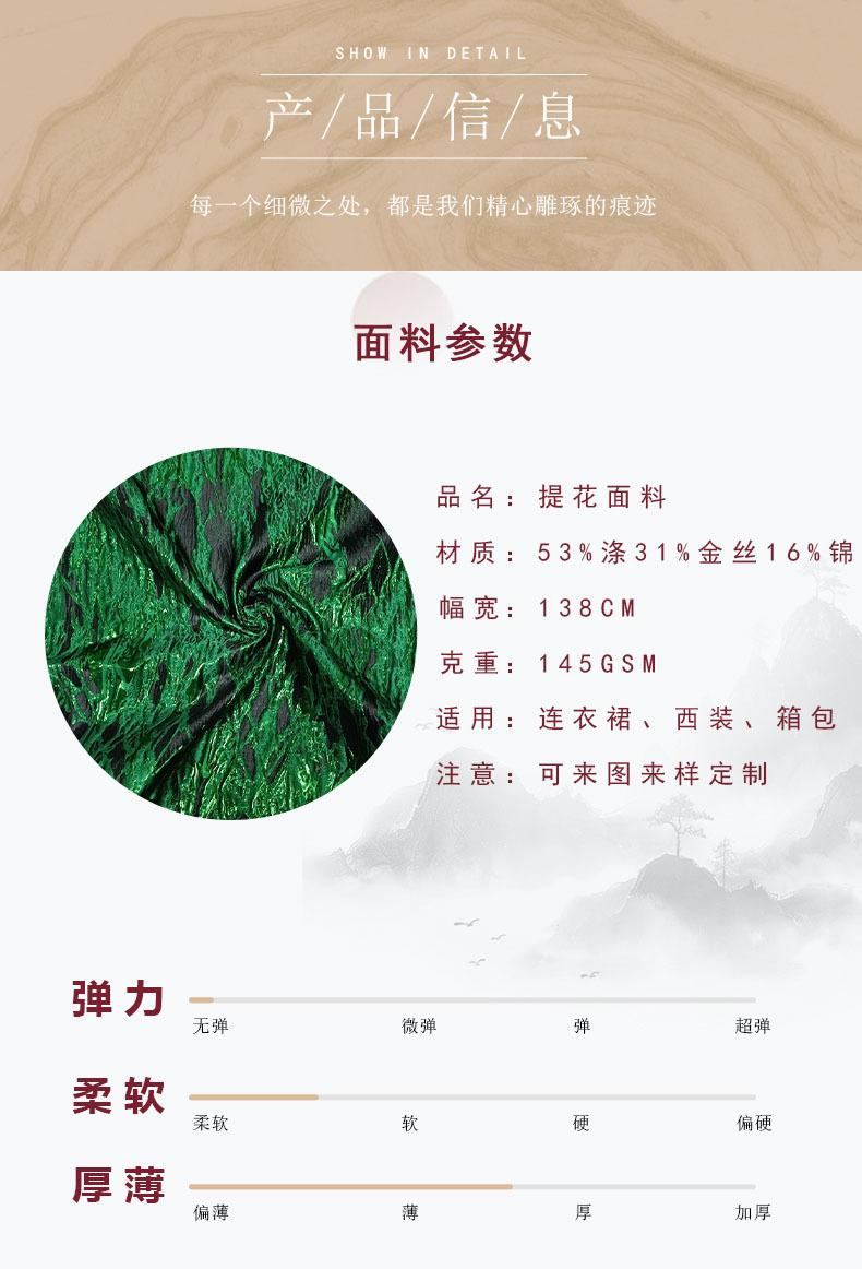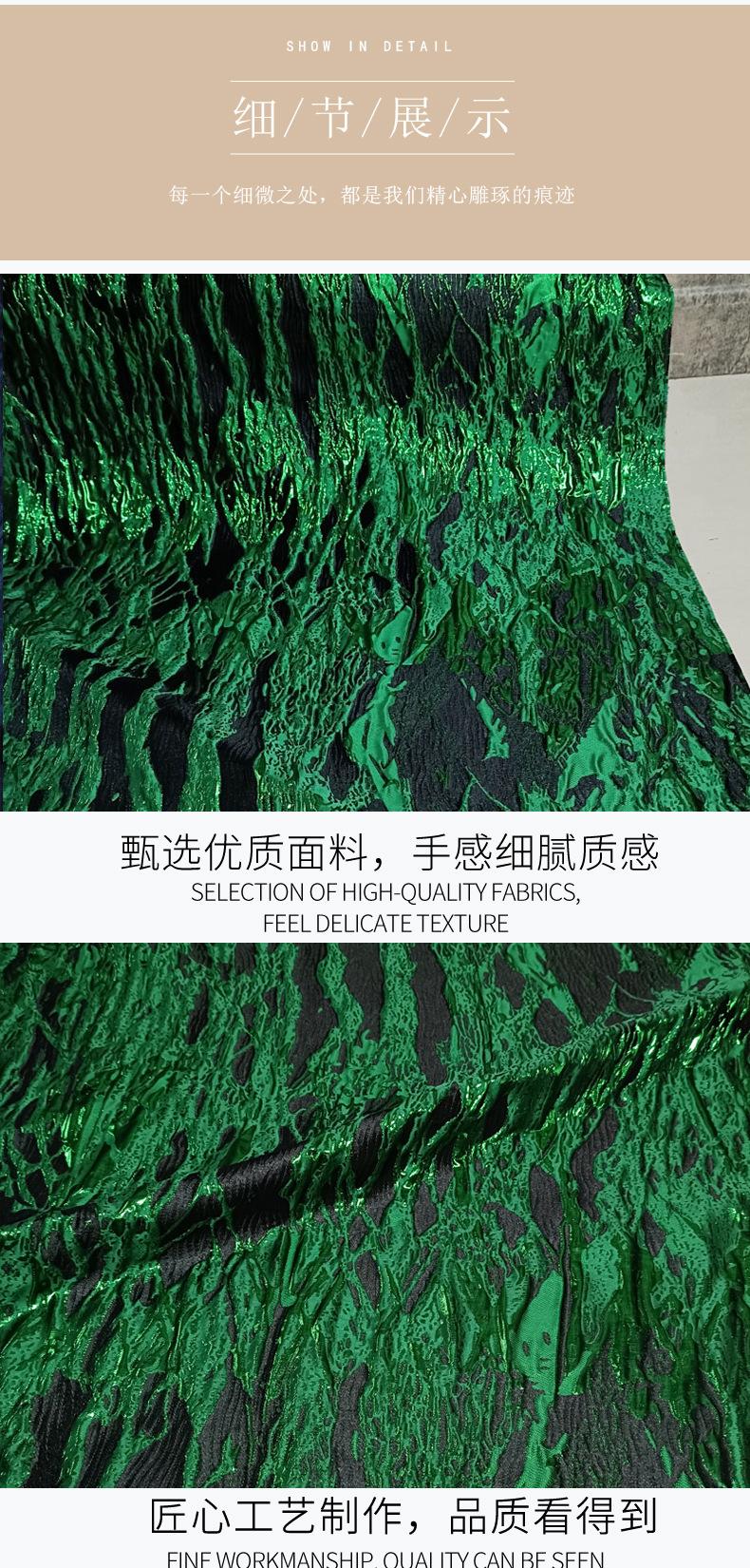 Tela jacquard de alta densidad con brillo dorado en relieve para siluetas de abrigos, vestidos, mesas de espectáculos, tela de diseñador de vestuario