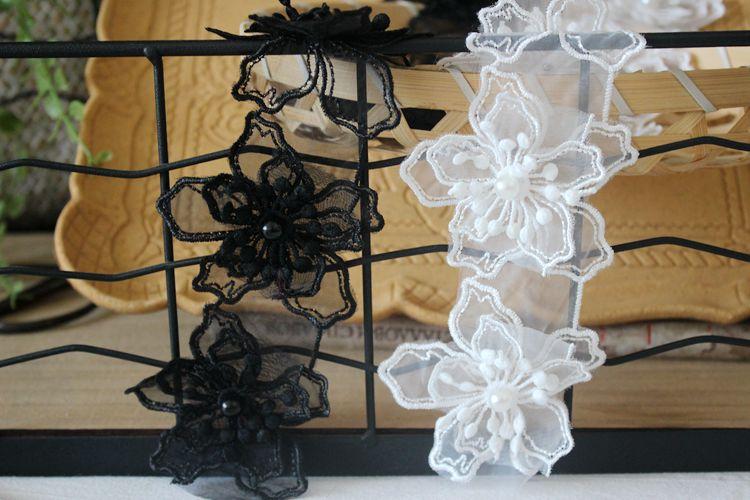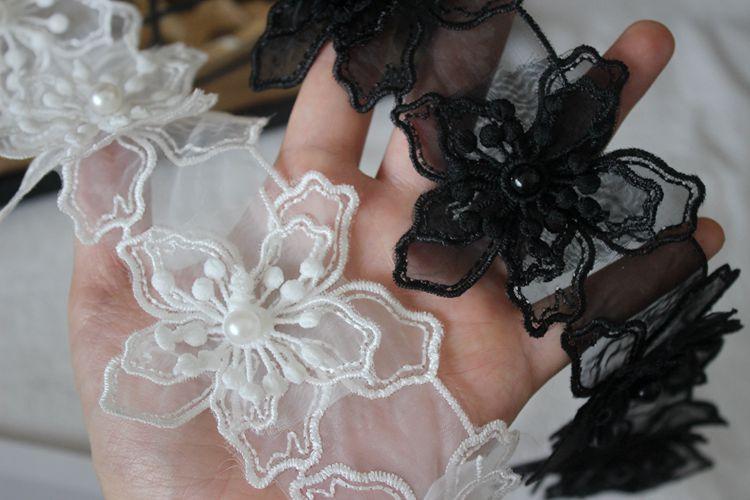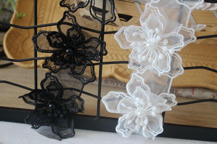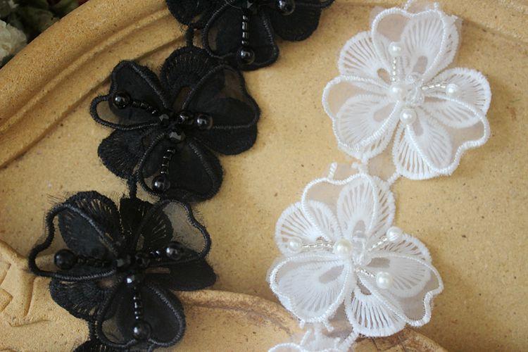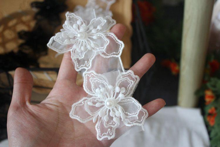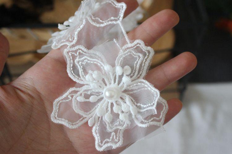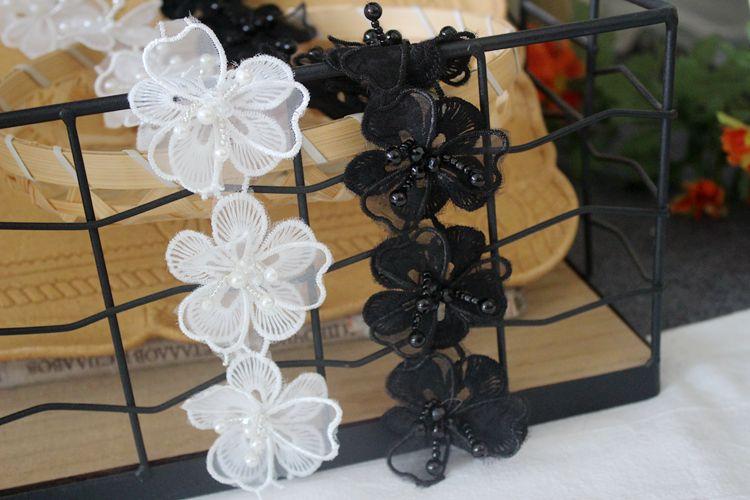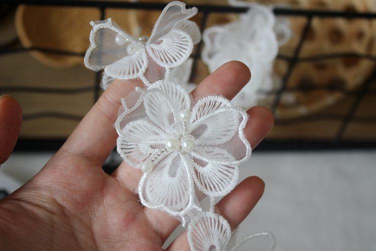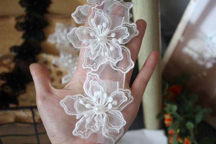 Exportación hecho a mano con cuentas doble capa malla bordado soluble en agua encaje tridimensional encaje ropa boda accesorios para el cabello