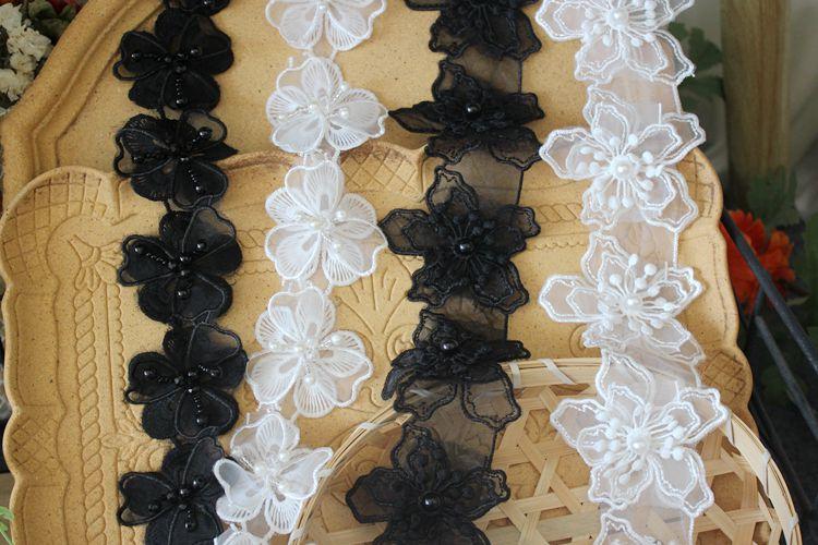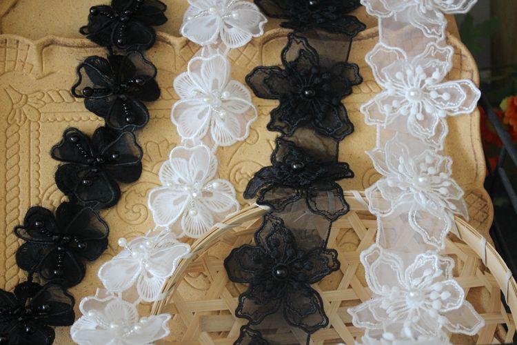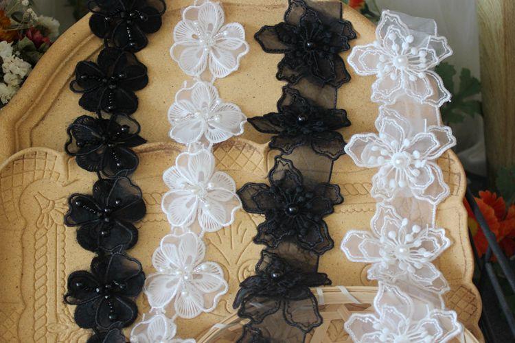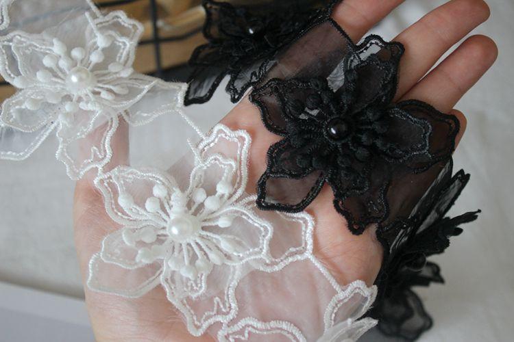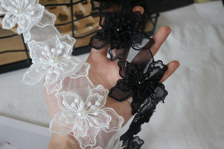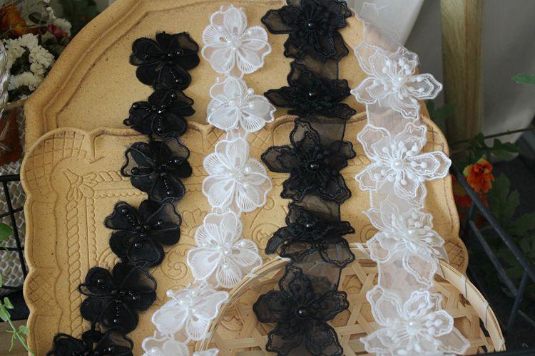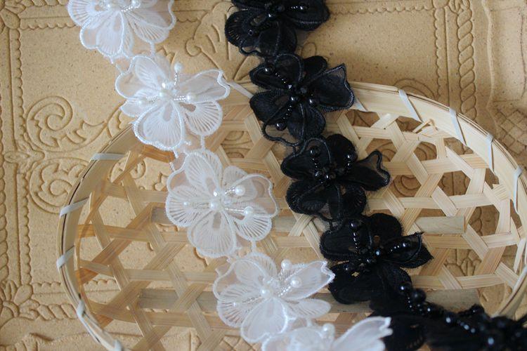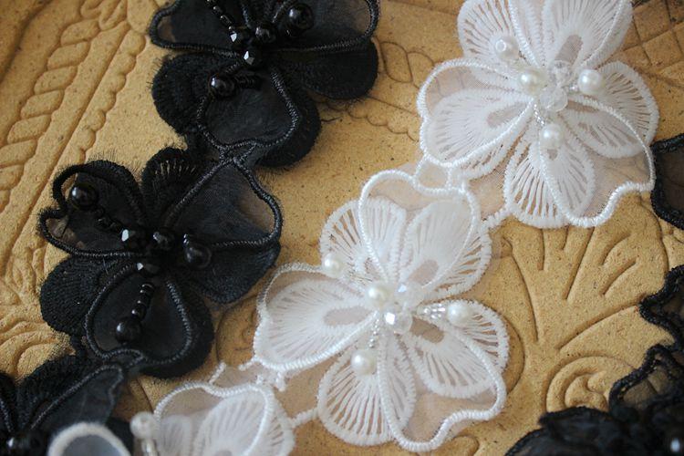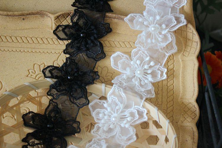 Exportación hecho a mano con cuentas doble capa malla bordado soluble en agua encaje tridimensional encaje ropa boda accesorios para el cabello