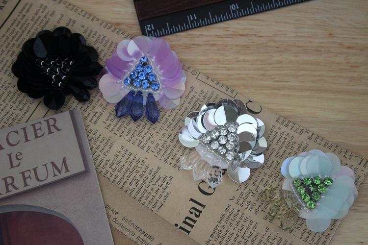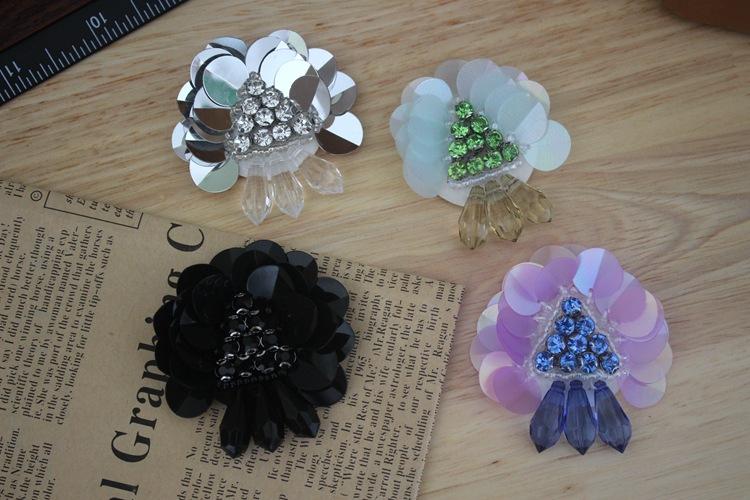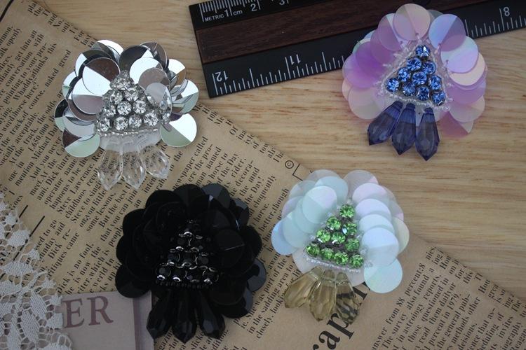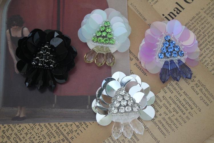 Pegatinas de tela para ropa con cuentas hechas a mano con lentejuelas tridimensionales, accesorios de bricolaje, costura de ropa, flores, tocados, accesorios, parche