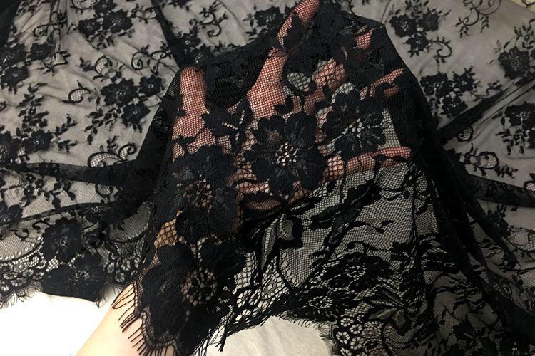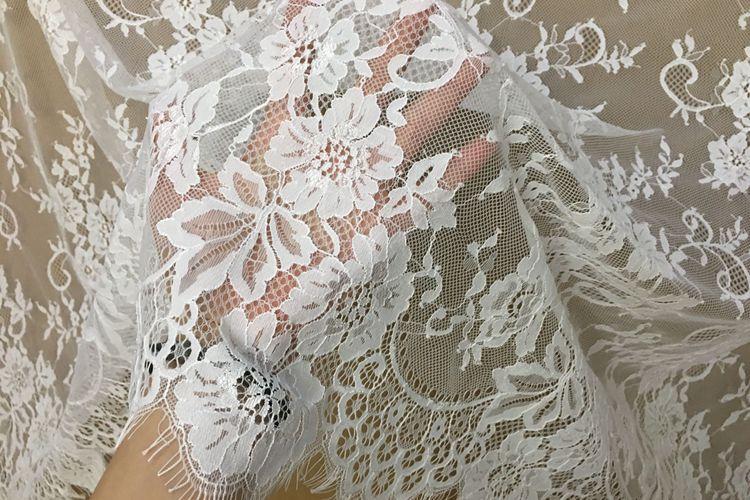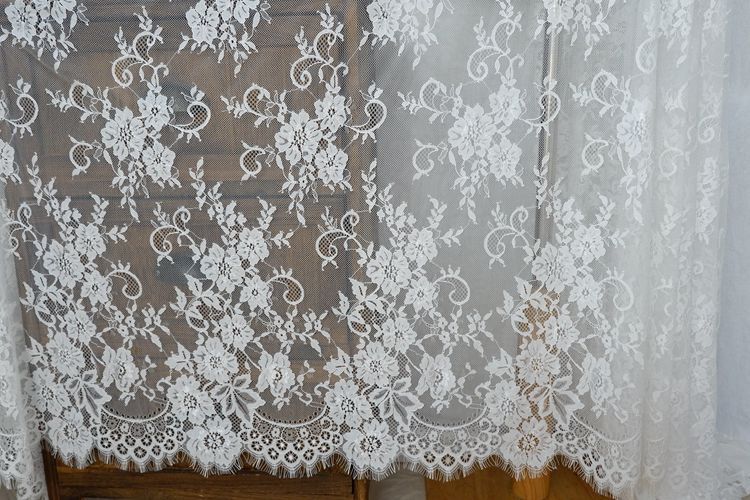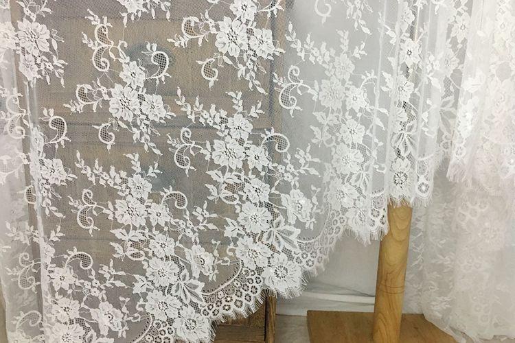 Exportación de encaje de pestañas gruesas de 150 cm de ancho, hecho a mano, para ropa, vestido de novia, hilo para accesorios, material