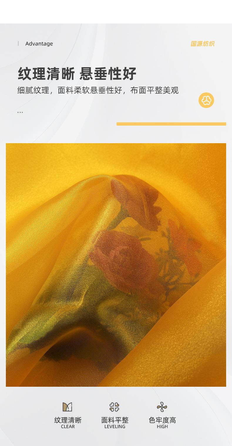 Tela estampada de organza de tres hilos, suave y drapeada, ideal para vestidos de Hanfu, bodas y ropa de moda.