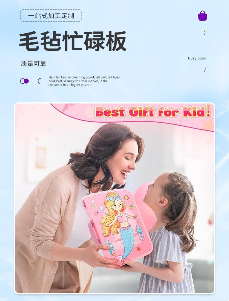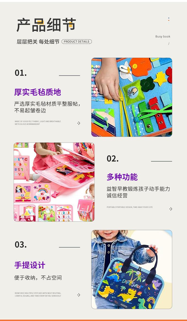 Tablero de aprendizaje azul de dibujos animados para niños, libro de juguetes para niños, ejercicio, aprendizaje de habilidades prácticas, juguetes educativos, tablero de fieltro