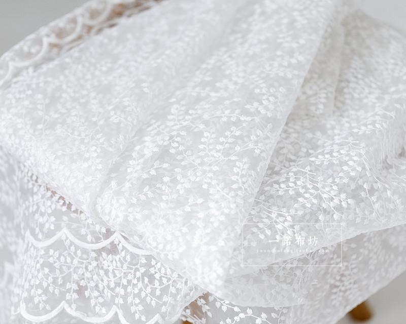 Tela de organza bordada con encaje, tela de malla bordada, tela blanca suave para ropa, tela para la cabeza, Hanfu, hecha a mano, bricolaje