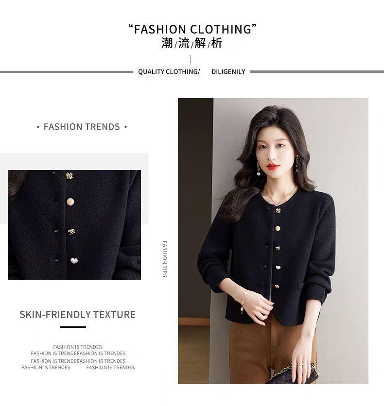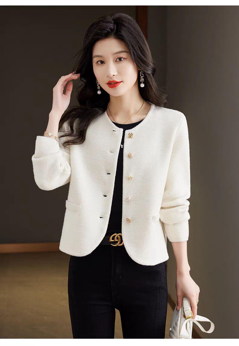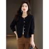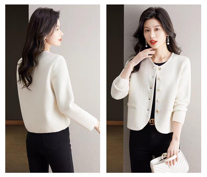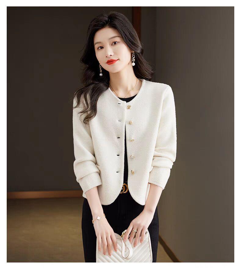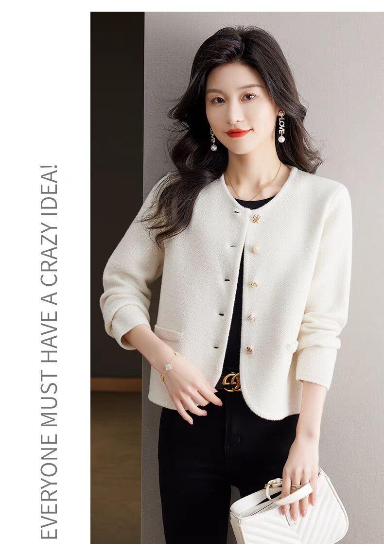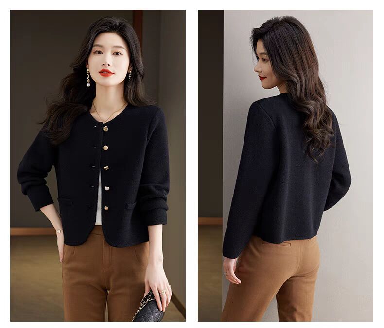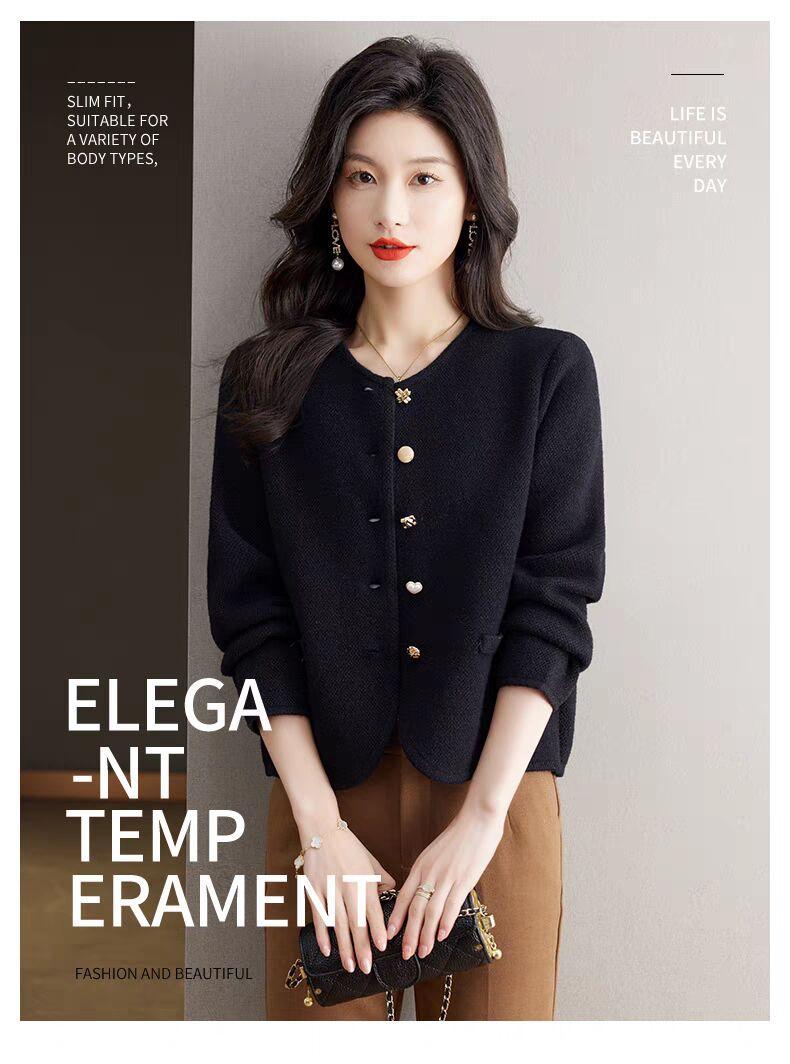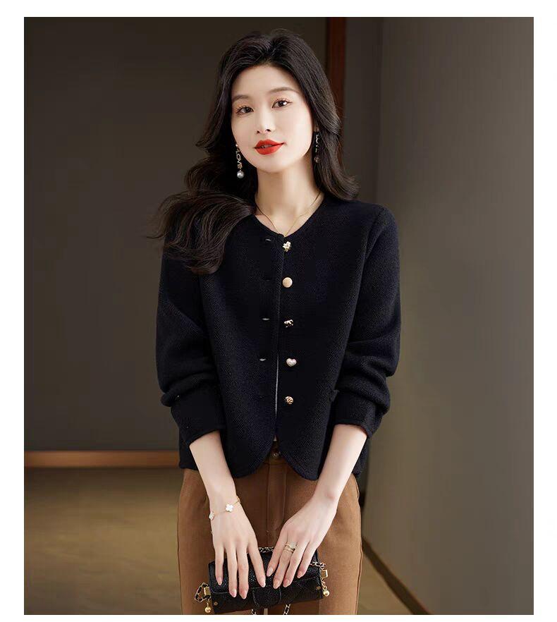 Abrigo Estilo Tweed para Mujer Otoño e Invierno Exterior Cárdigan Tejido Top Corto para Personas Pequeñas 2025 Nuevo Estilo
