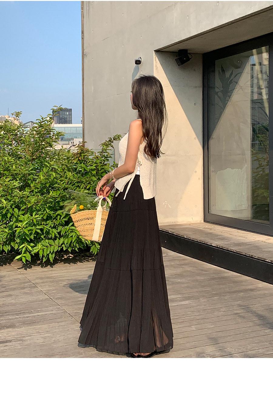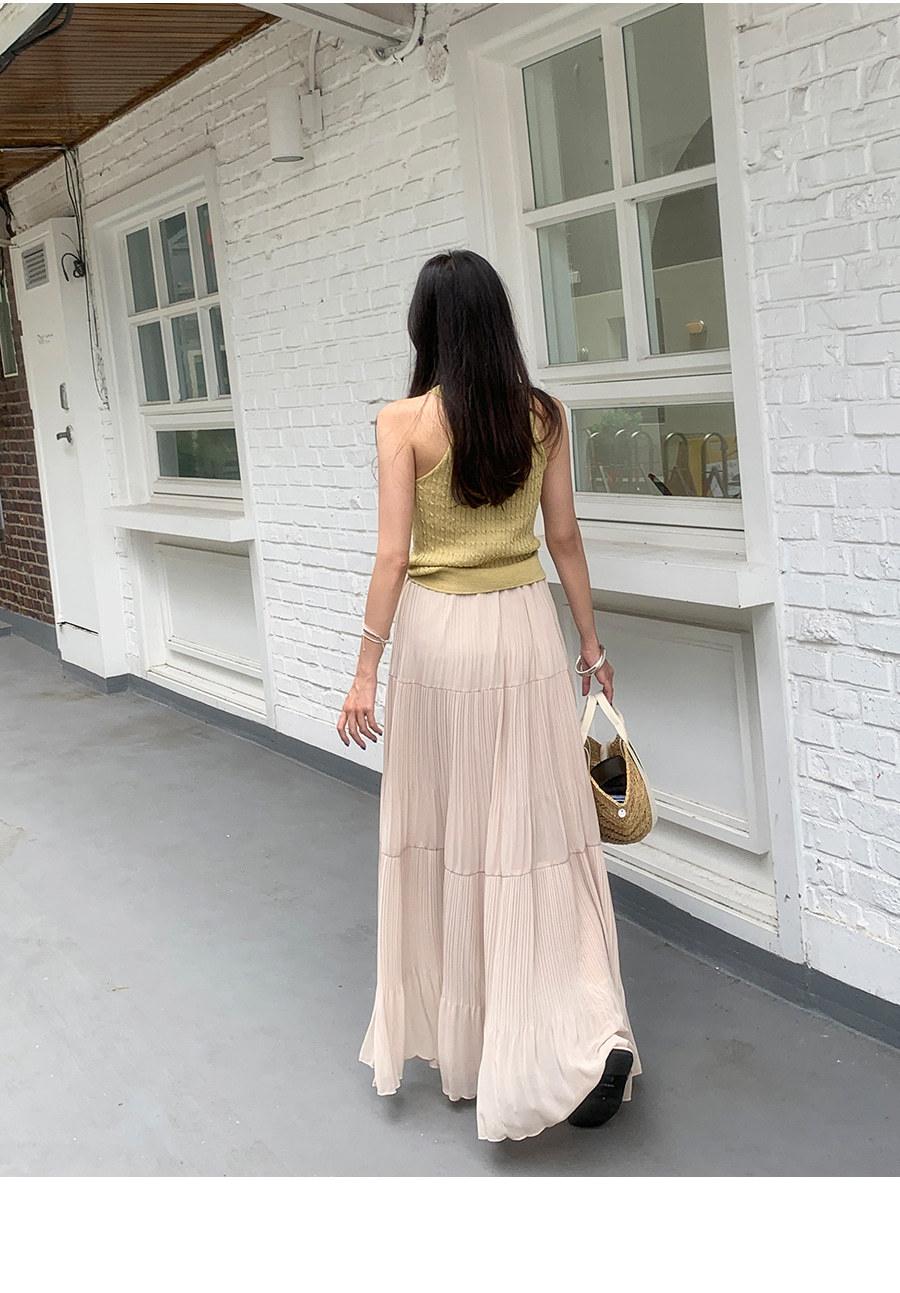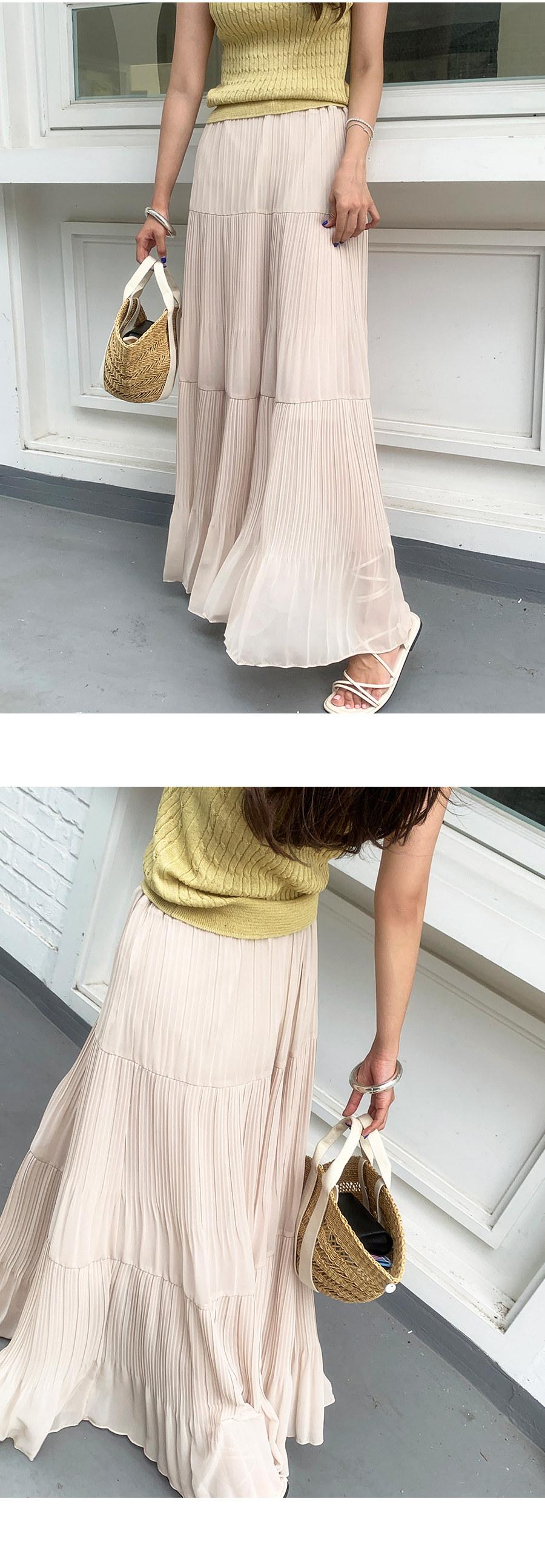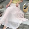 Falda plisada de cintura alta, elegante, larga, estilo paraguas, estilo retro romántico francés de verano 2025