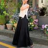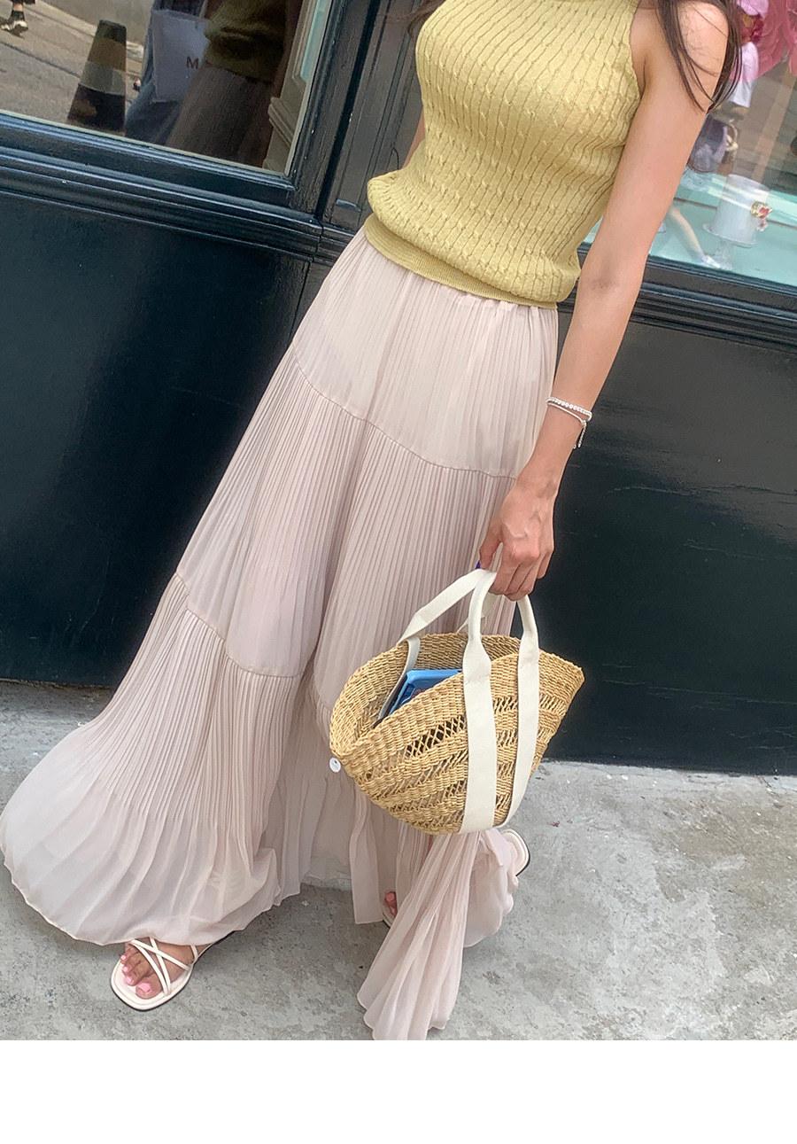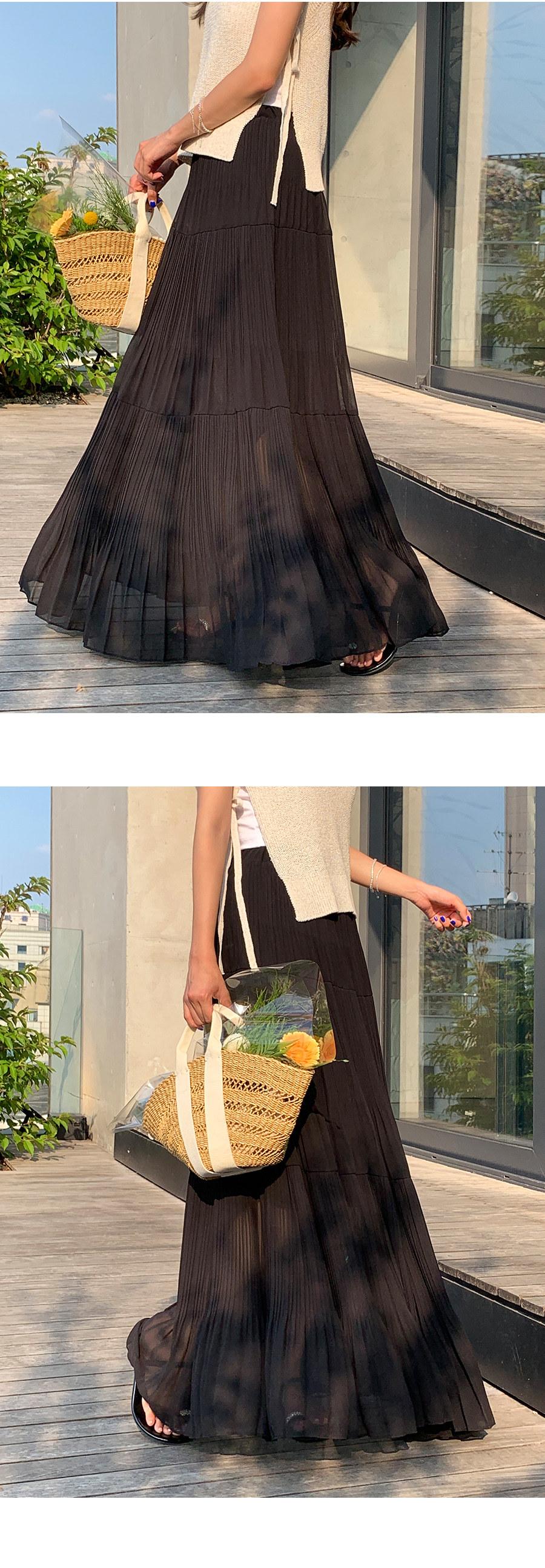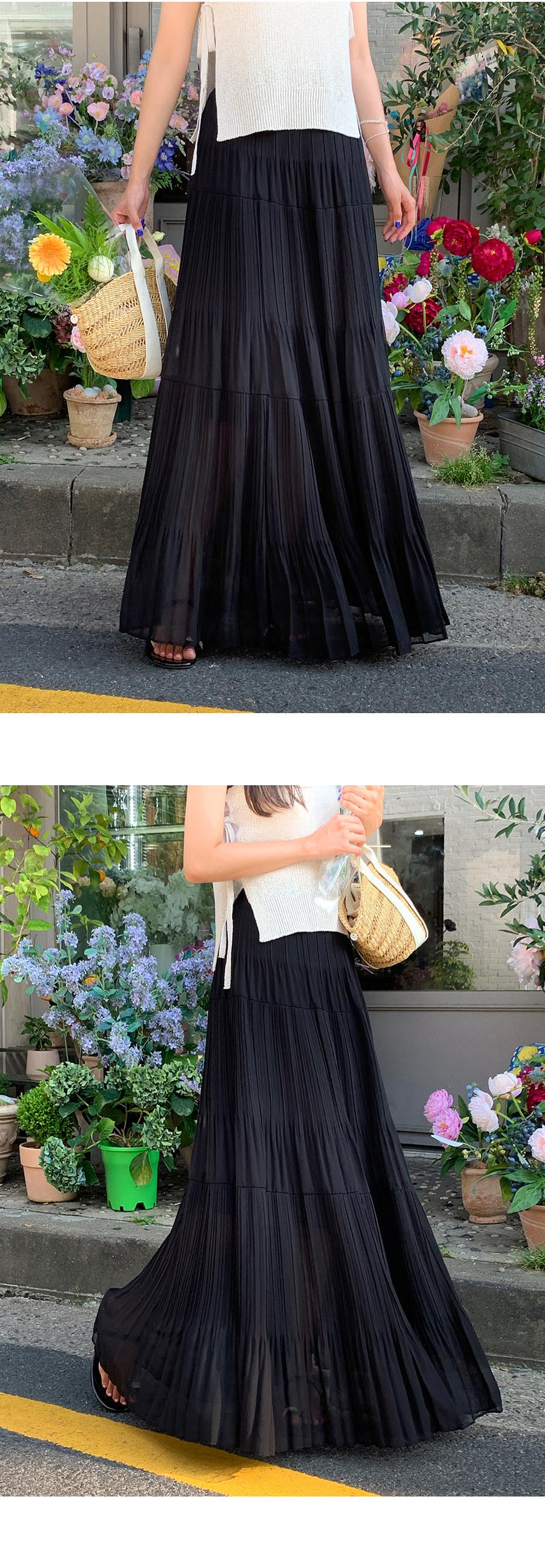 Falda plisada de cintura alta, elegante, larga, estilo paraguas, estilo retro romántico francés de verano 2025