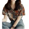 Ropa de Verano para Mujer 2025 Nueva Camisa de Manga Corta con Patrón Geométrico Casual Retro Pequeña Camisa de Lujo Accesible de Alta Gama