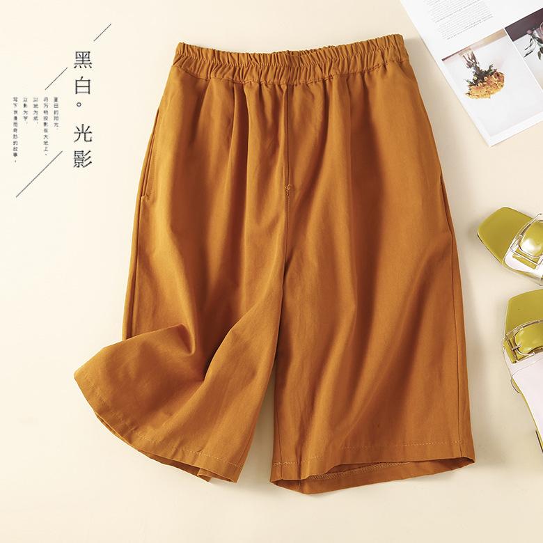 Pantalones cortos holgados informales de pierna ancha para mujer, estilo artístico, de verano 2024