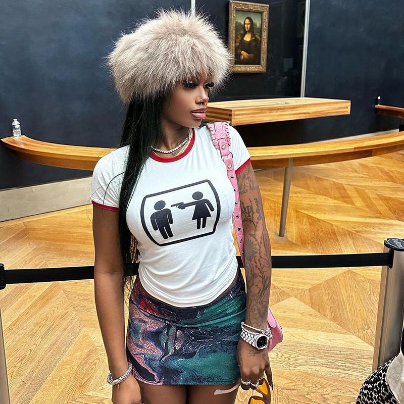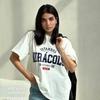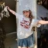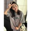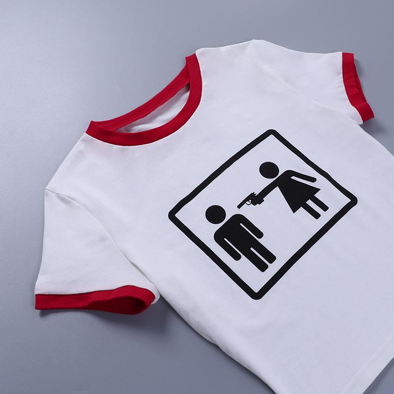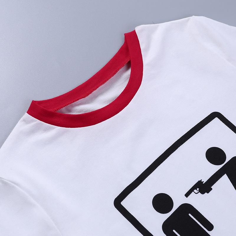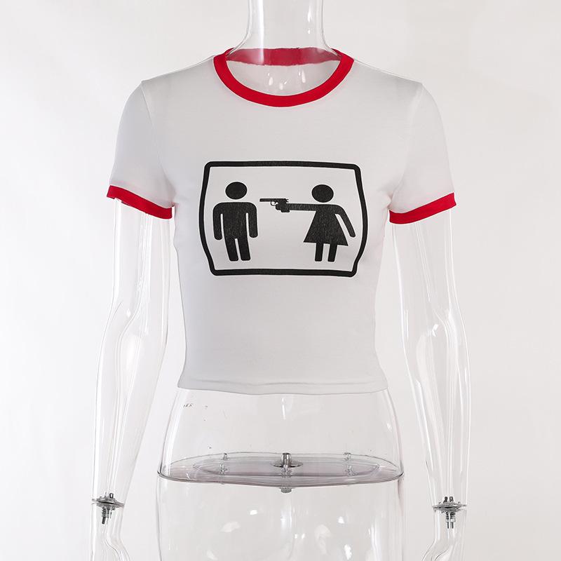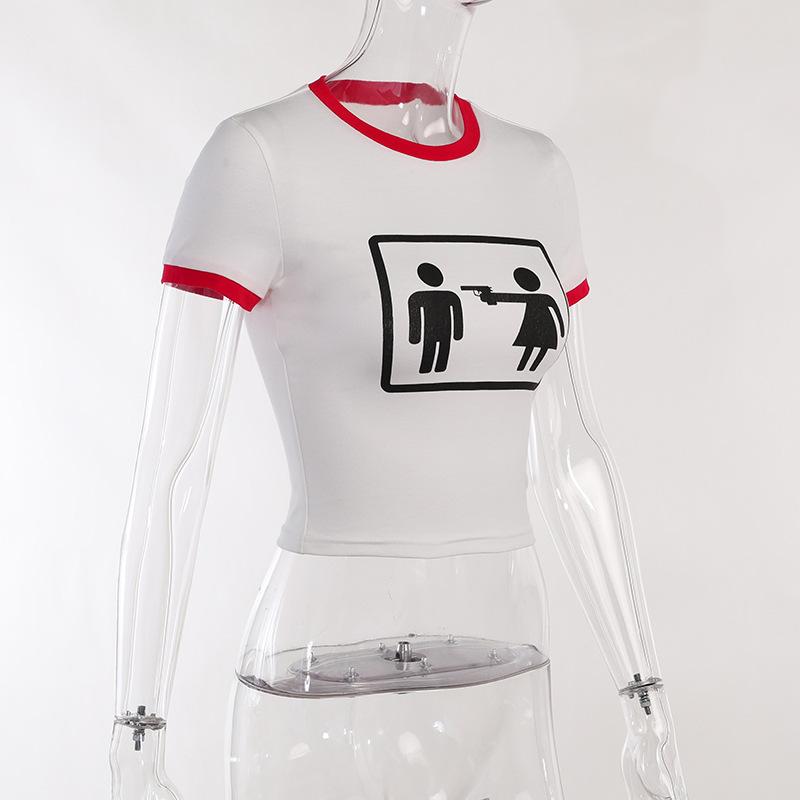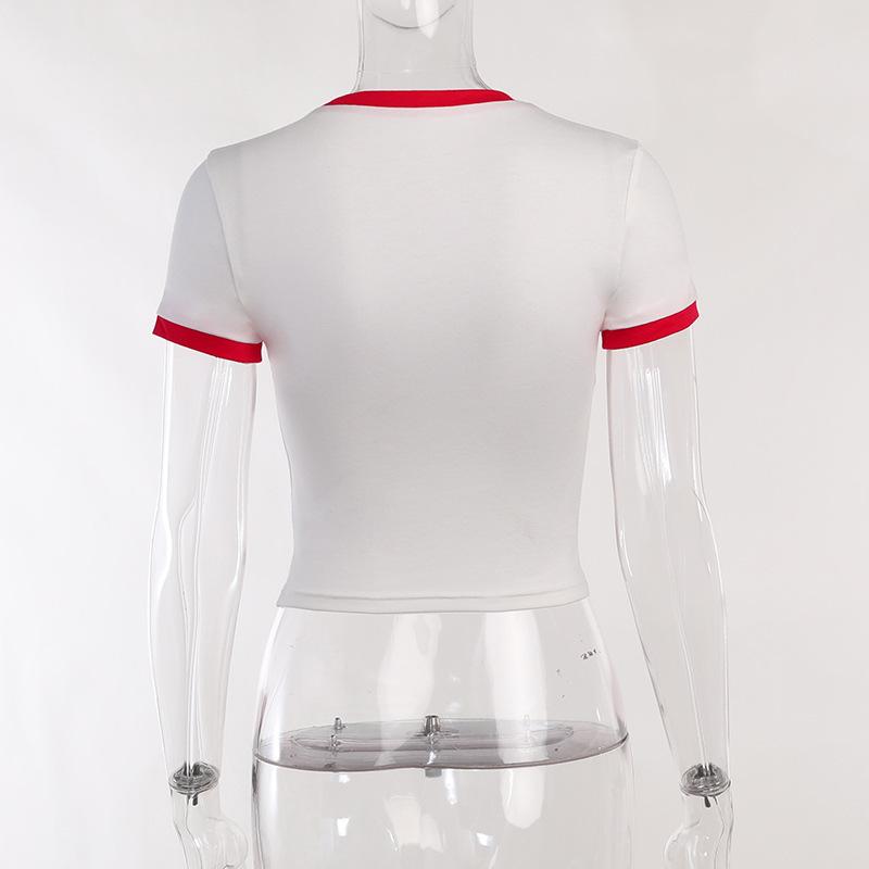 Camiseta básica de cuello redondo con estampado en contraste, de manga corta, estilo urbano europeo y americano, informal, corta y combinable.
