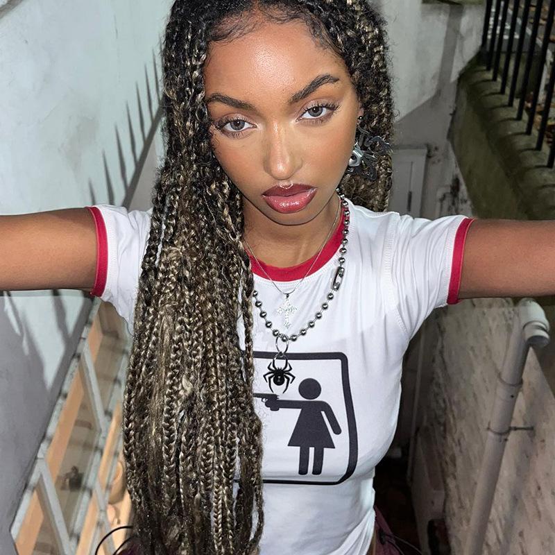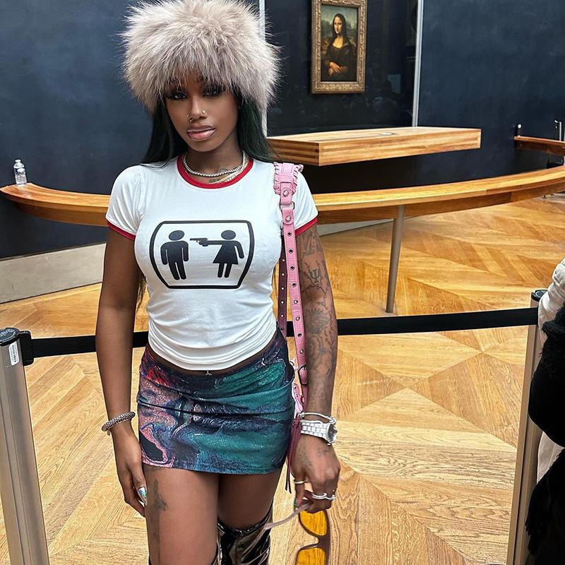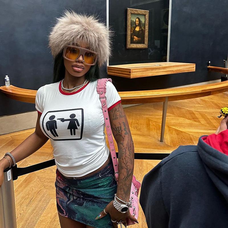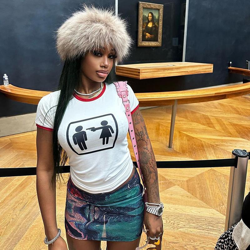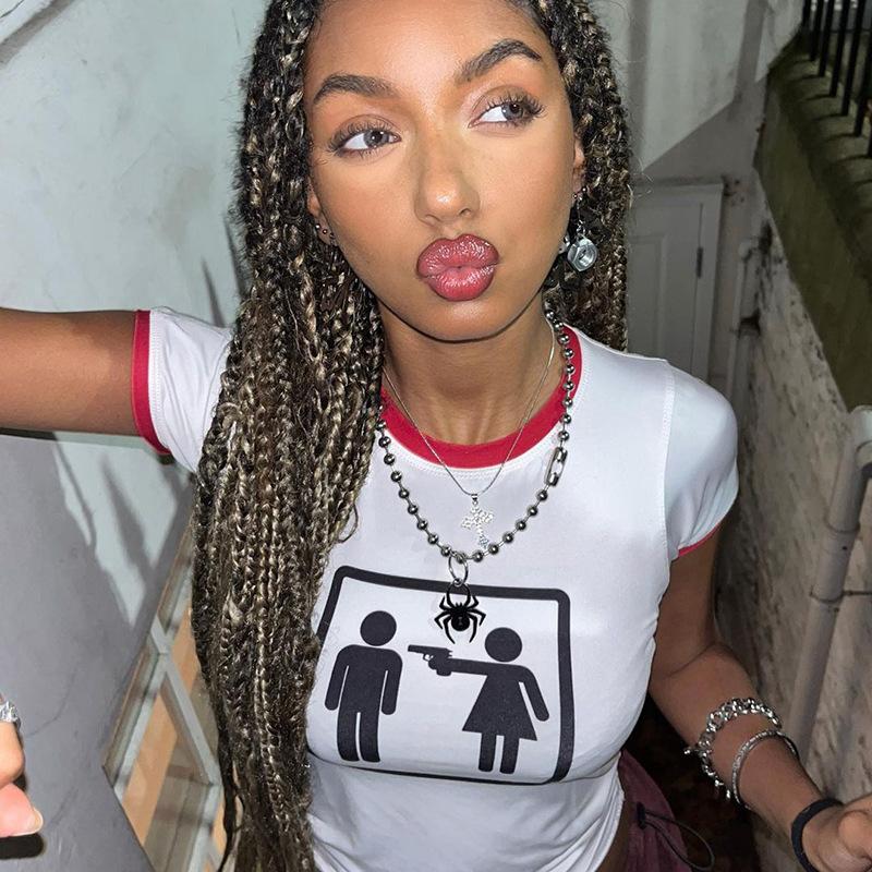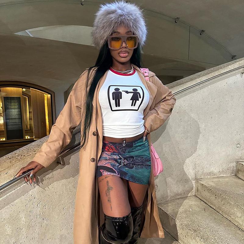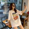Camiseta básica de cuello redondo con estampado en contraste, de manga corta, estilo urbano europeo y americano, informal, corta y combinable.