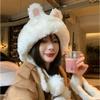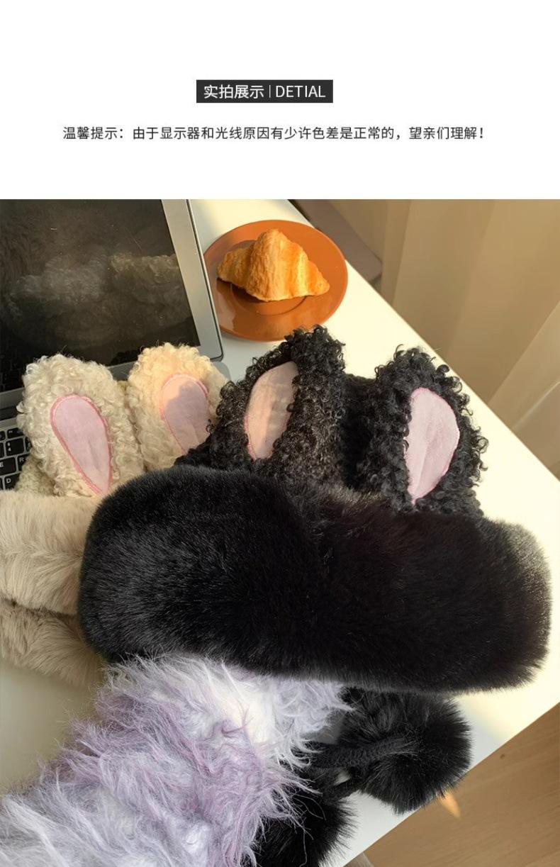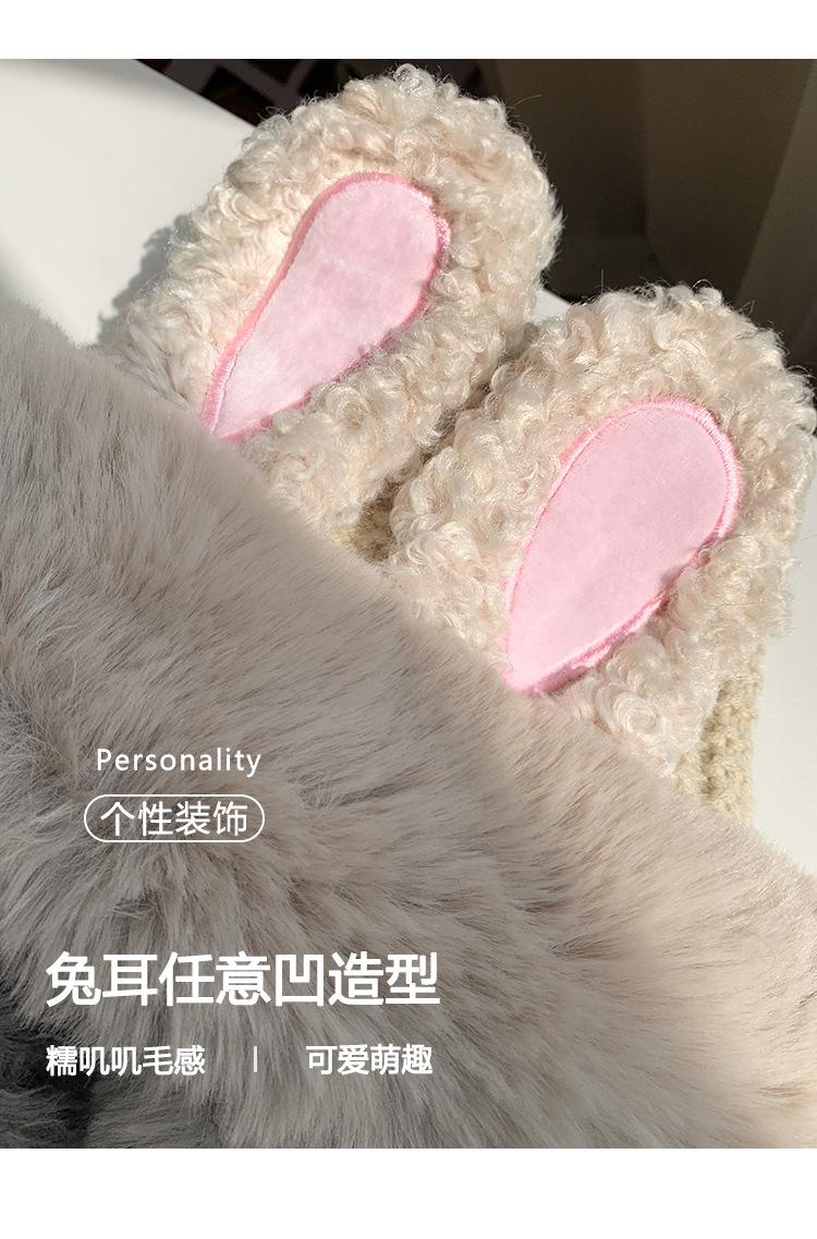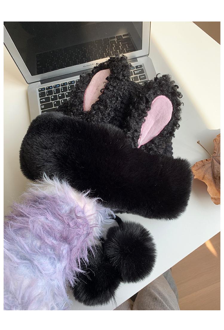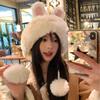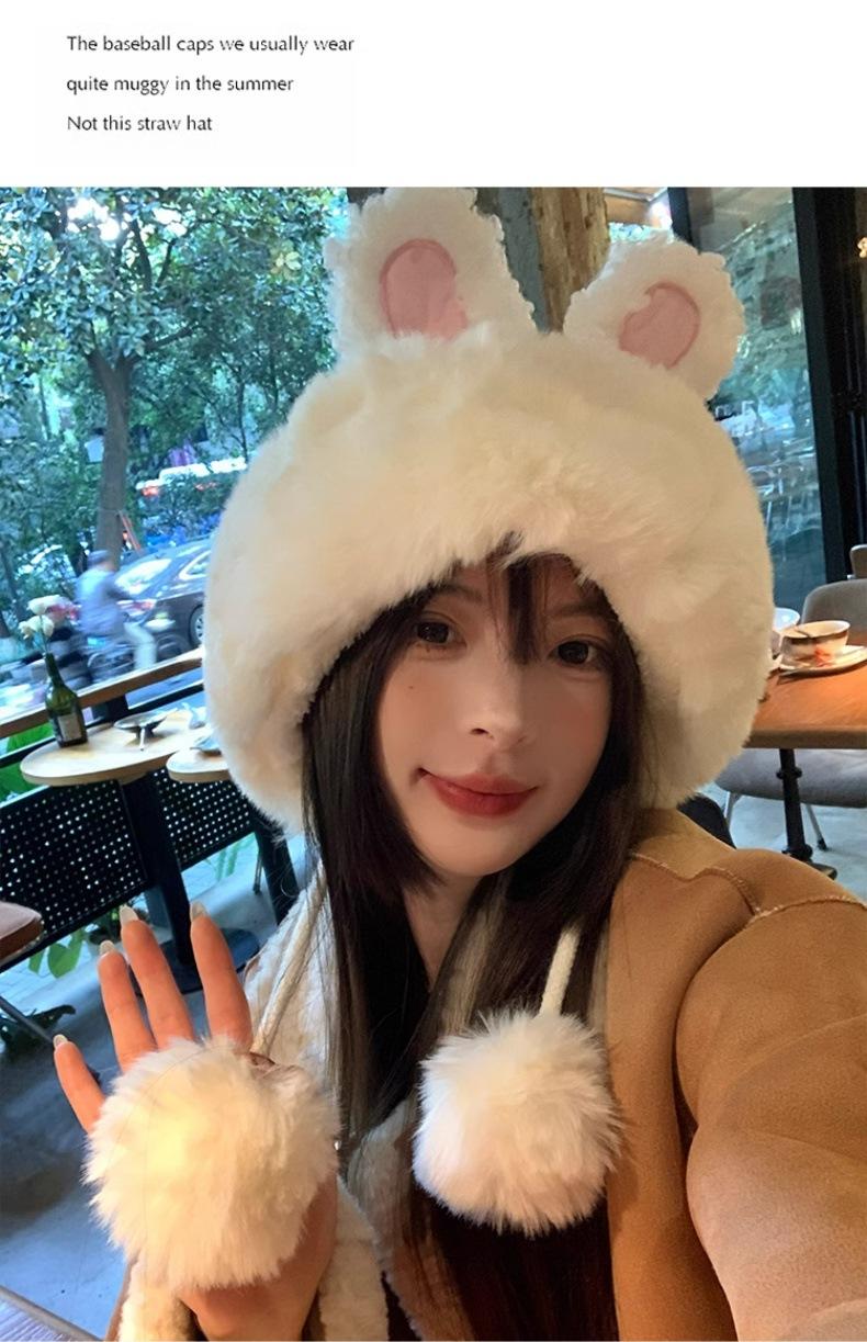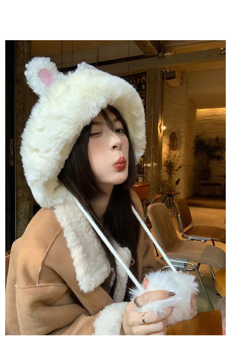 Gorro con orejas de conejo de peluche para mujer, cálido gorro de lana tejido para invierno, protección para los oídos, gorro pequeño con puntera para el frío.