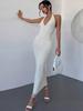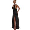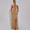 Vestido Elegante de Fiesta de Verano Europeo y Americano 2025 con Cuello Halter, Espalda Descubierta, Seda Brillante, Cuello en V, Abertura, Ajustado, para Mujer