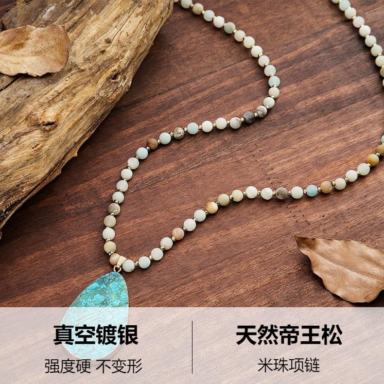 Popular Cadena de Suéter Estilo Bohemio Transfronterizo Invierno Collar con Colgante en Forma de Gota Collar de Piedra Natural del Océano para Mujer