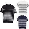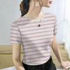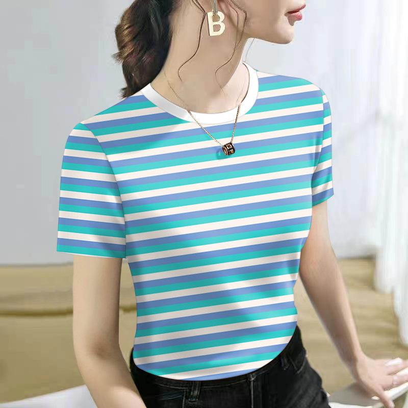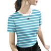 Camiseta informal de manga corta para madre de AliExpress, nueva camiseta de verano para mujer con rayas coloridas, cuello redondo, holgada y ajustada.