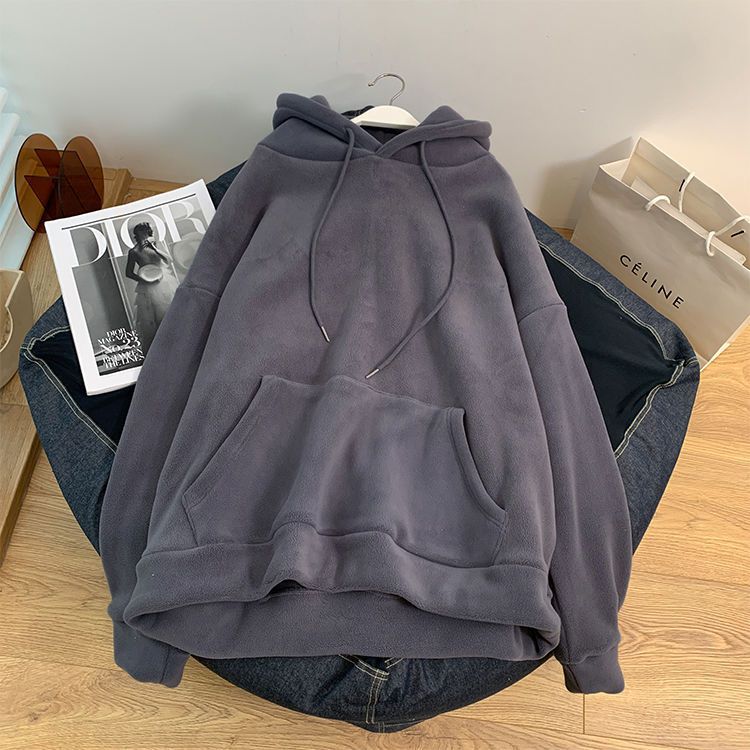 Suéter polar de doble cara para mujer, invierno, estilo coreano, versátil, con forro polar, grueso, holgado, manga larga, sudadera con capucha, top casual