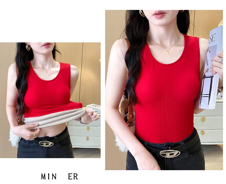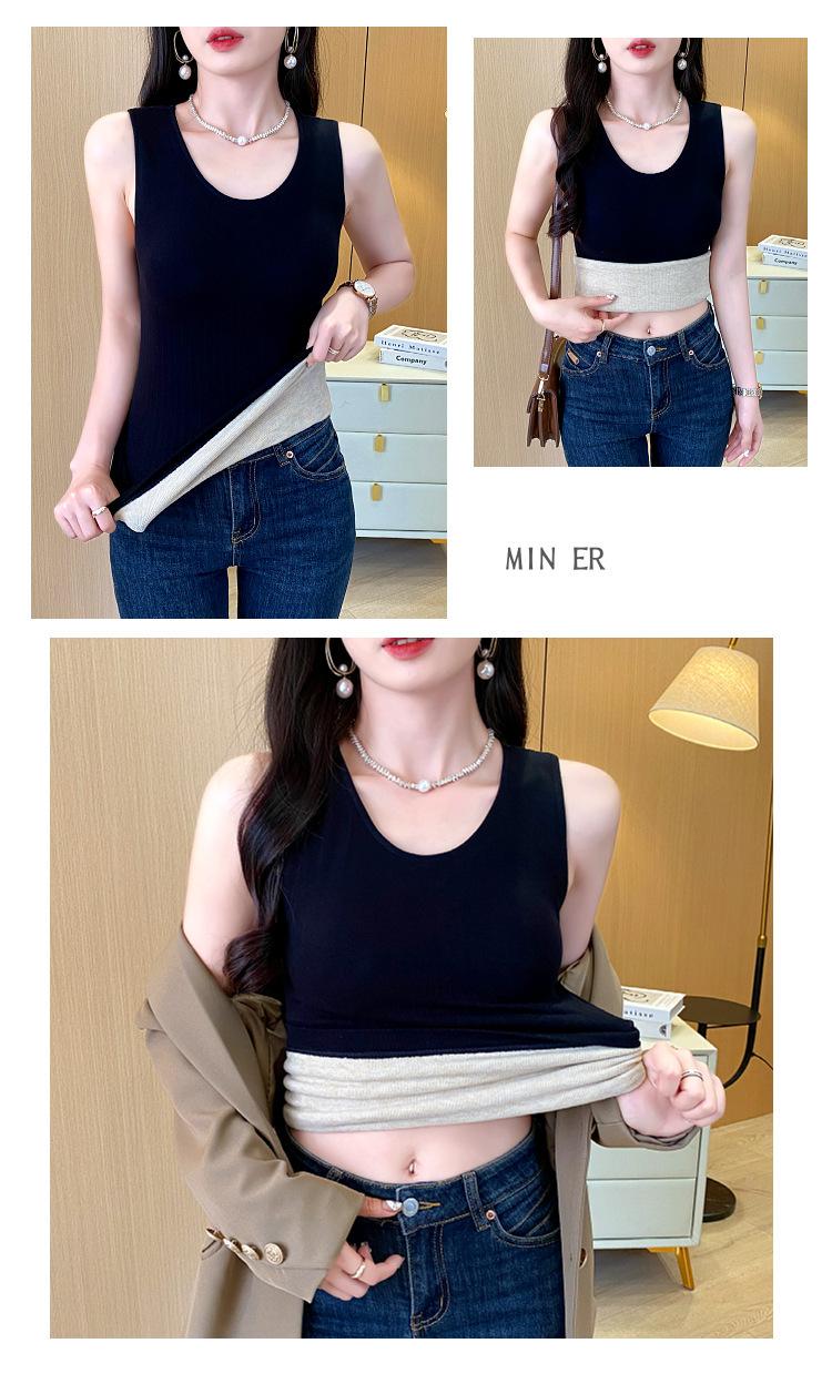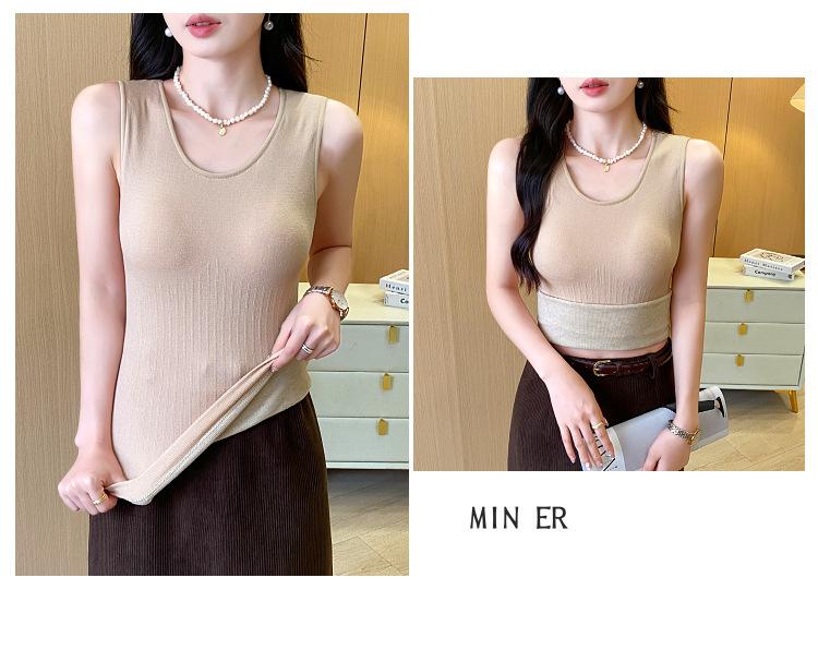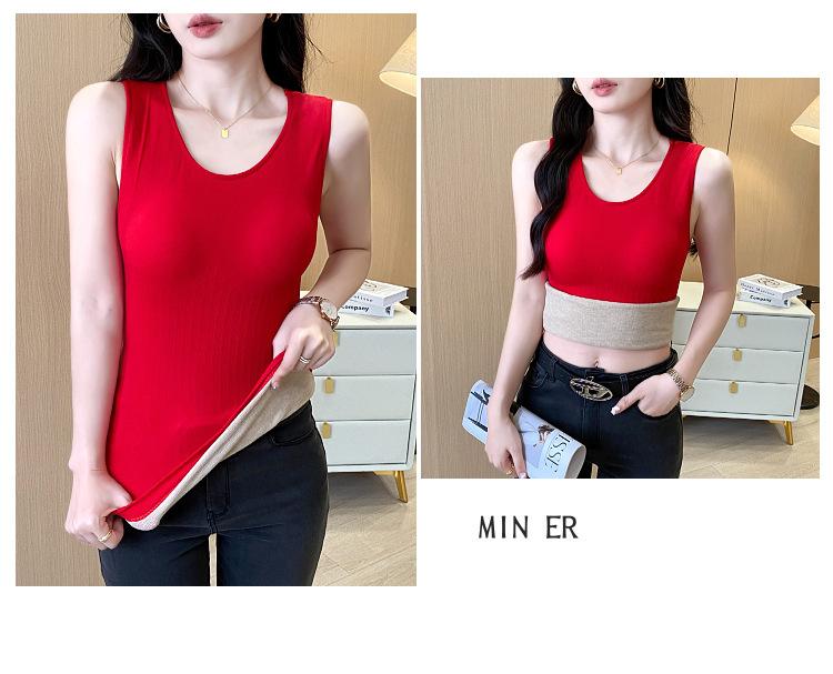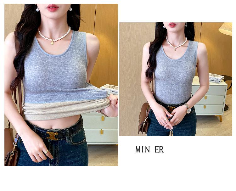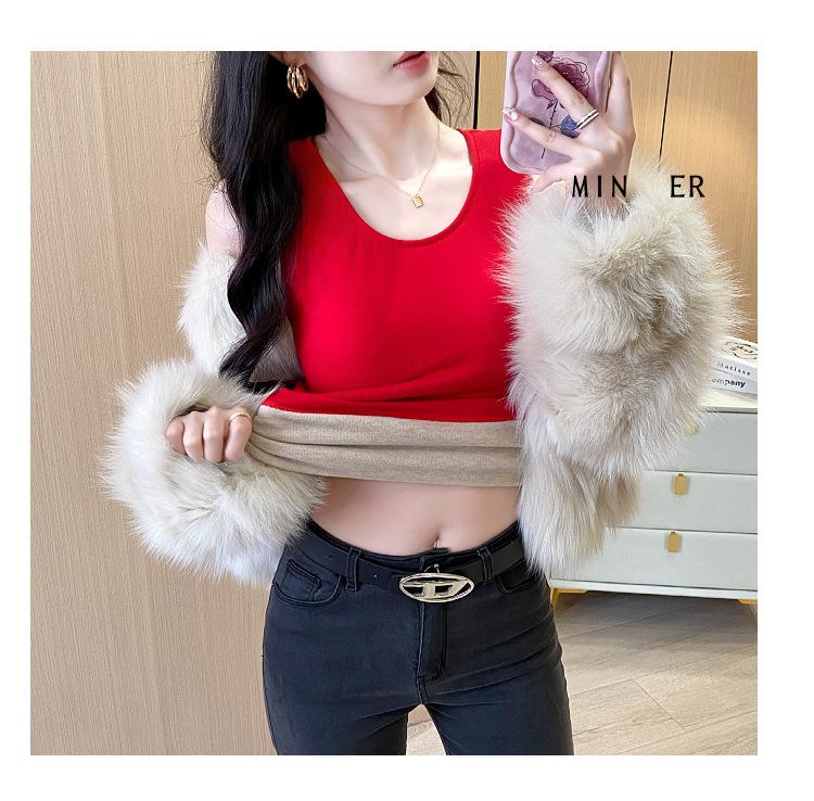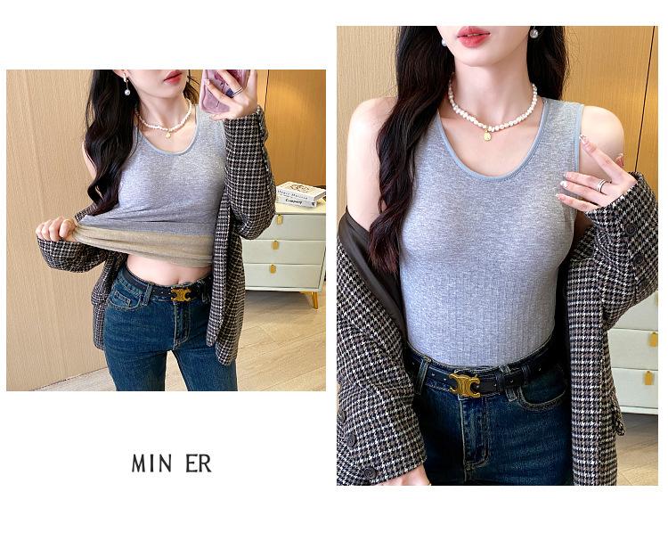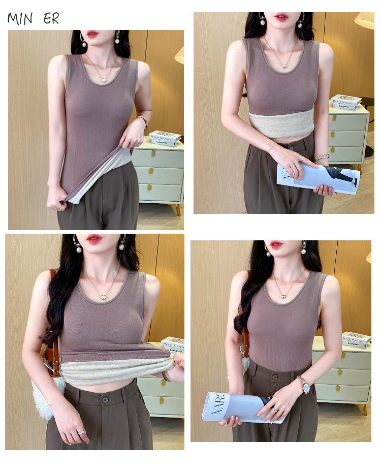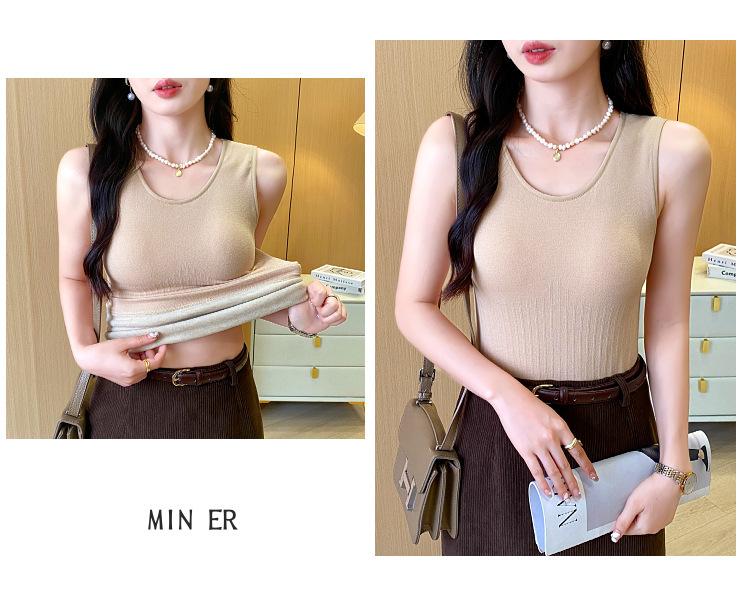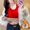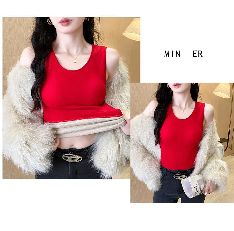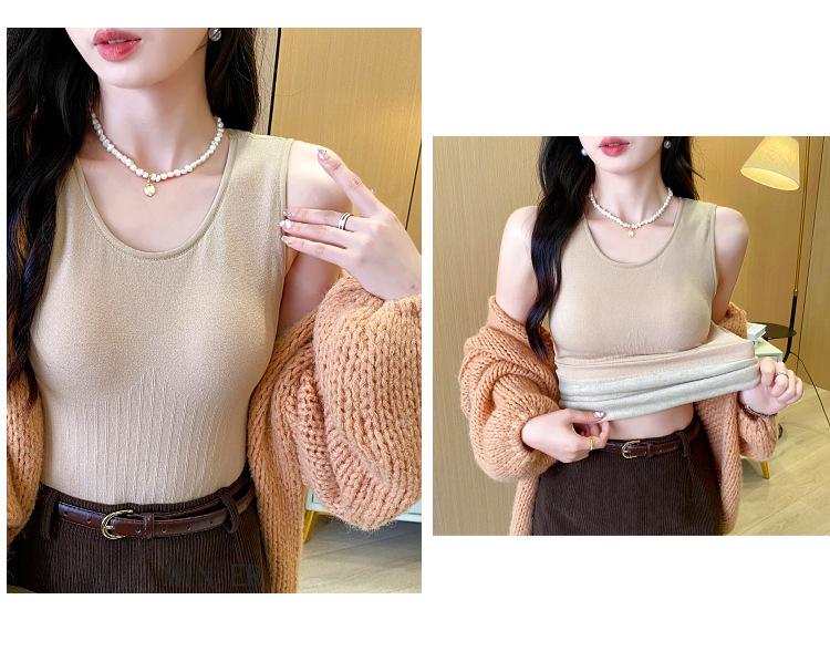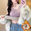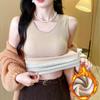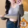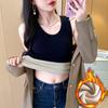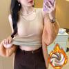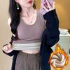 Chaleco cálido con forro polar para mujer, camisa base gruesa de otoño e invierno con lazo redondo, almohadilla para el pecho, camisa base interior ajustada, ropa exterior