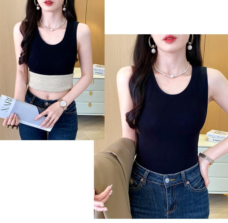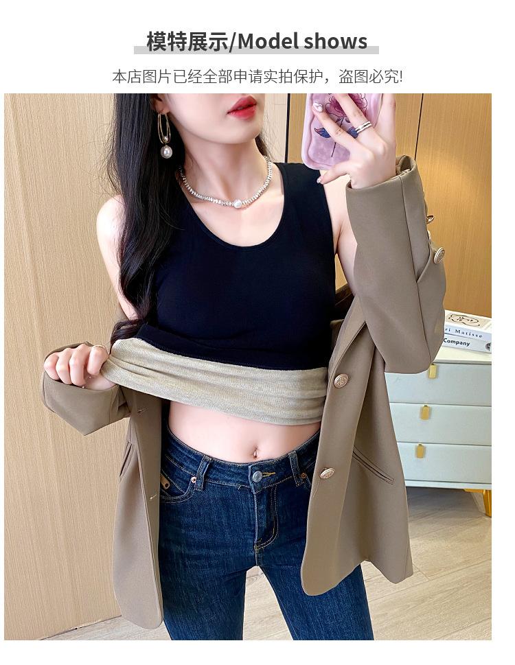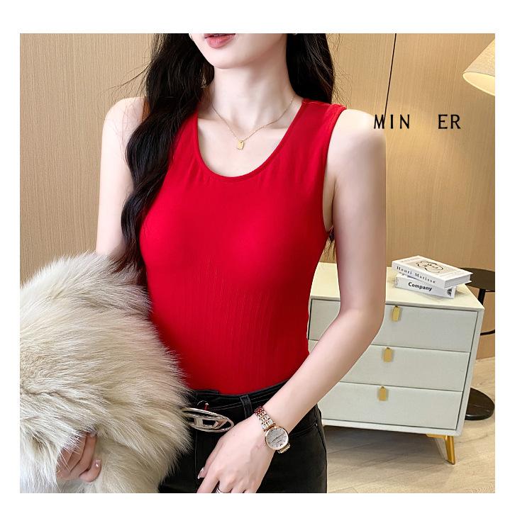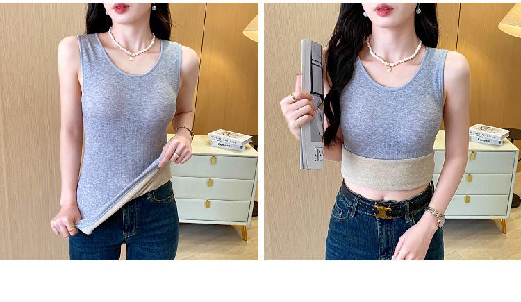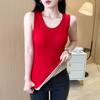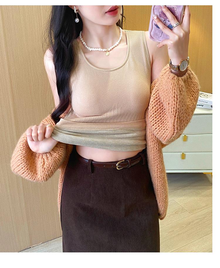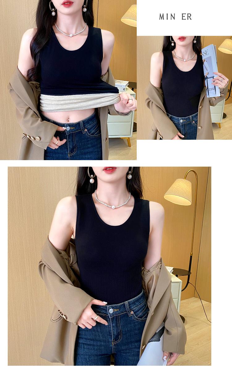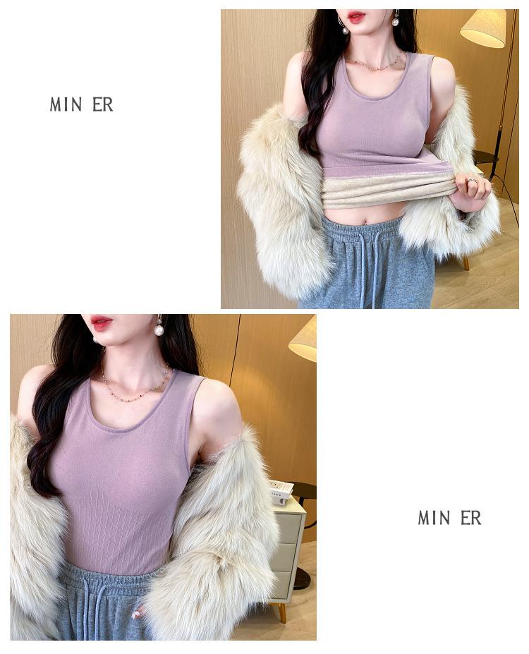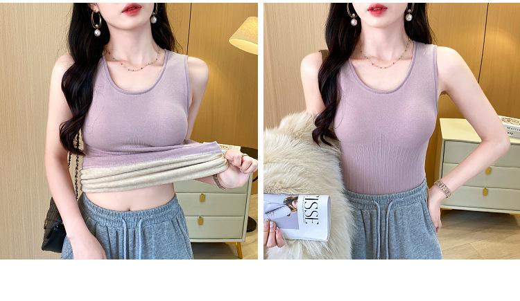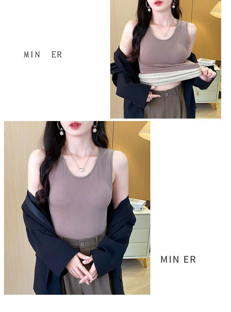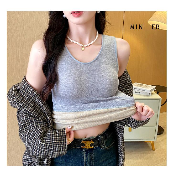 Chaleco cálido con forro polar para mujer, camisa base gruesa de otoño e invierno con lazo redondo, almohadilla para el pecho, camisa base interior ajustada, ropa exterior
