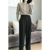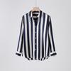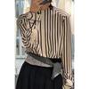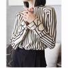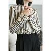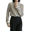 2025 Principios de Otoño Nueva Textura para Ir al Trabajo Camisa de Seda de Manga Larga para Mujer Estilo Hong Kong Cuello Redondo Estampado a Rayas Camisa de Seda de Morera