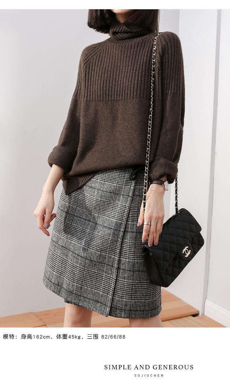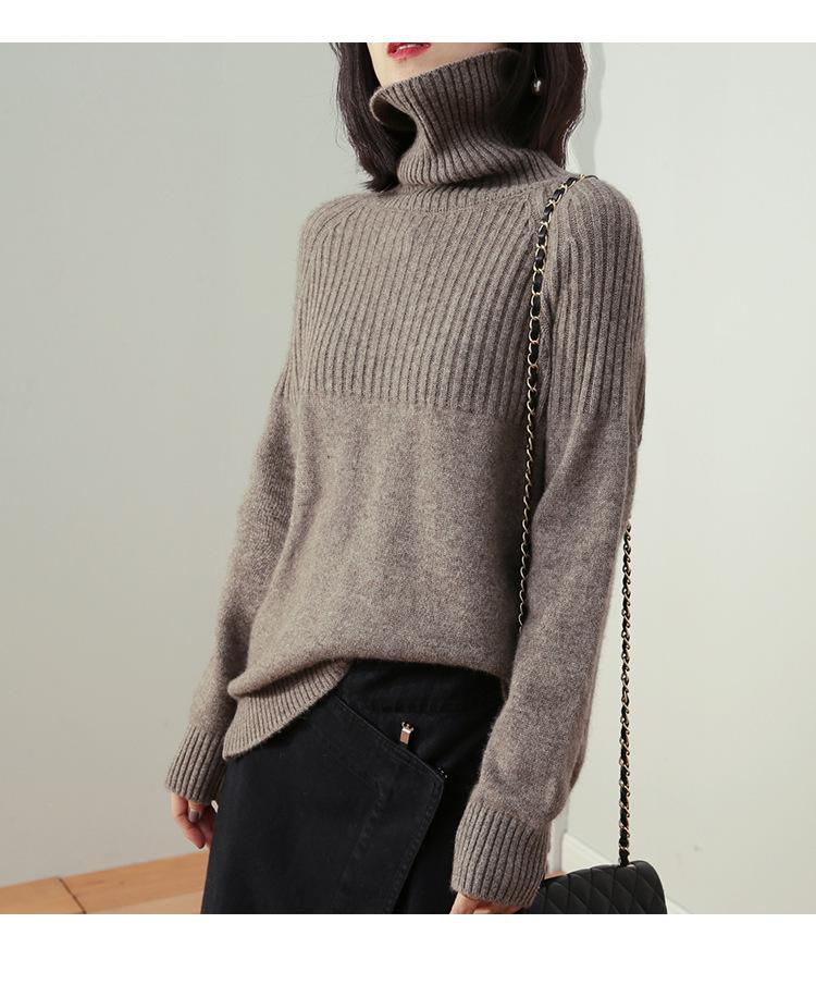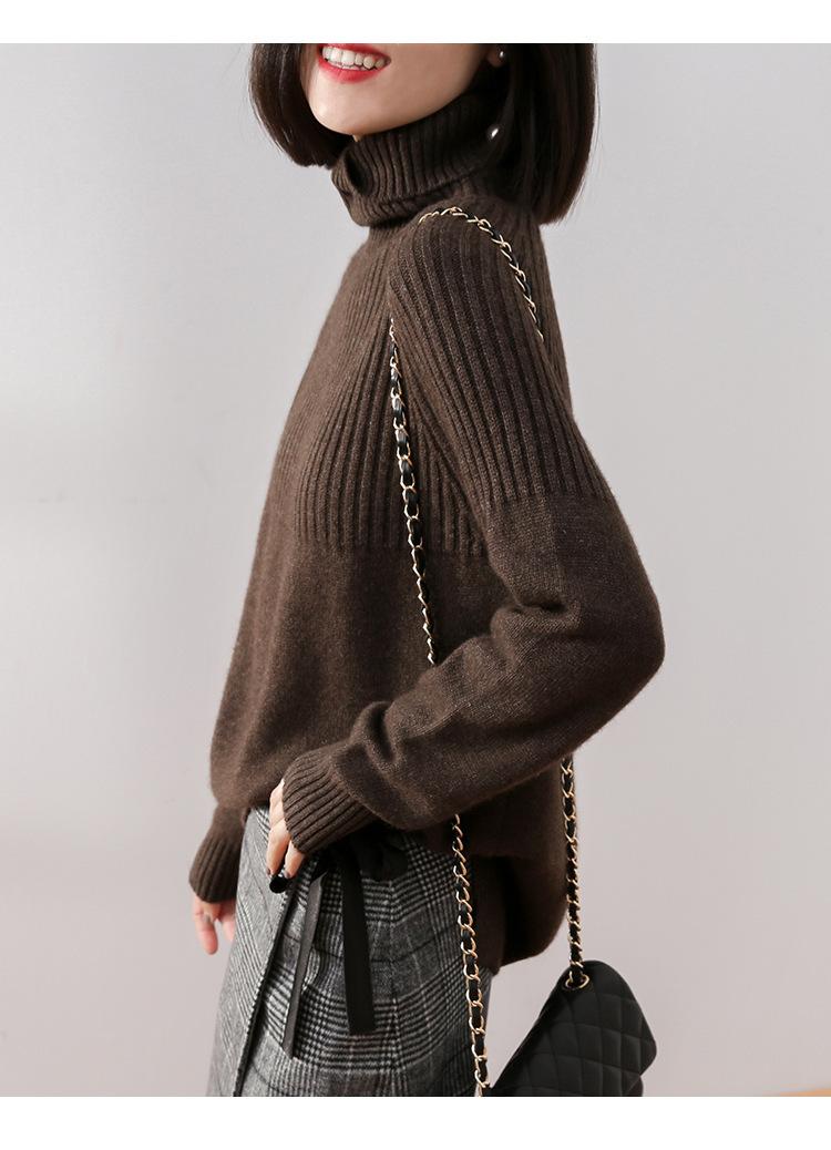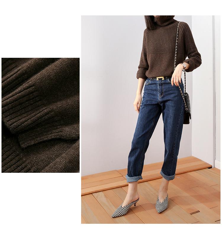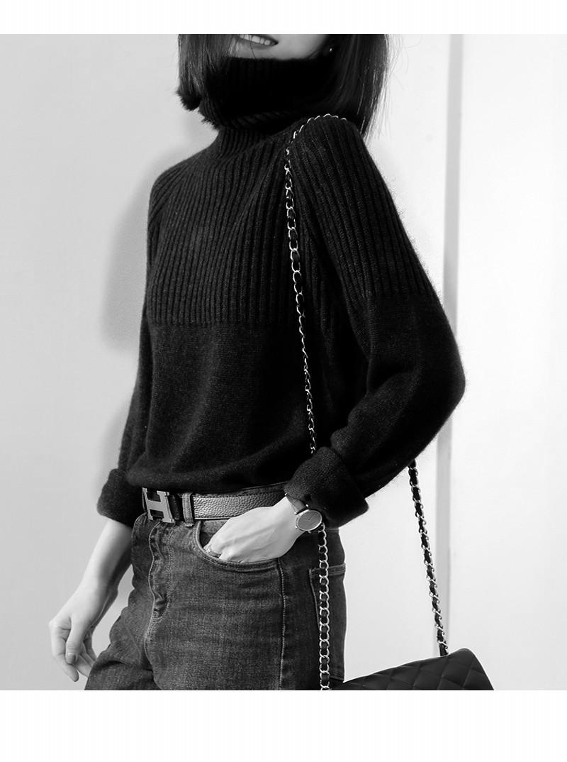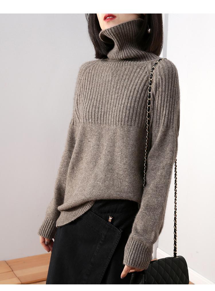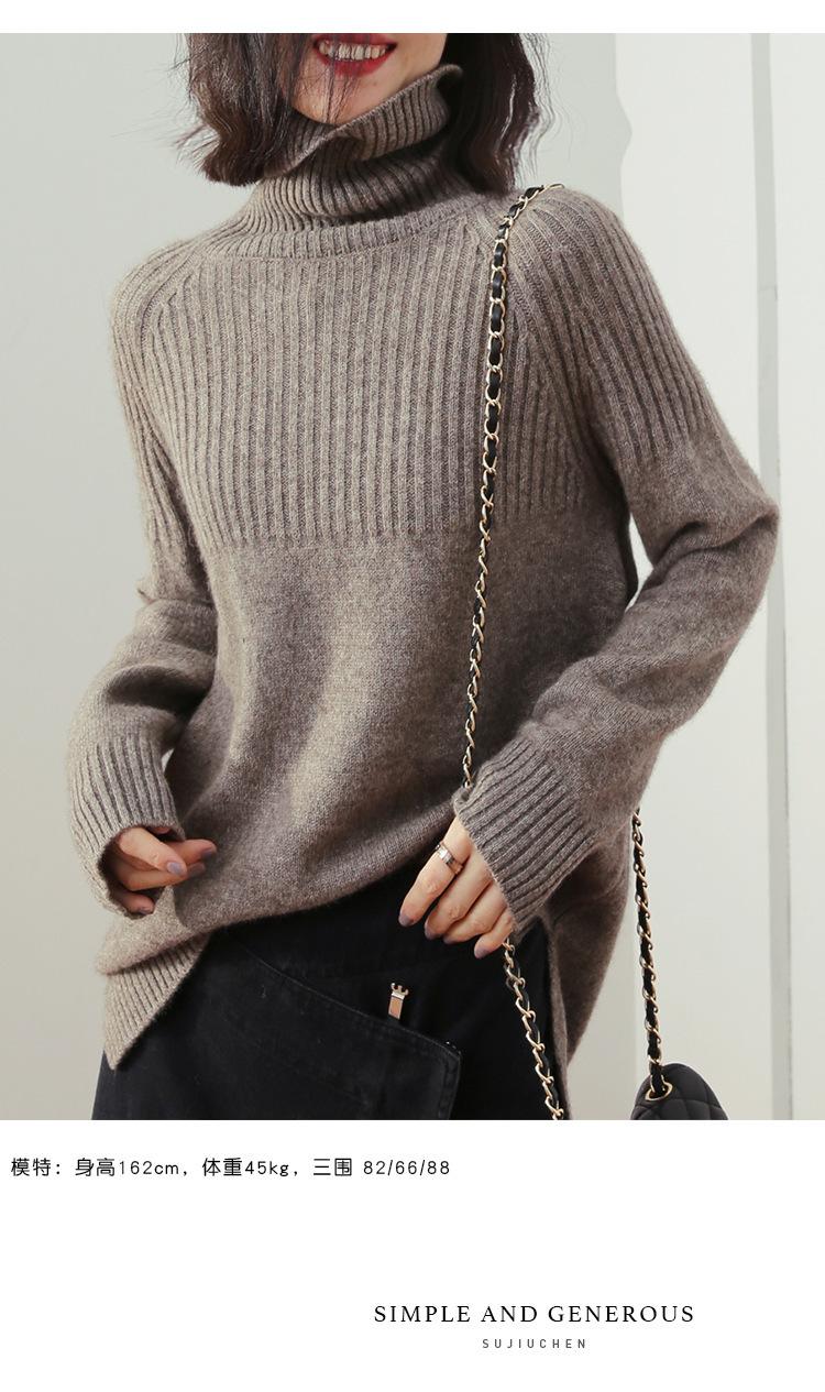 Suéter de punto de lana holgado y perezoso para mujer, jersey de cuello alto de talla grande, de color sólido, con fondo grueso, moda europea, otoño e invierno.
