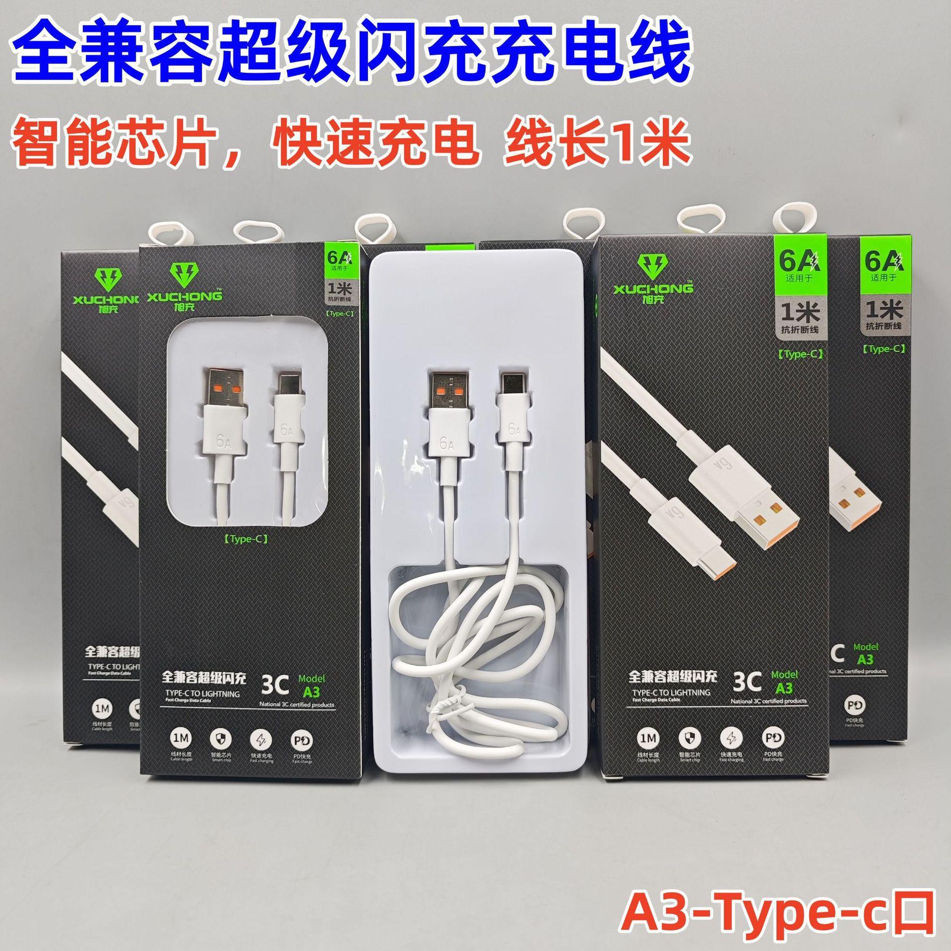 Cable de Carga Súper Rápida Totalmente Compatible 6A Cable de Datos Tipo C Cable de Carga Rápida Adecuado para Huawei Honor Xiaomi Vivo Cable