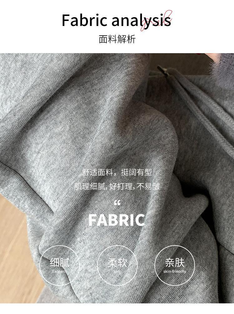 Material y contenido: capa superficial (63% algodón + 37% fibra de poliéster) + capa inferior (96% fibra de poliéster + 4% elastano)