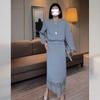 Vestido camisero de manga larga, traje de mujer, otoño e invierno 2024, nuevo diseño, chaleco, falda larga de moda, traje de dos piezas