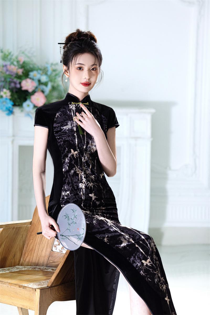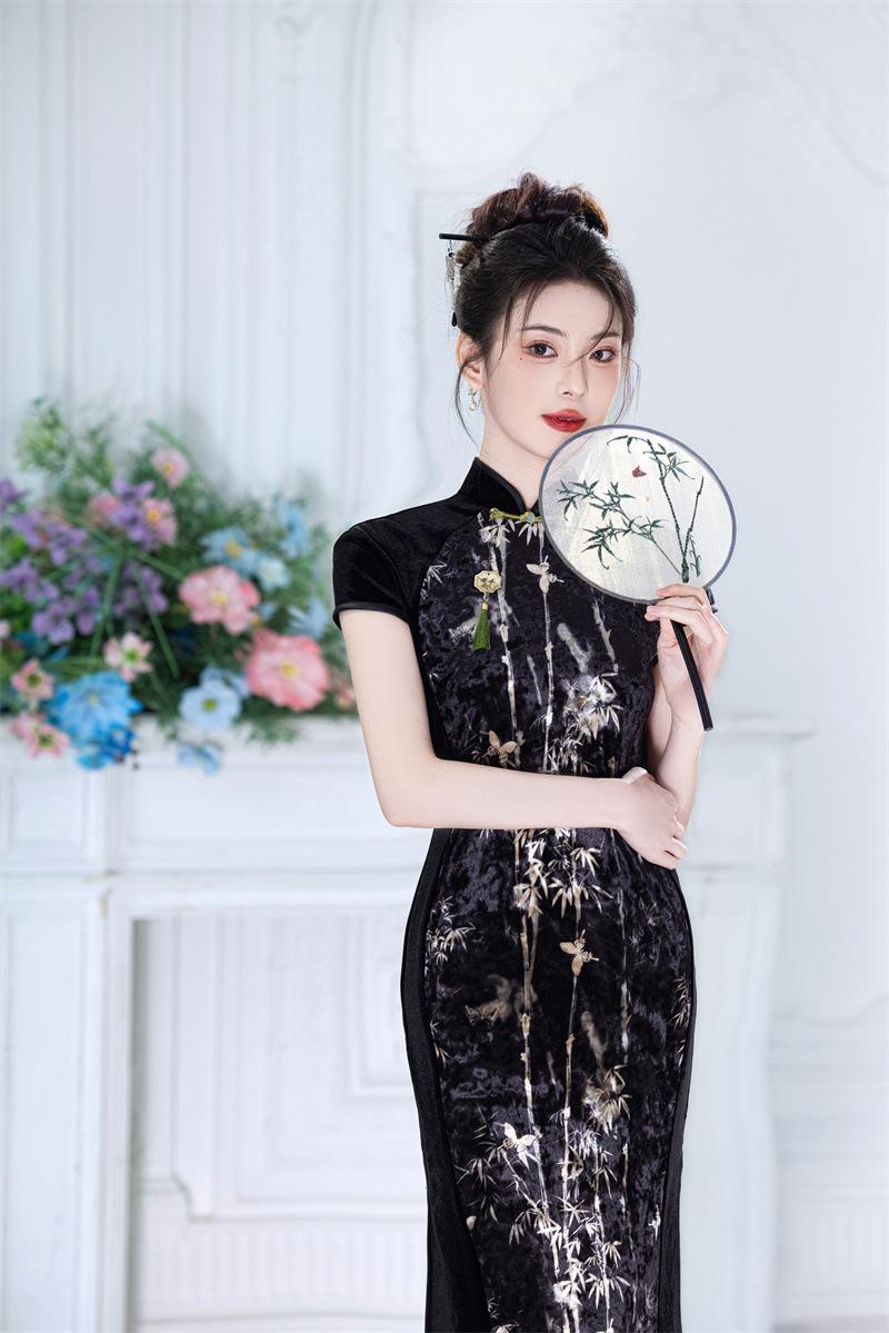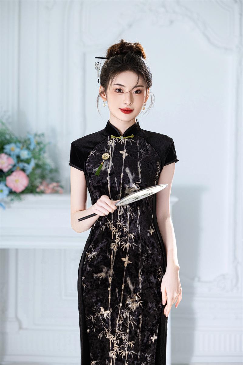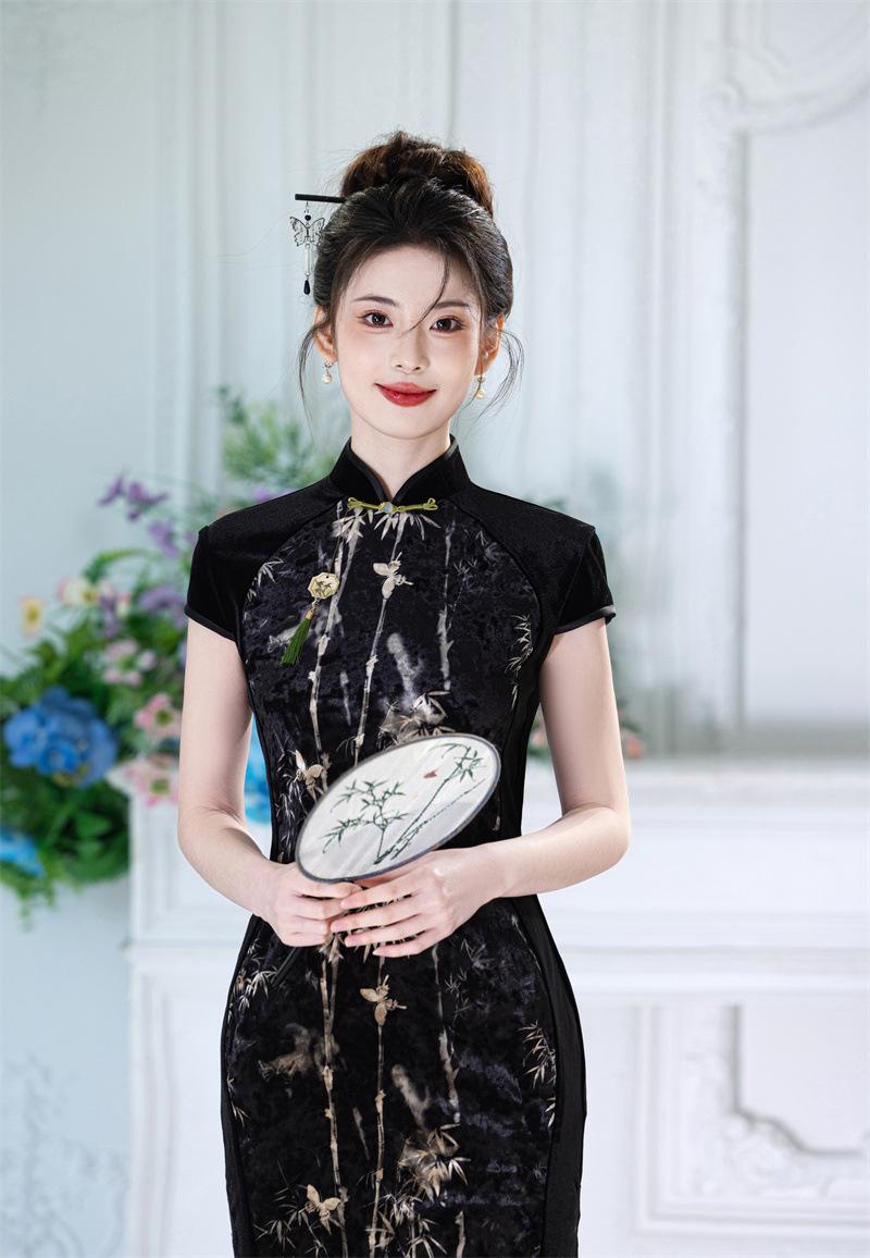 Características:Cheongsam nuevo, tela, textura suave, buena caída, no se encoge, no se decolora, no hace bolitas, ligera elasticidad, más característico de la nación china, bienvenido a comprar,