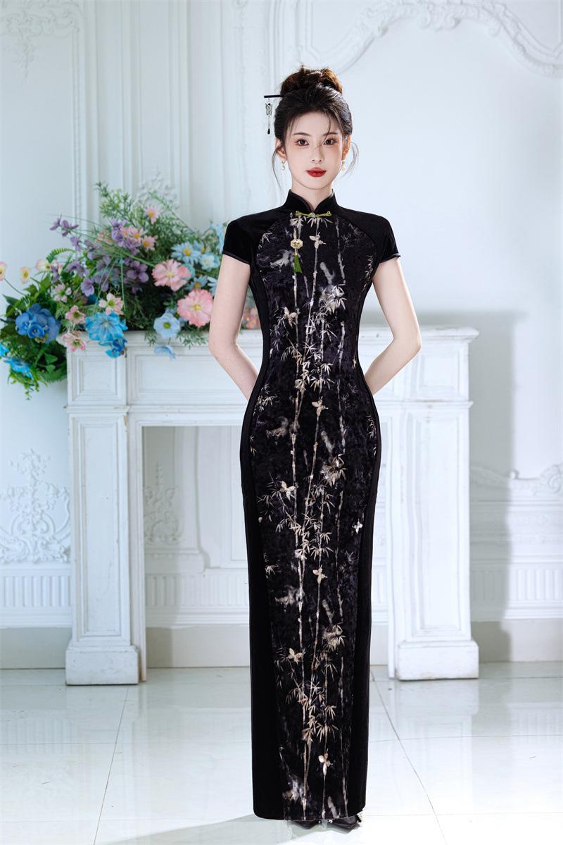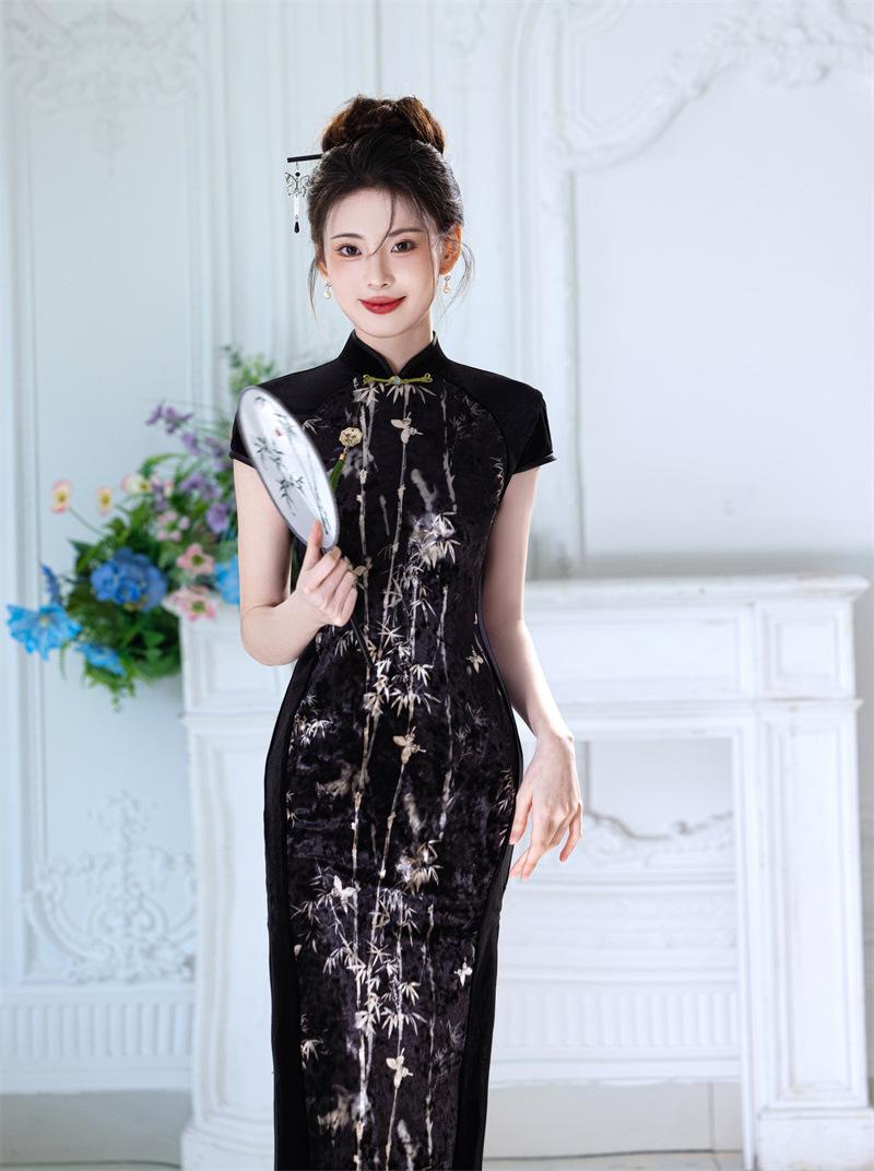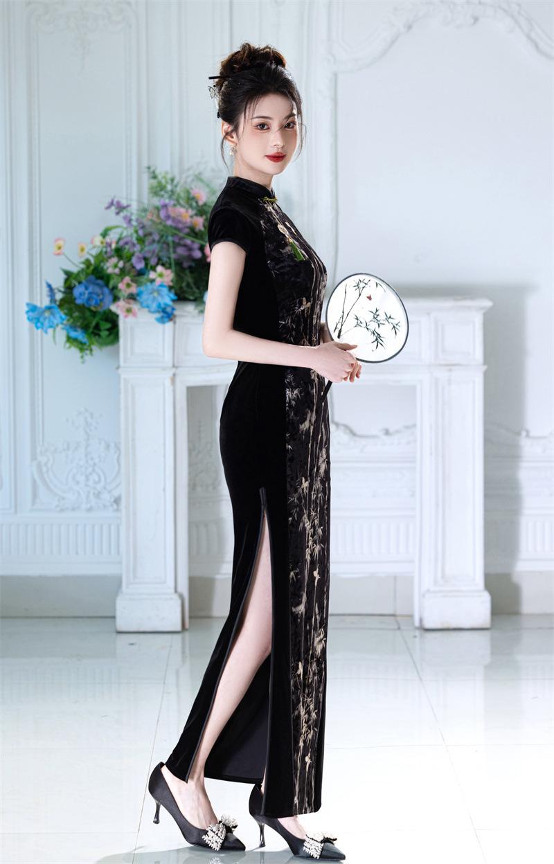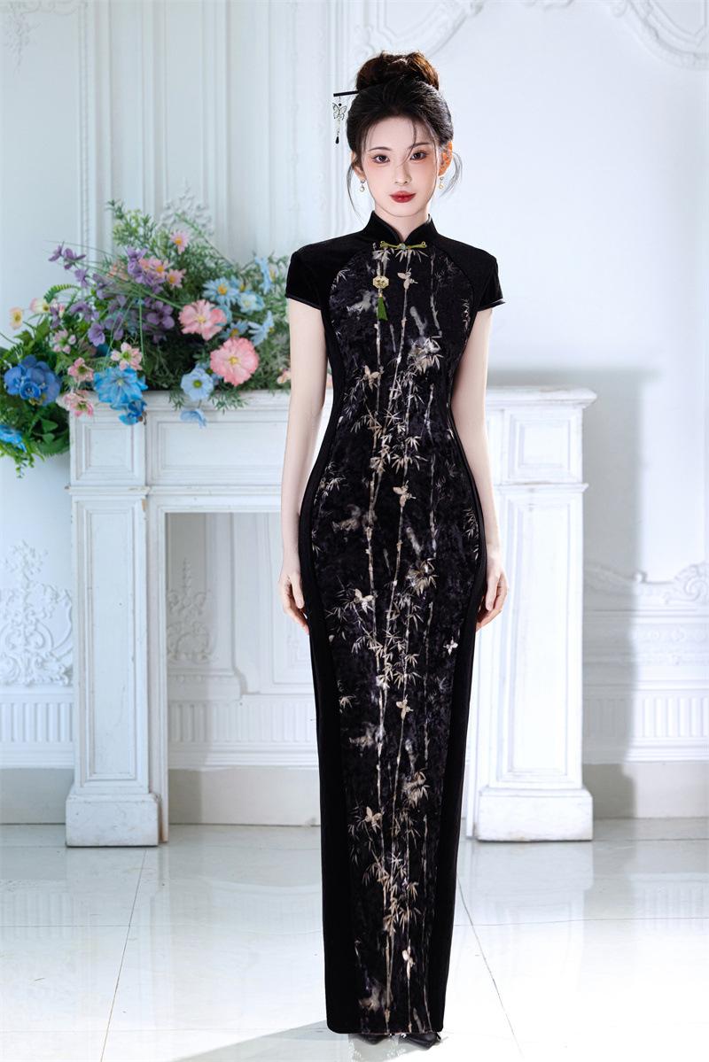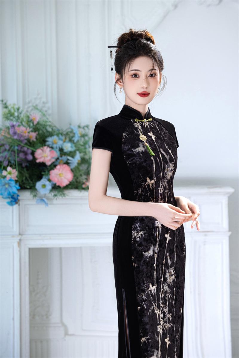 Características:Cheongsam nuevo, tela, textura suave, buena caída, no se encoge, no se decolora, no hace bolitas, ligera elasticidad, más característico de la nación china, bienvenido a comprar,