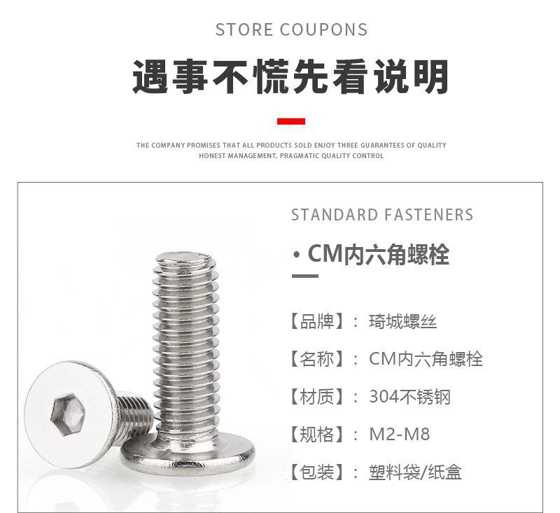 Tornillo hexagonal de cabeza plana grande de acero inoxidable 304, perno pequeño M2M2.5M3M4M5M6M8