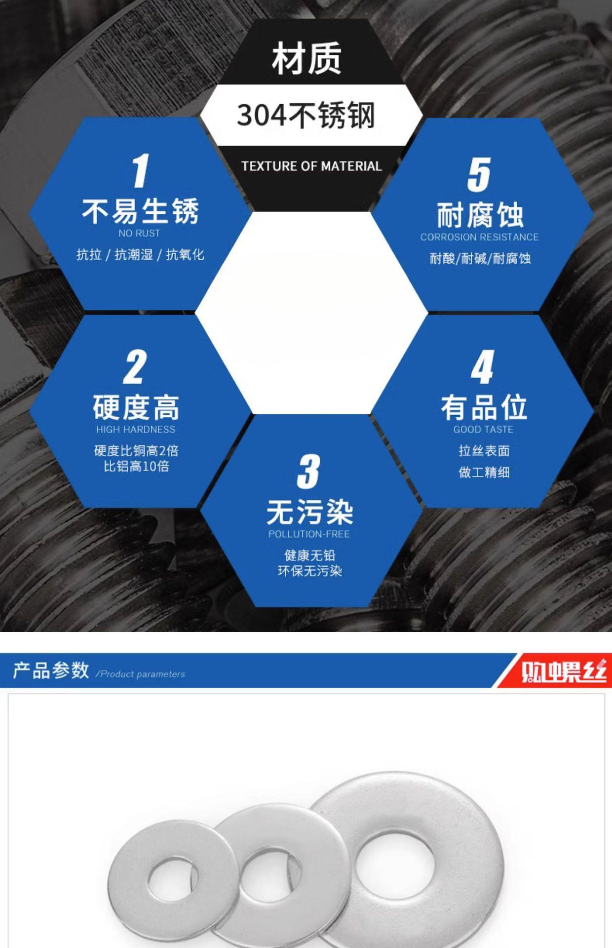 Junta de acero inoxidable 304, junta de tornillo redondo, junta metálica, junta plana, mesón engrosado y agrandado m4m5m6m8