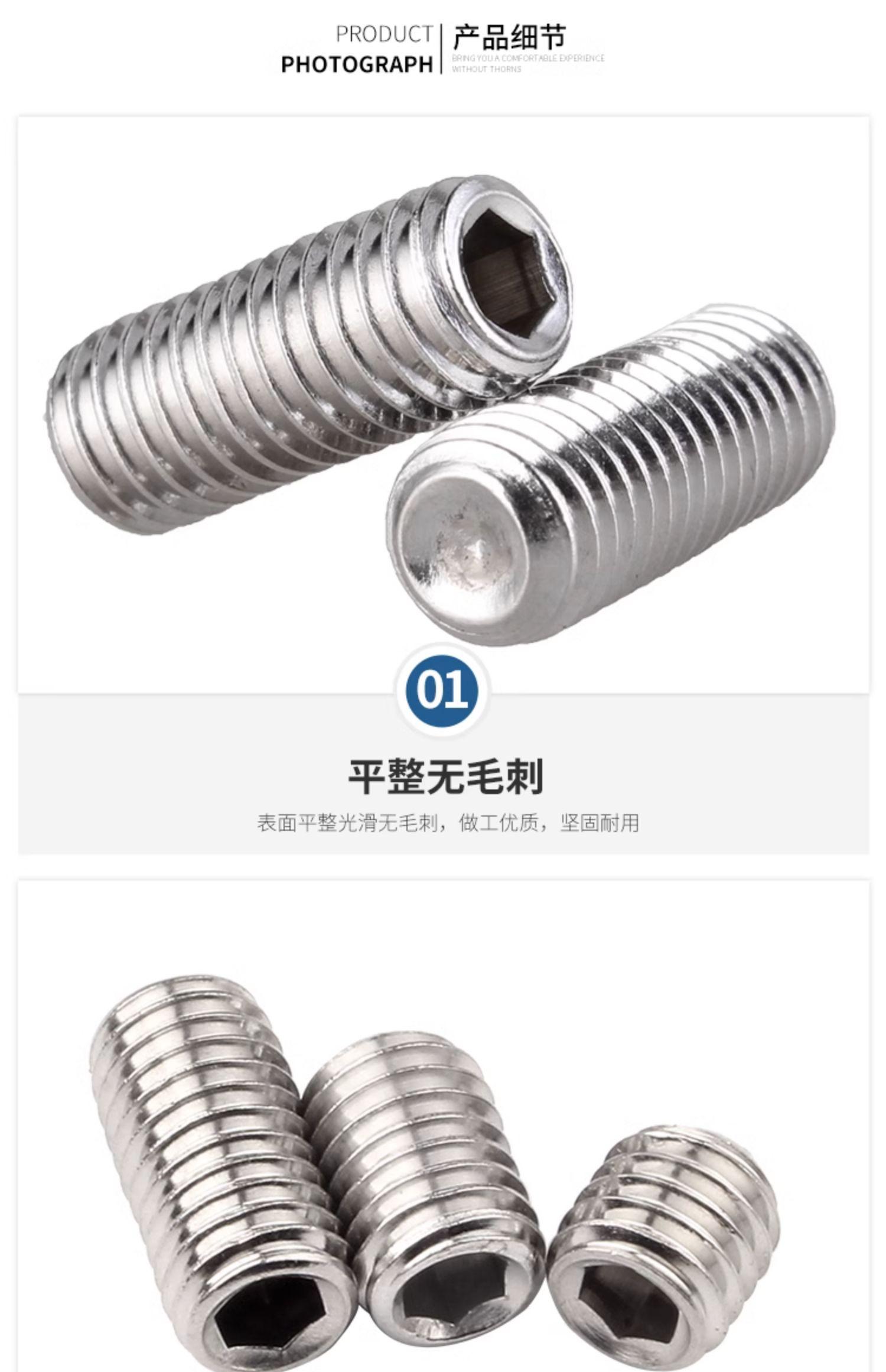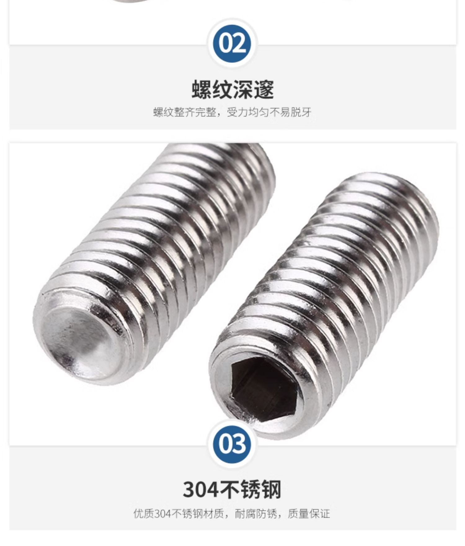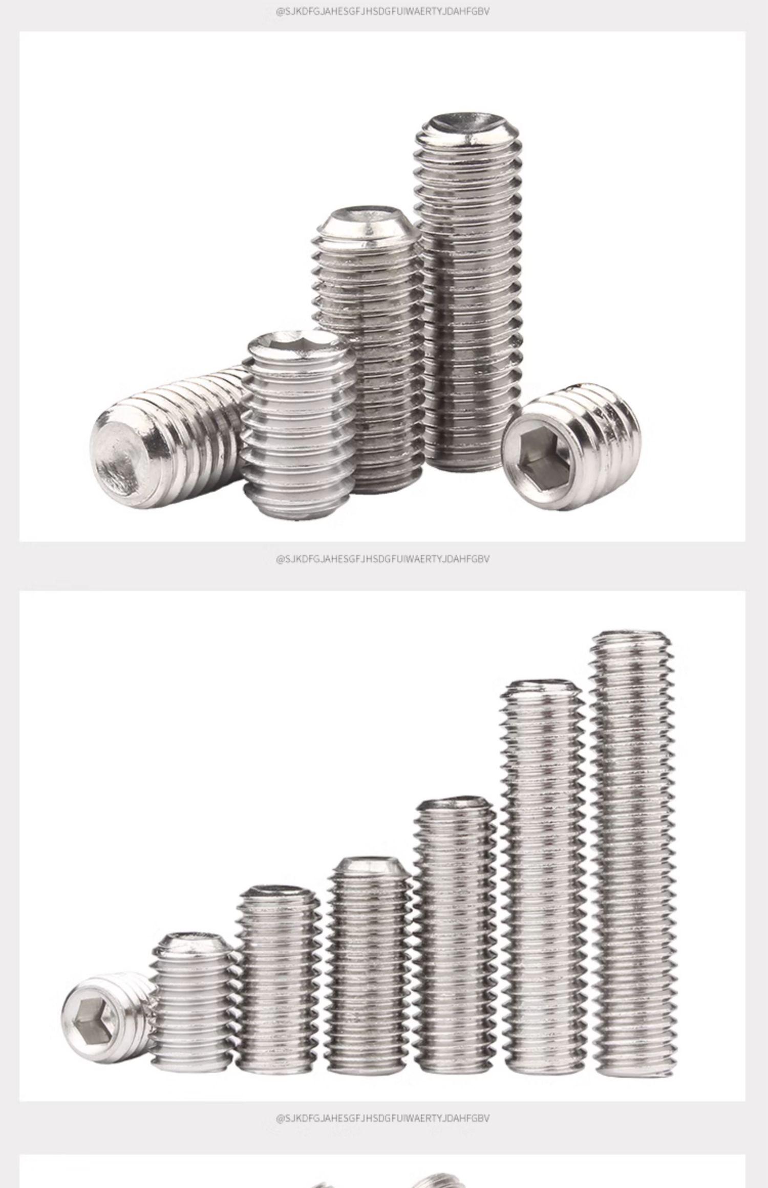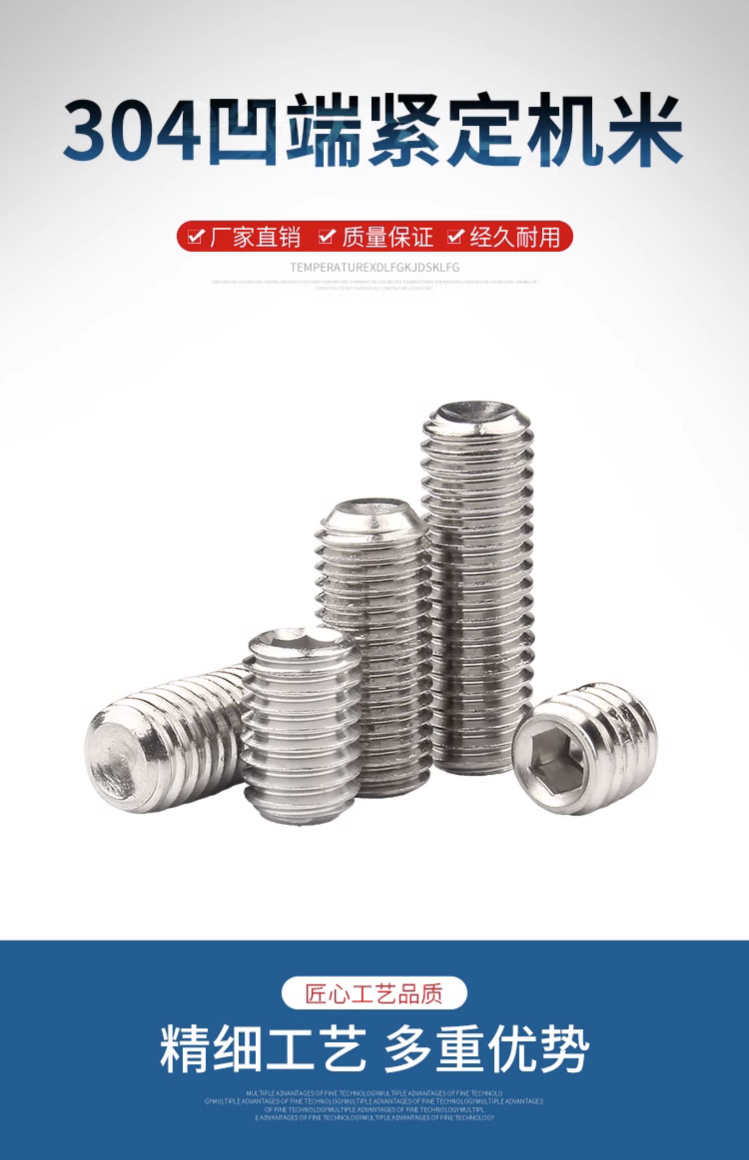 Tornillo de fijación de extremo cóncavo de acero inoxidable 304, tornillo de máquina para medidor, tornillo de cabeza hexagonal sin cabeza, tope de alambre superior, medidor de base M1.6-M12