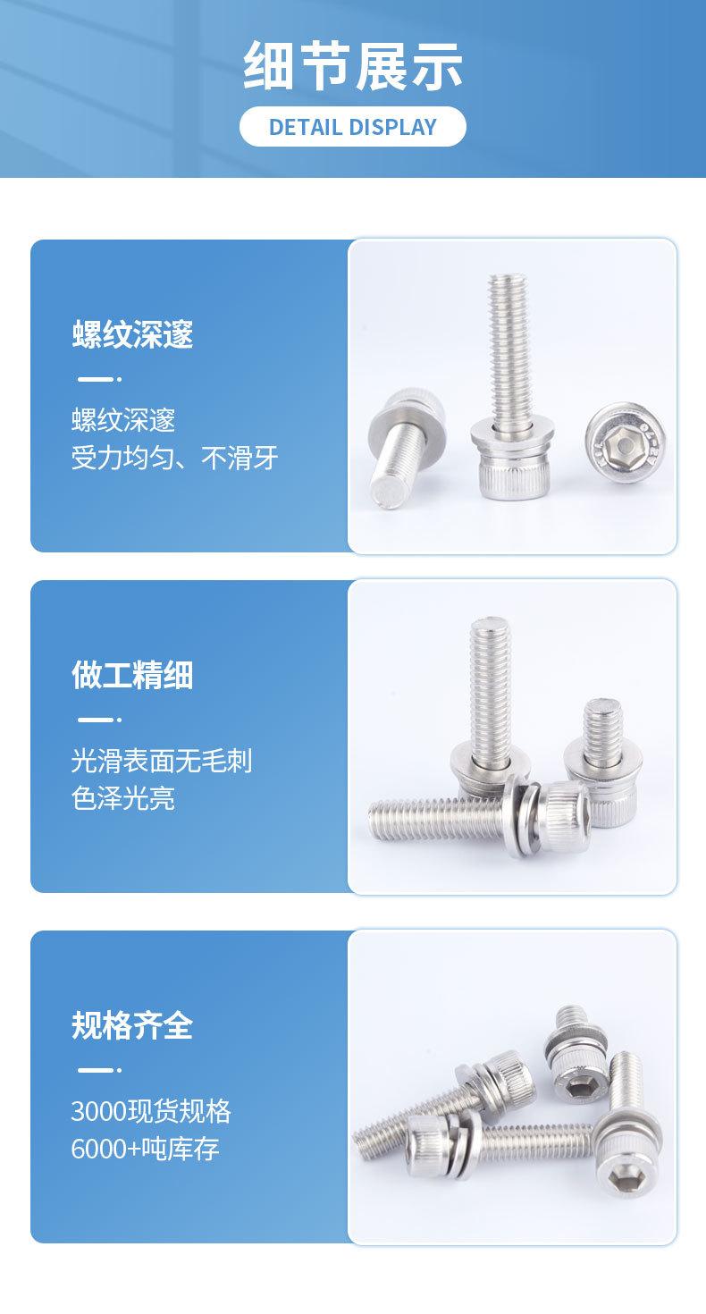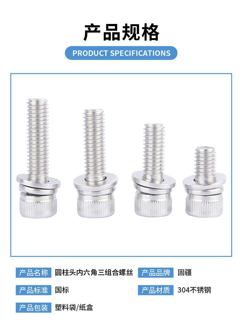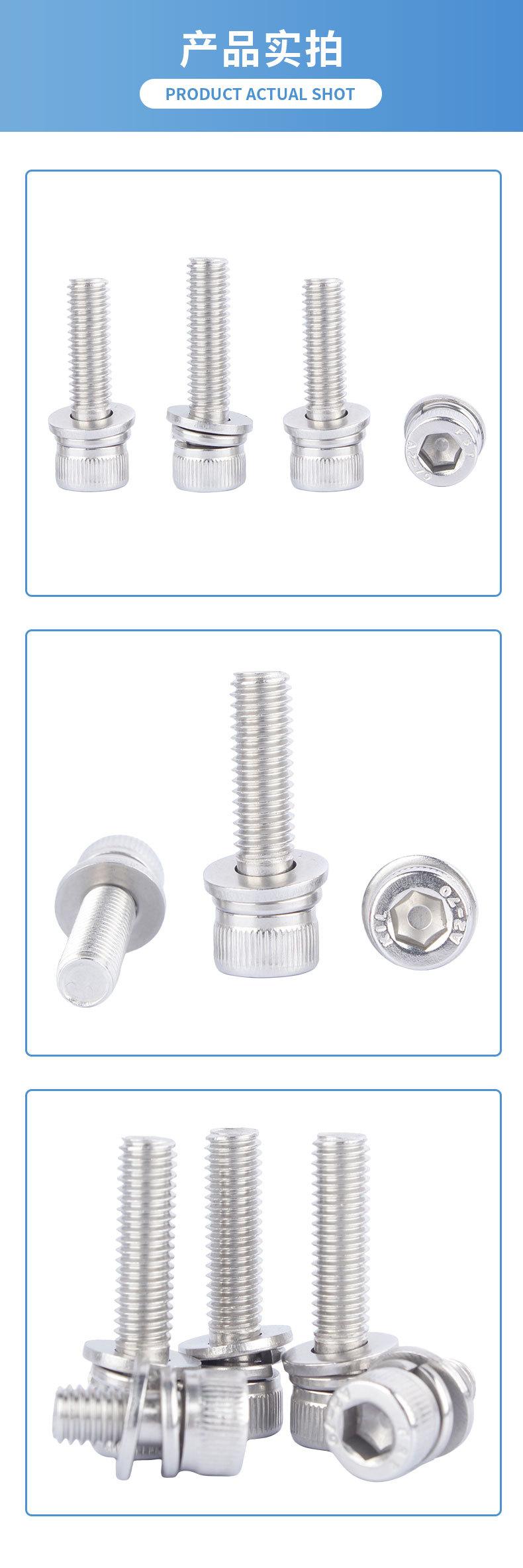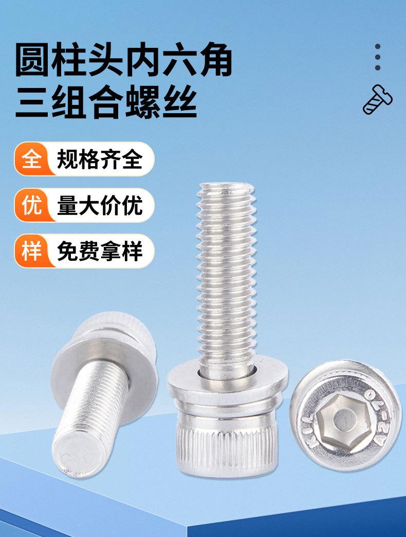 Tornillo de cabeza ahuecada hexagonal cilíndrica de tres piezas 304 M2-M12 DIN912